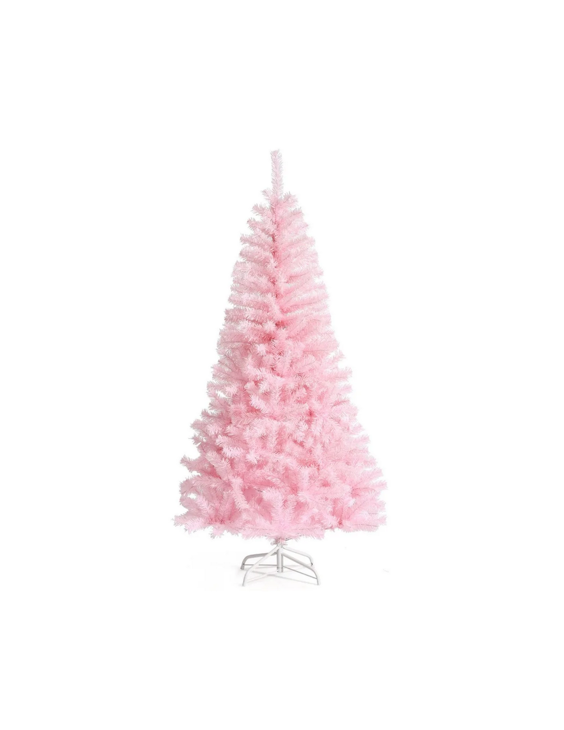 Kunstigt juletræ med pink grene. Træet måler cirka 150 cm i højden og 50 cm i diameter og kommer med fod.