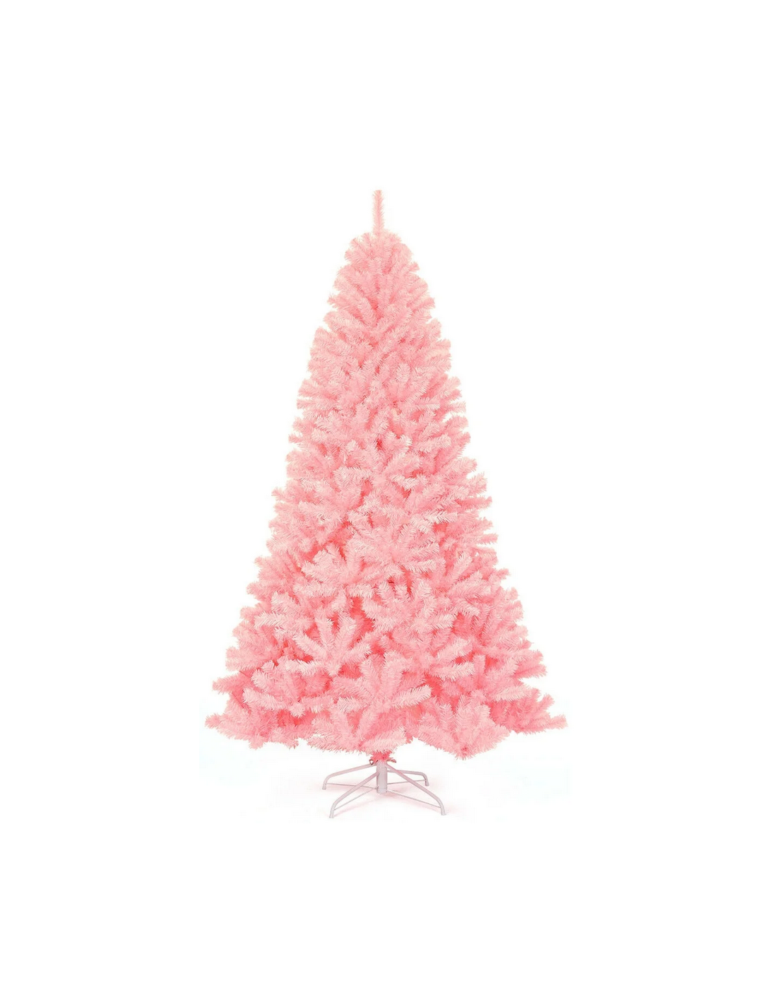 Kunstigt juletræ med pink grene. Træet måler cirka 225 cm i højden og 129 cm i diameter og kommer med fod.