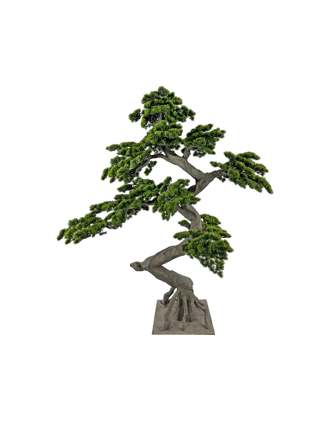 Stort kunstigt bonsaitræ med fod, udført i et smukt design med naturtro nåle og stamme. Træet måler 220 cm i højden.
