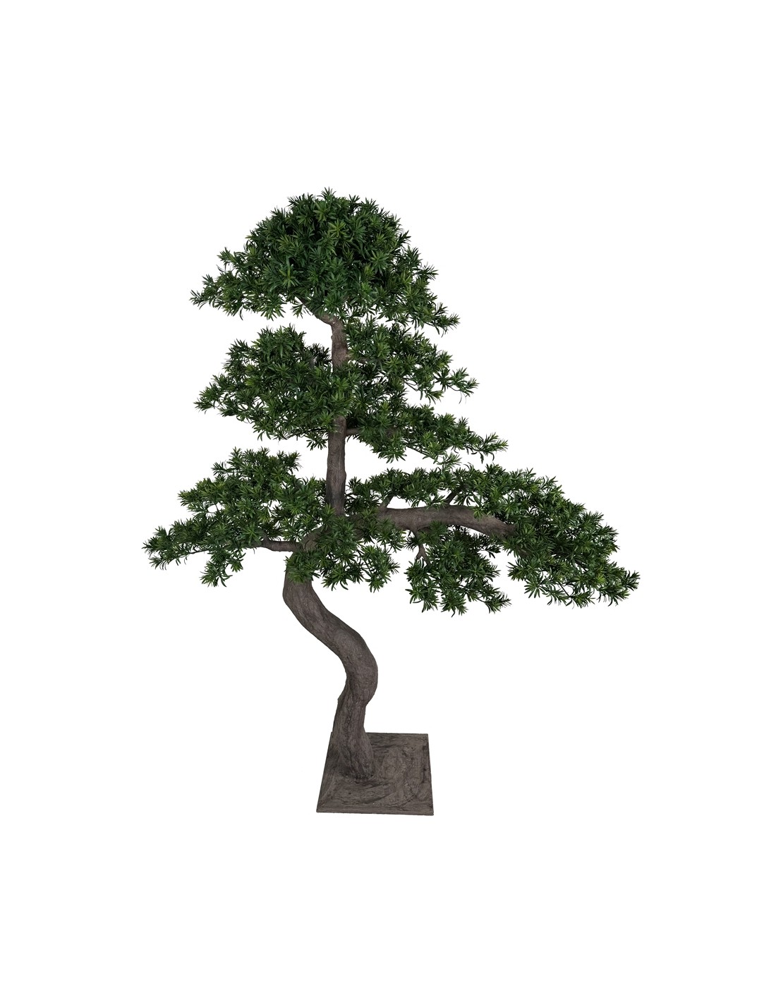 Stort kunstigt bonsaitræ med fod, udført i et smukt design med naturtro blade og stamme. Træet måler 200 cm i højden.