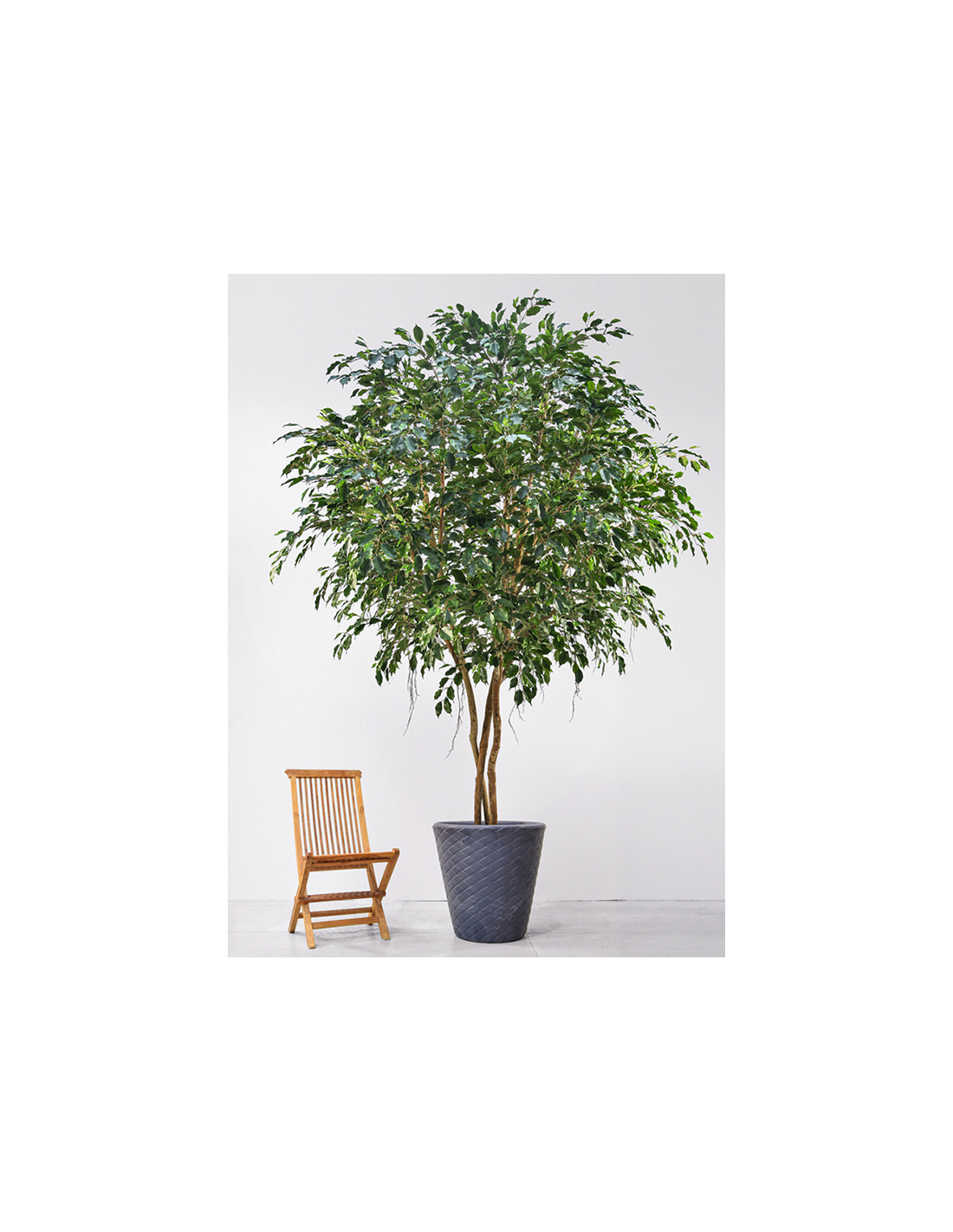 Stort kunstigt deluxe Ficustræ udført i et smukt naturtro design med en højde på 300 cm og som ikke kræver vedligeholdelse. Dette træ er fremstillet i et brandhæmmende materiale.