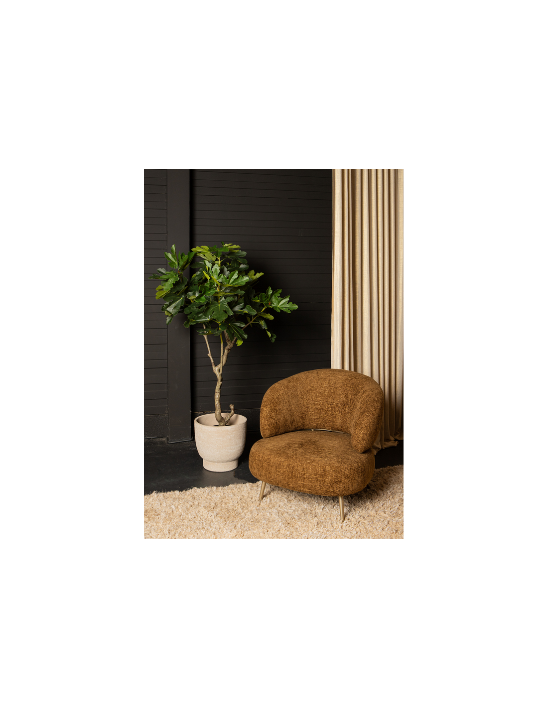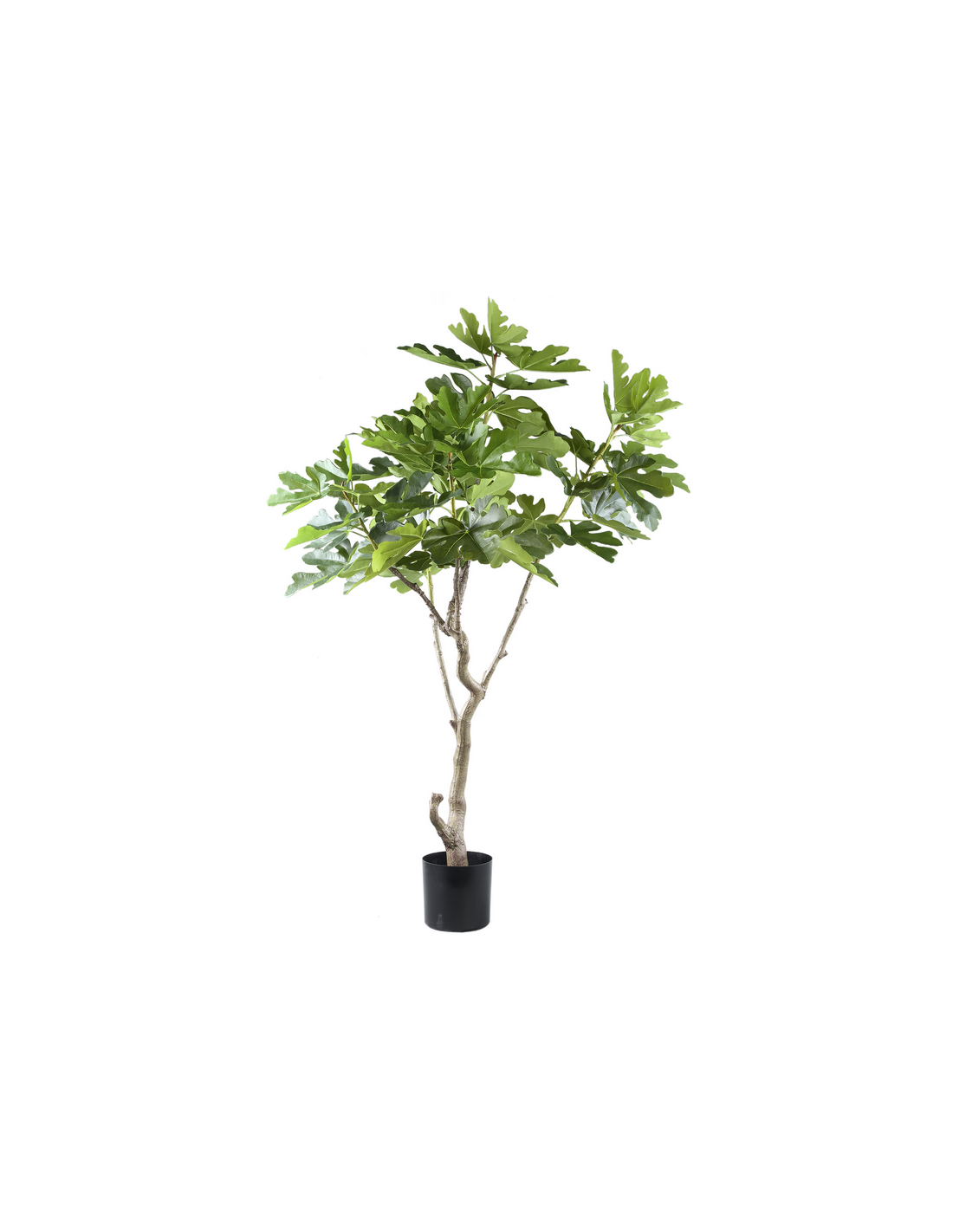 Kunstigt Figentræ med højde på cirka 153 cm og diameter på cirka 115 cm. Træet kommer med potte i sort plast.