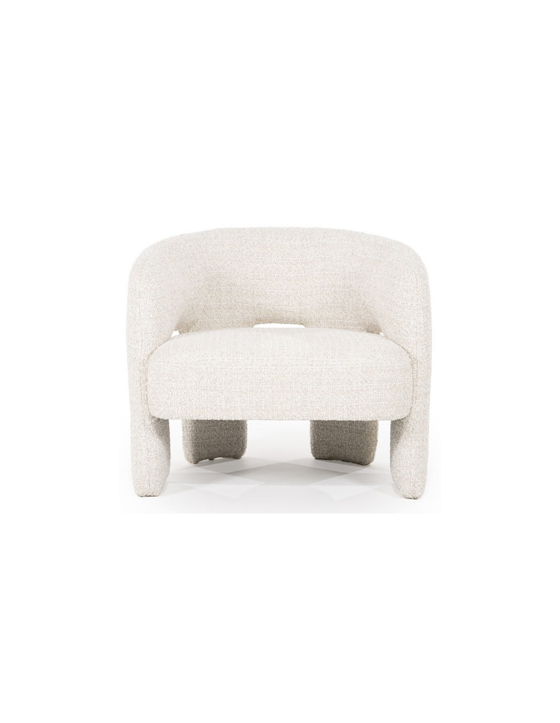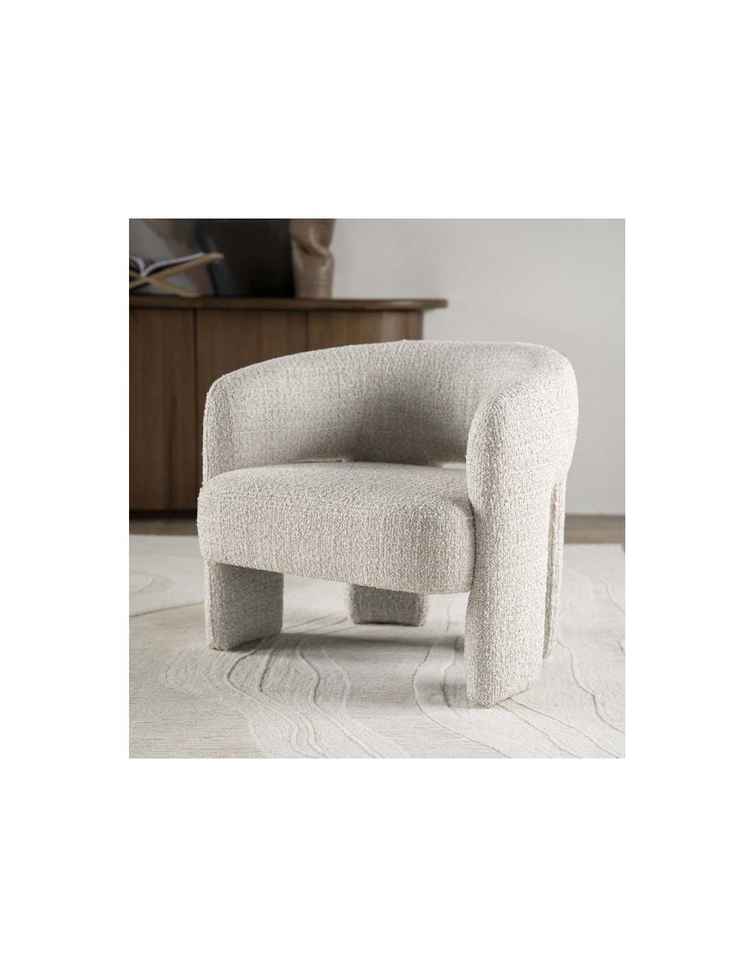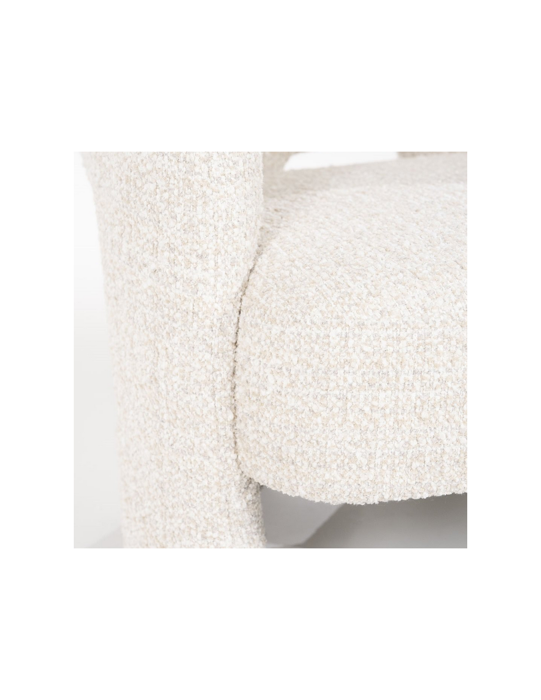 Hamilton lænestol udført i et moderne design med betræk i beige polyester med bouclé effekt. Stolen måler 72 cm over ryggen og med en siddehøjde på 45 cm.