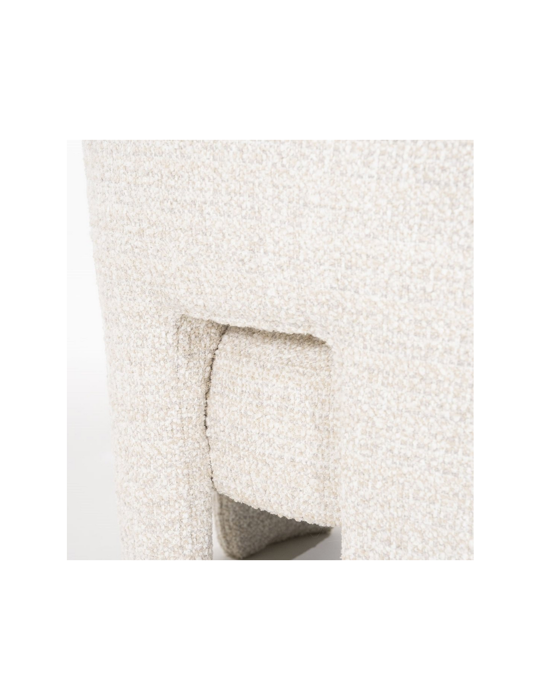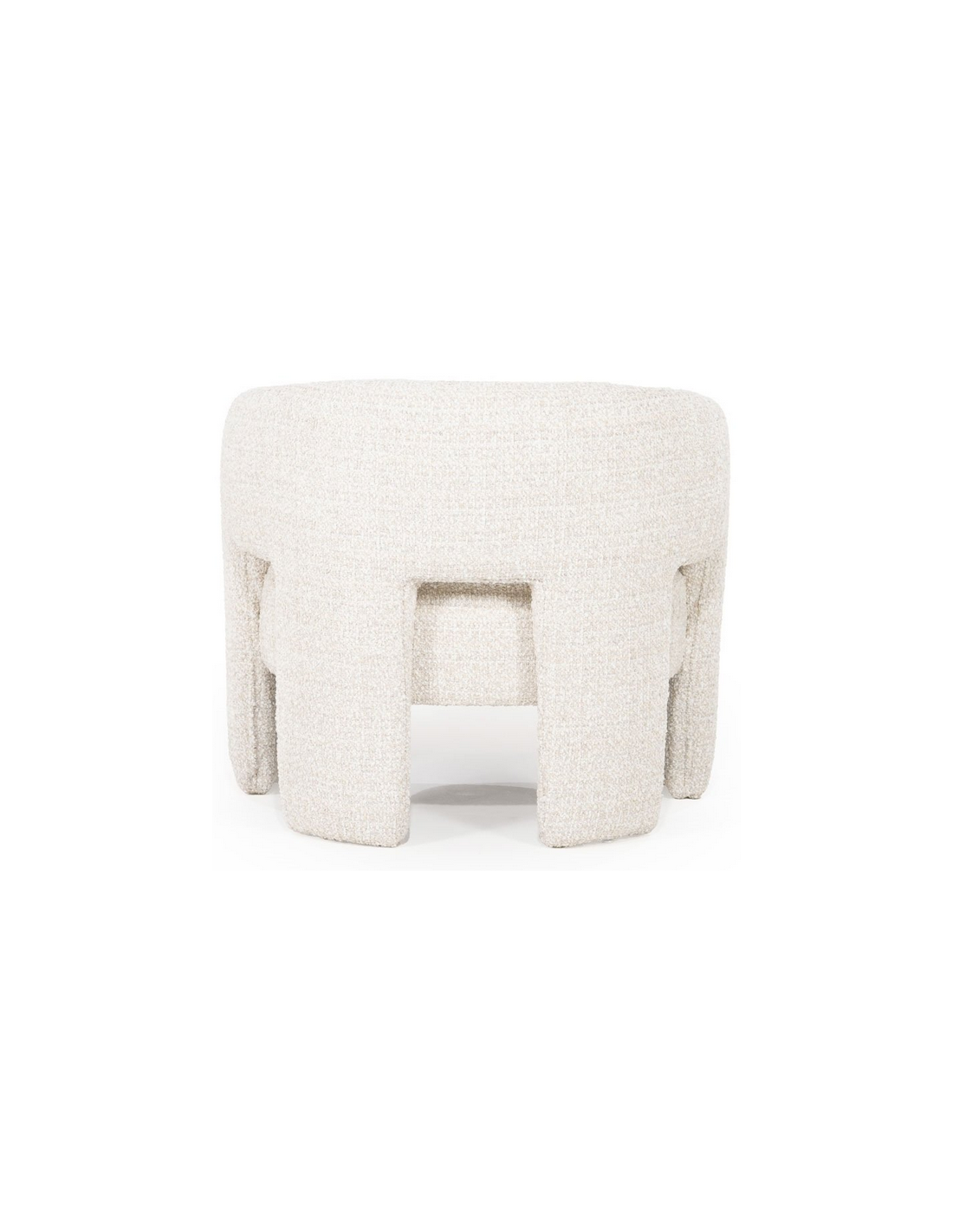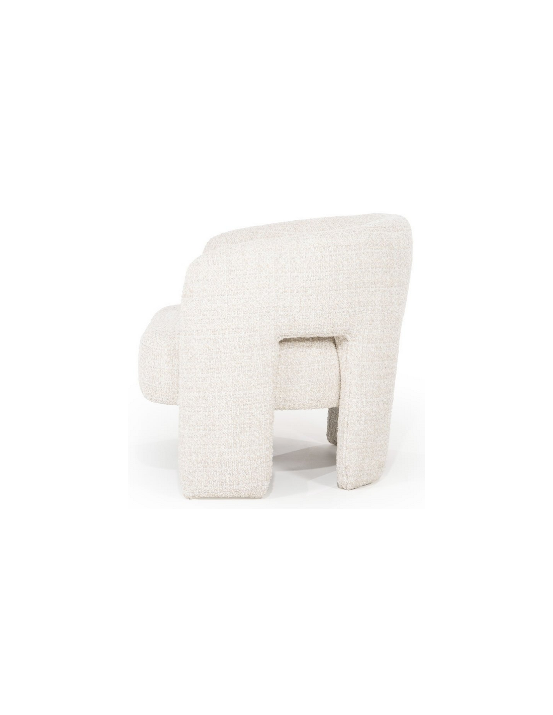 Hamilton lænestol udført i et moderne design med betræk i beige polyester med bouclé effekt. Stolen måler 72 cm over ryggen og med en siddehøjde på 45 cm.