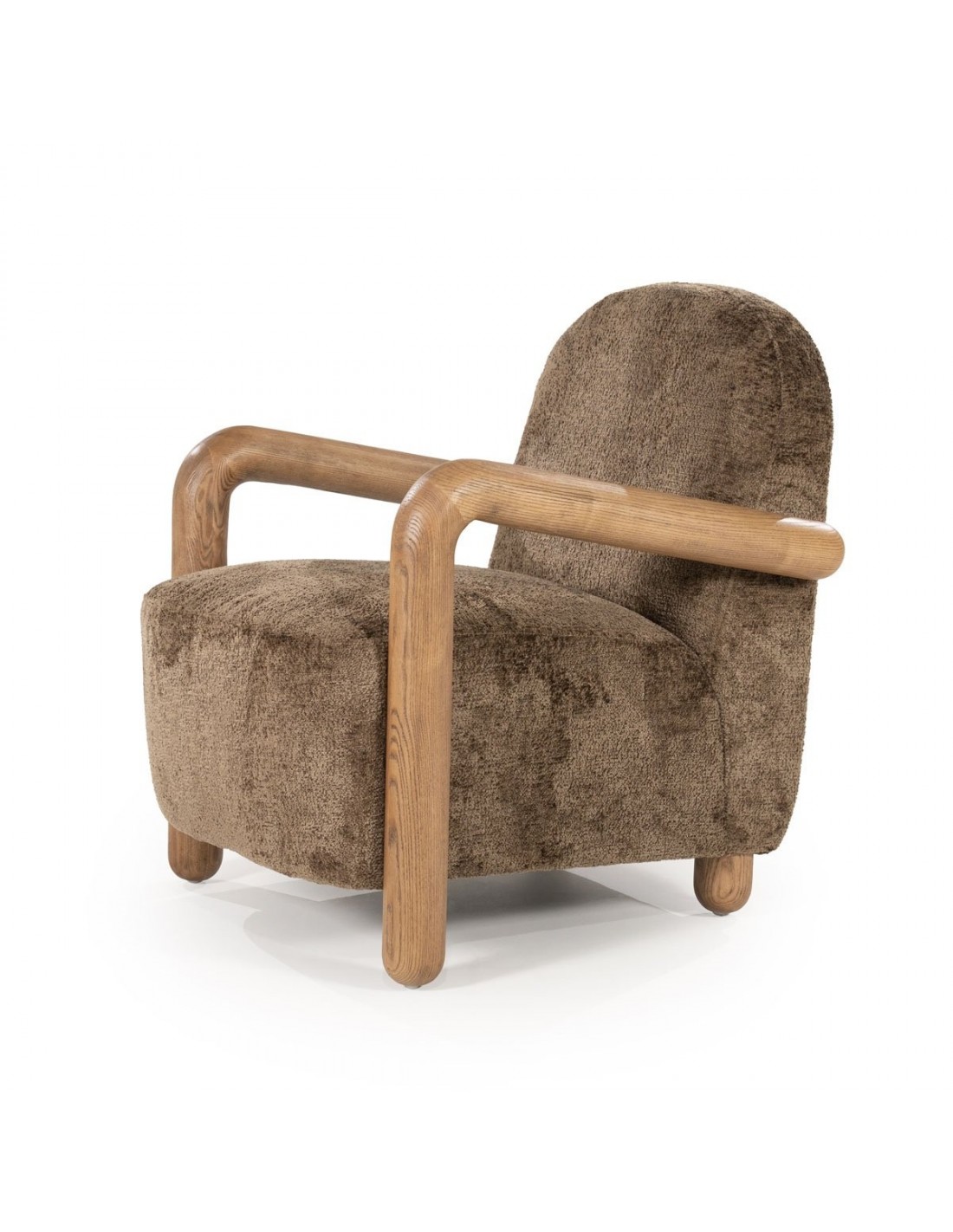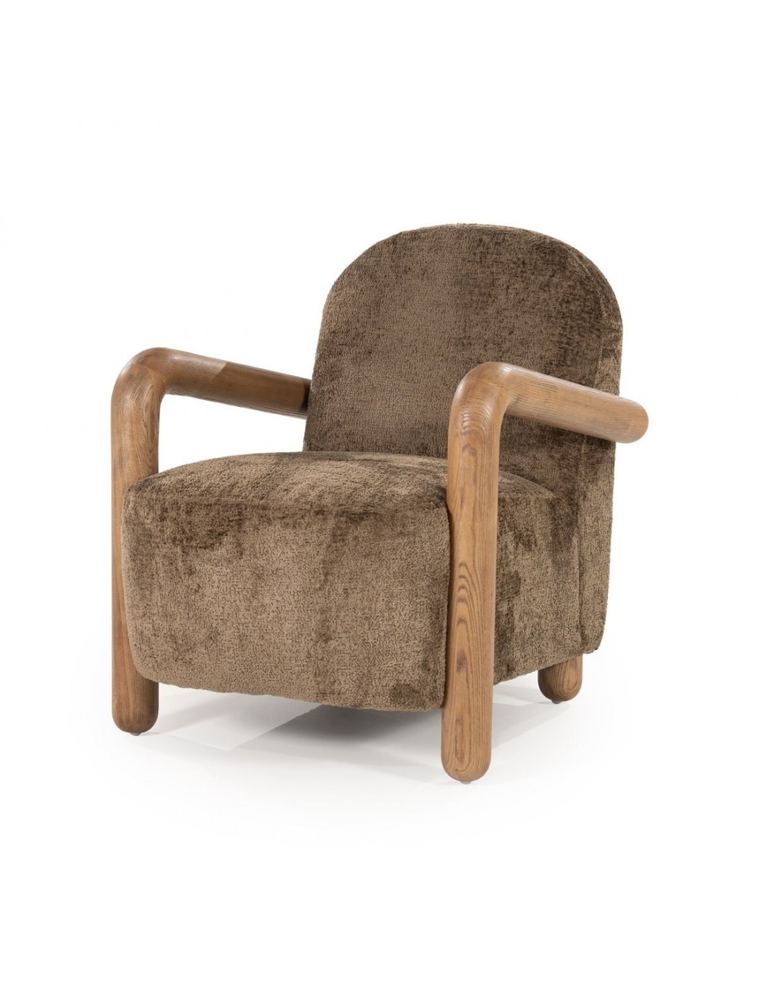 RETROVA Lænestol i asktræ og polyester H84 cm - Naturbrun/Taupe