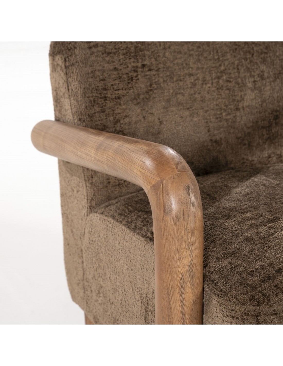 RETROVA Lænestol fremstillet i et retropræget design af naturbrun asktræ og taupefarvet polyester. En komfortabel lænestol der vil passe ind i både den moderne, såvel som i den klassiske indretning. Stolen måler 84 cm over ryggen og 72 cm i bredden.