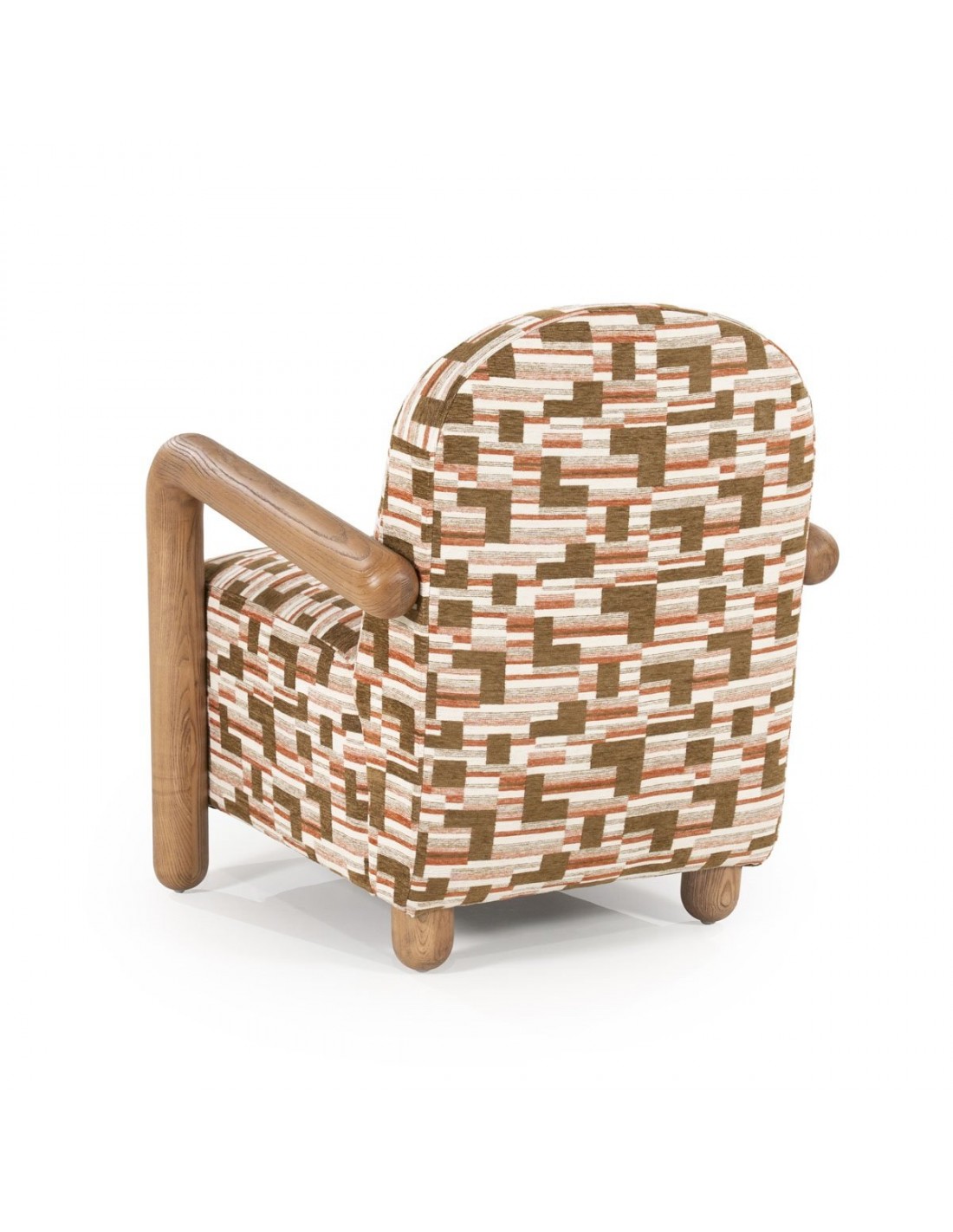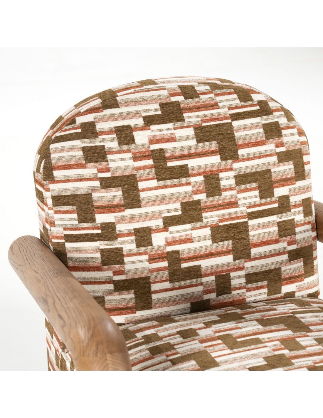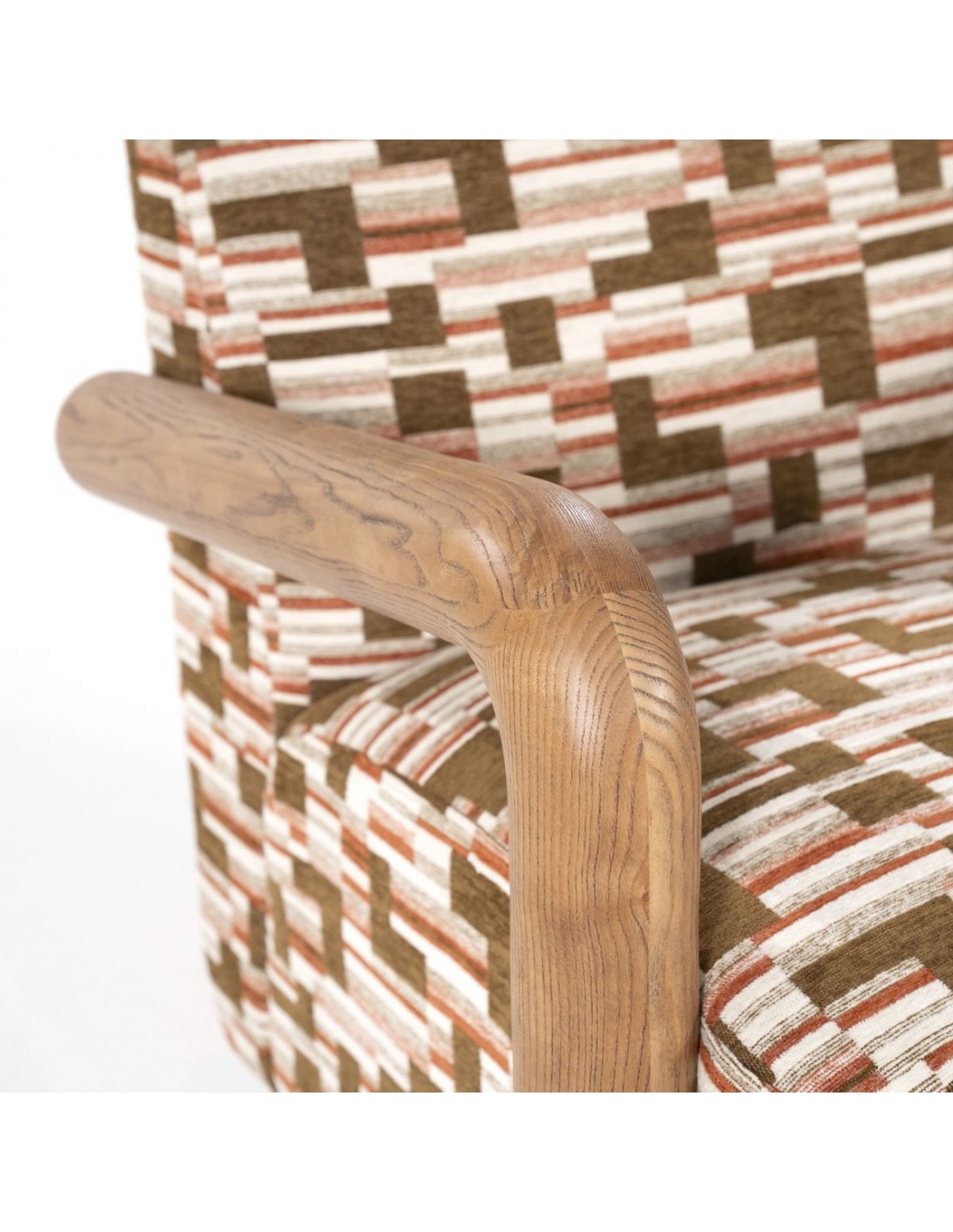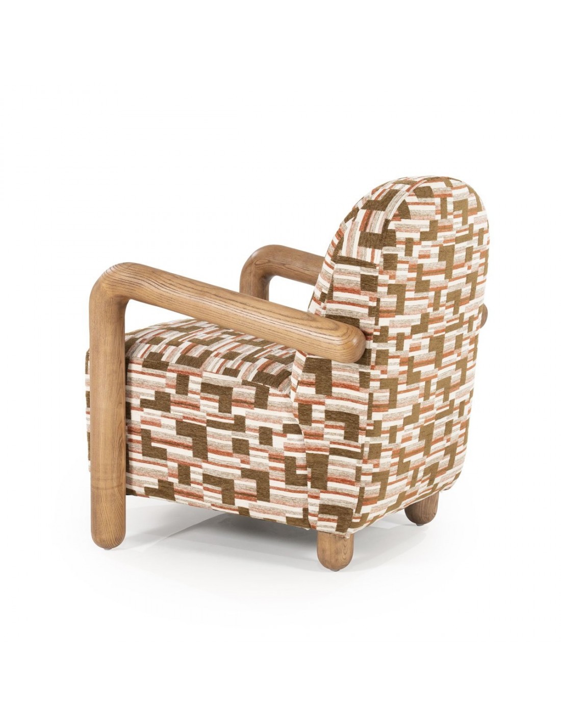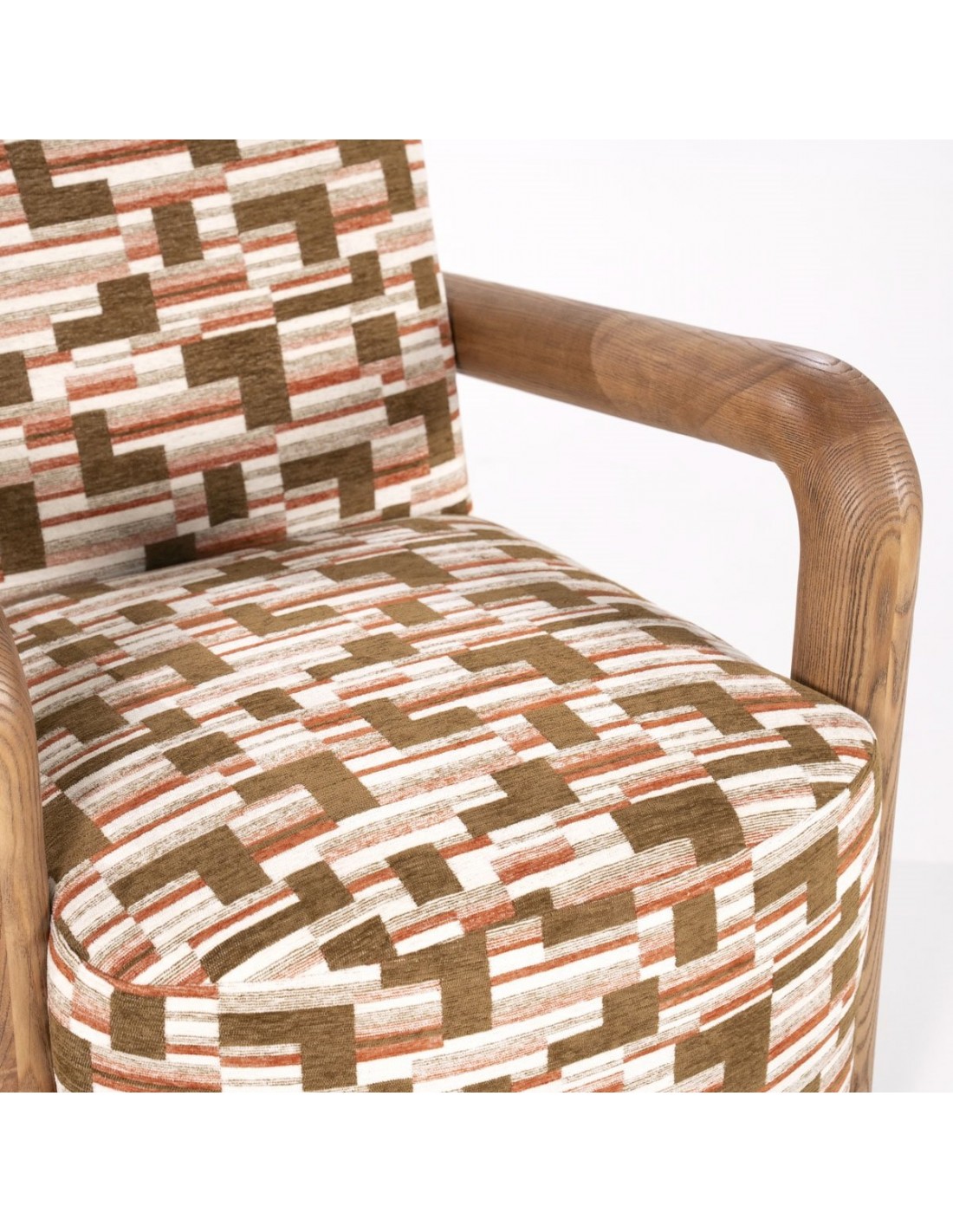 RETROVA Lænestol i asktræ og polyester H84 cm - Naturbrun/Multi print