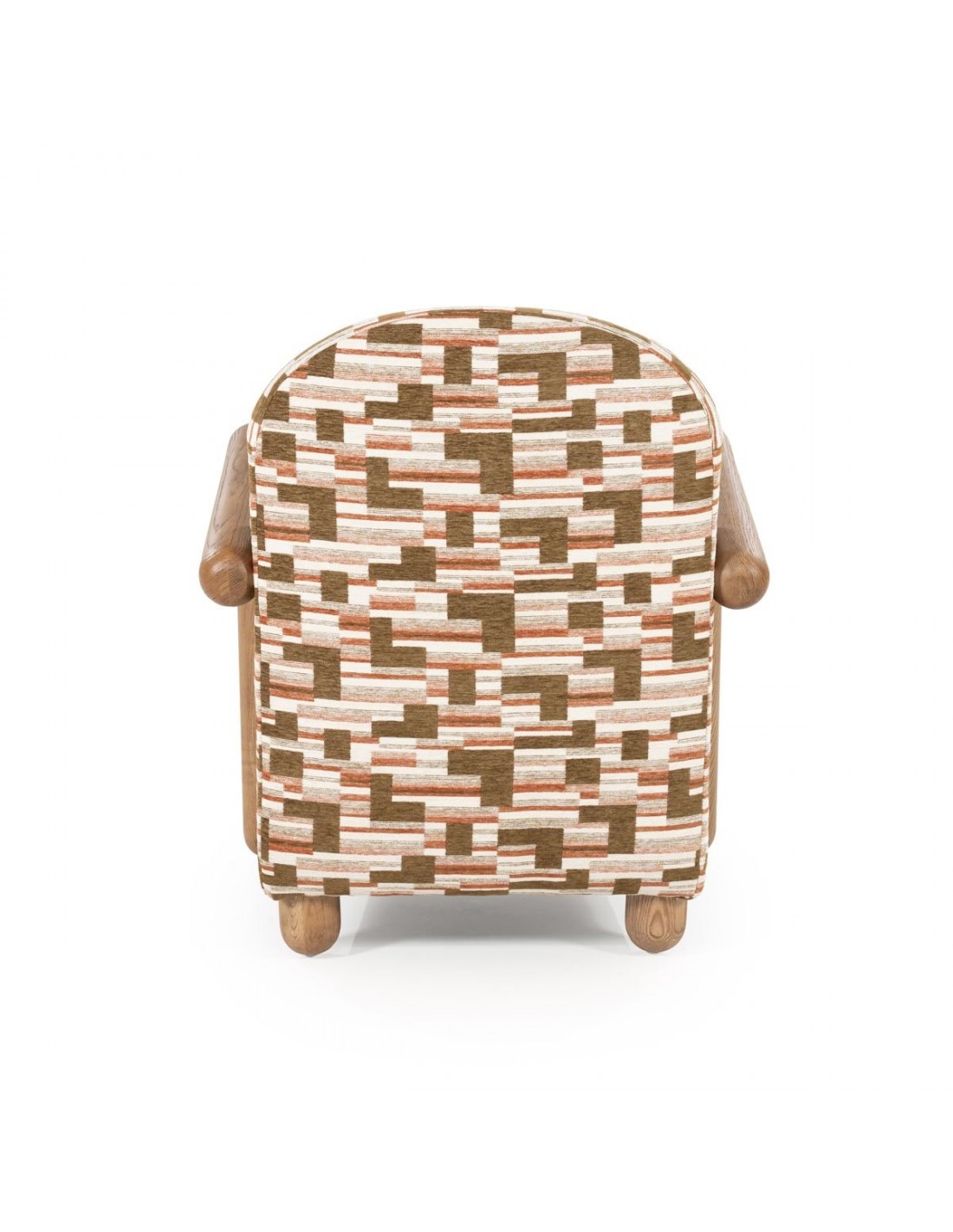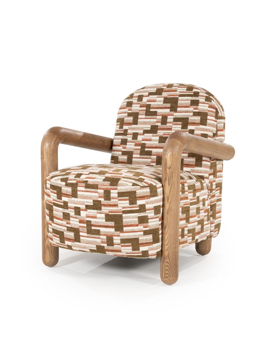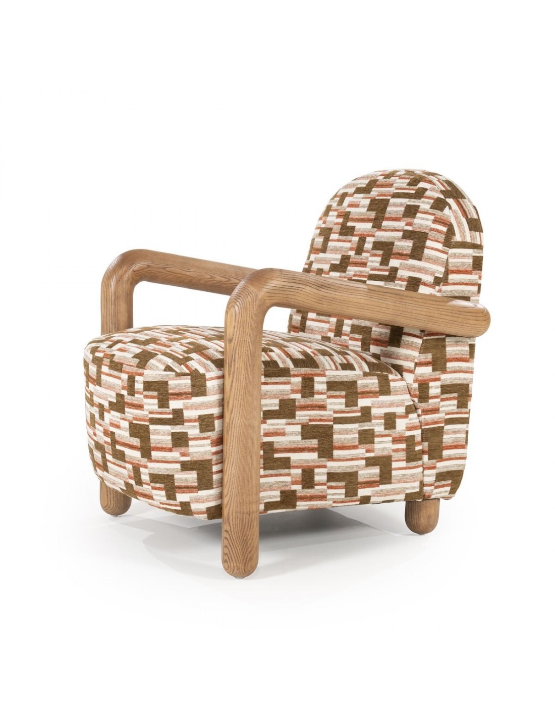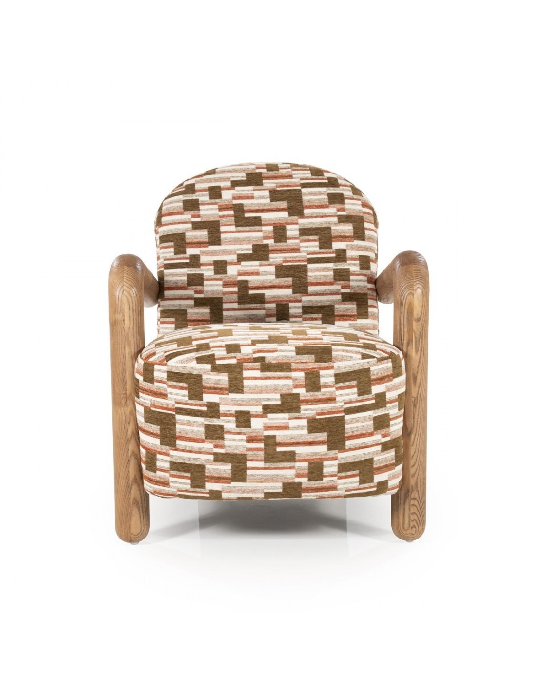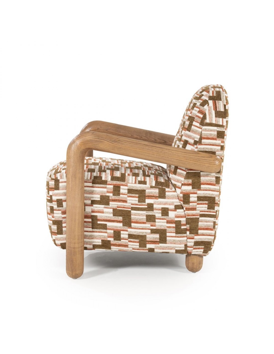 RETROVA Lænestol i asktræ og polyester H84 cm - Naturbrun/Multi print