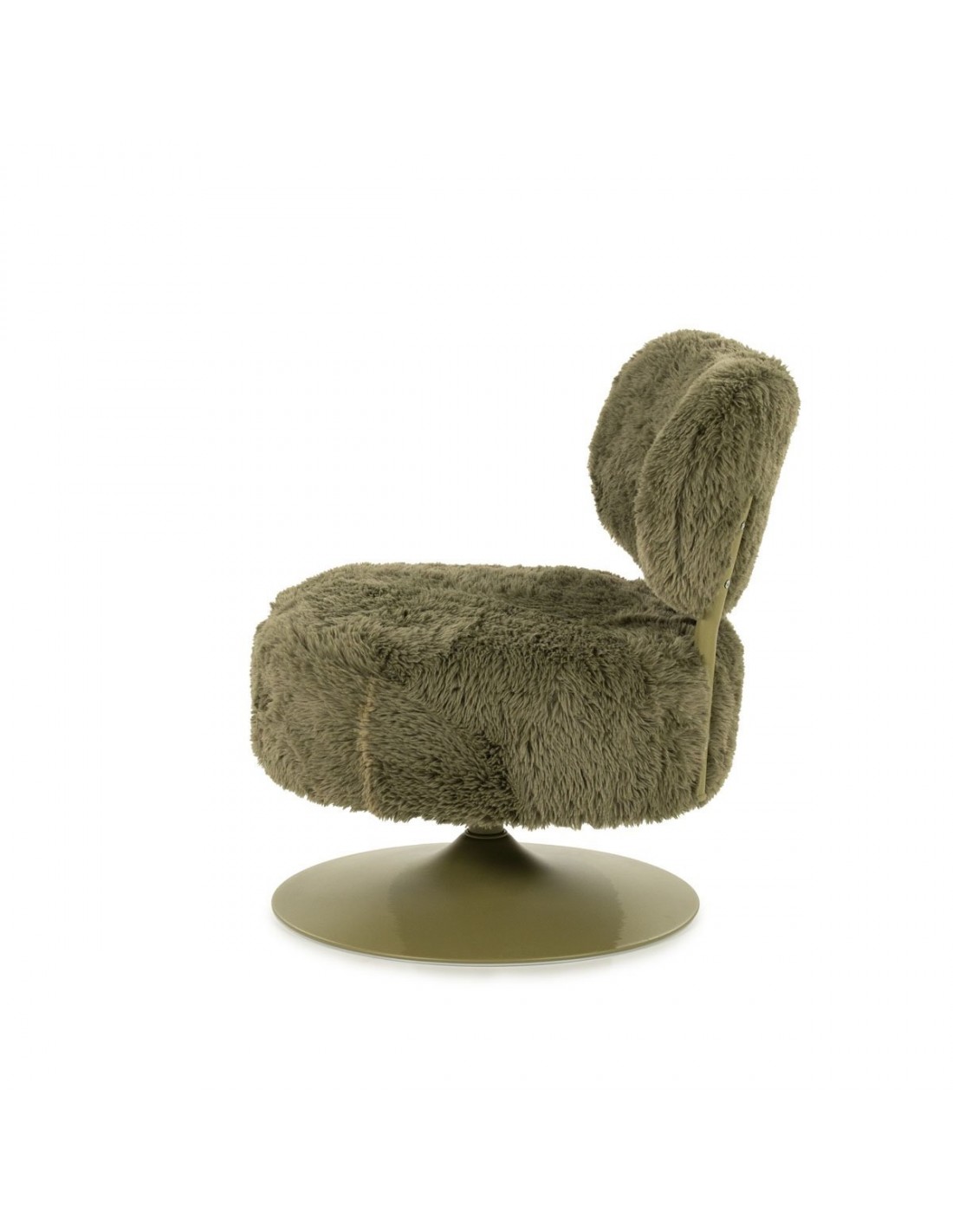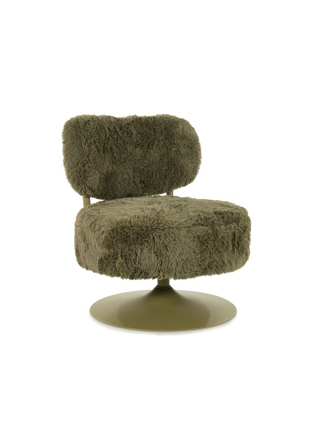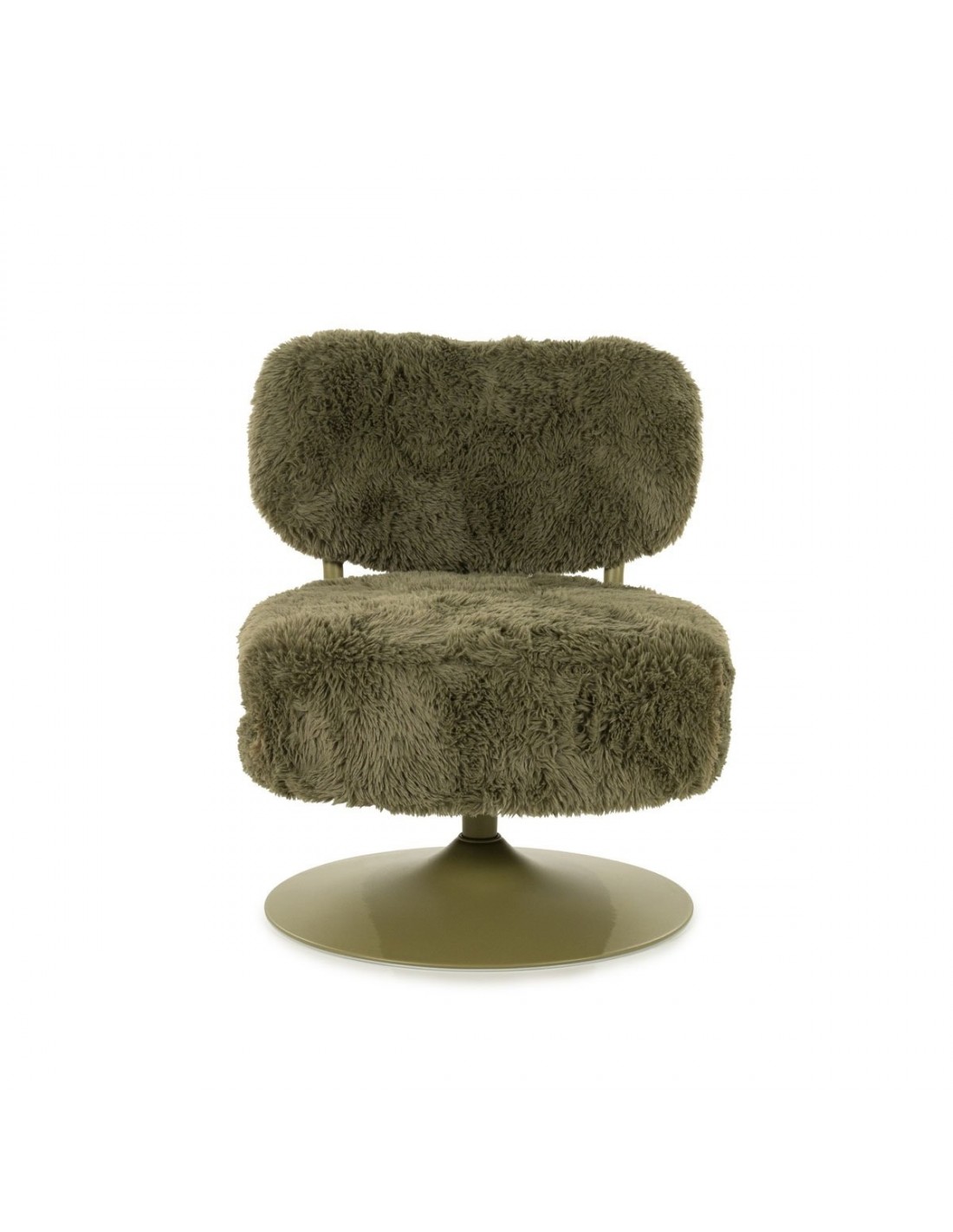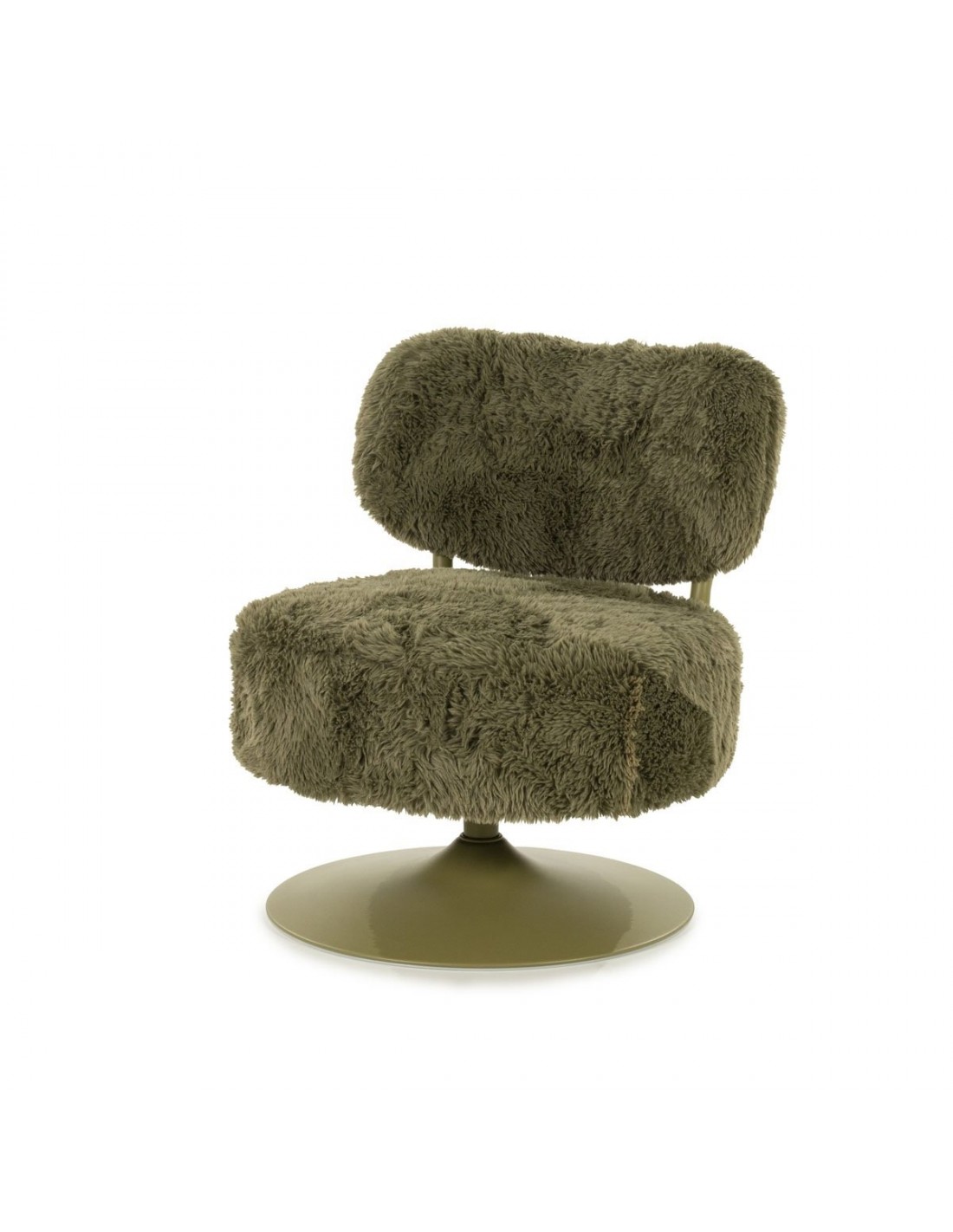 FURLO Lænestol med drejefod i metal og plys H75 cm - Grøn