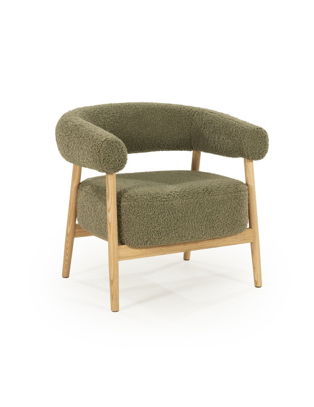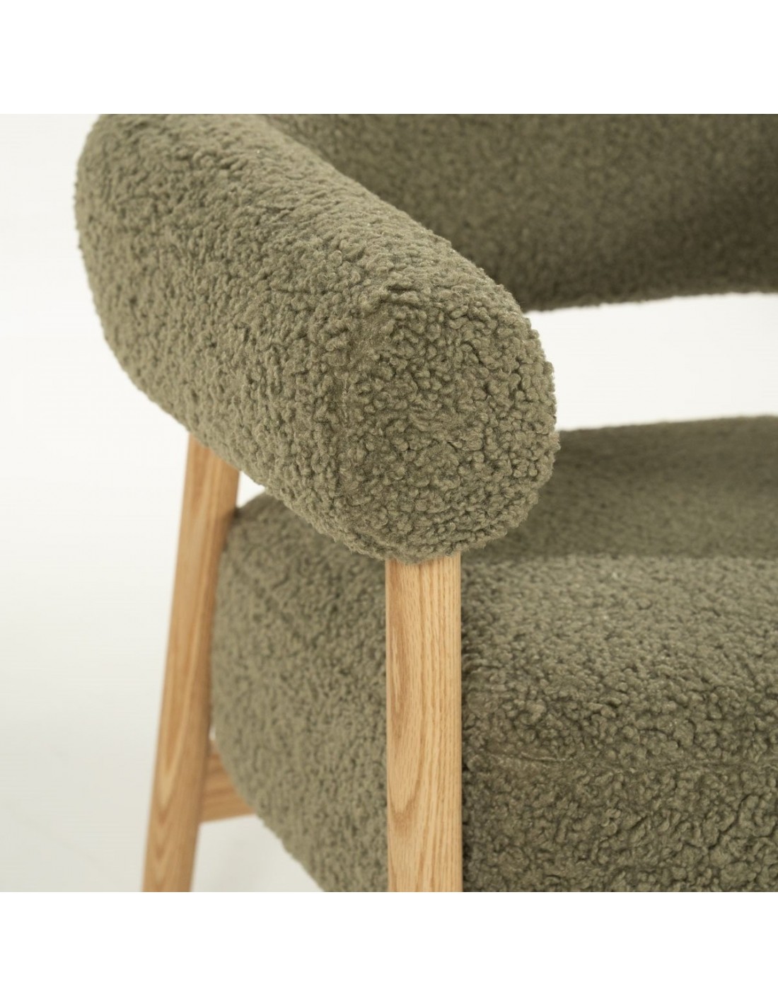MYSA Lænestol i egetræ og bouclé polyester H73 cm - Eg/Grøn