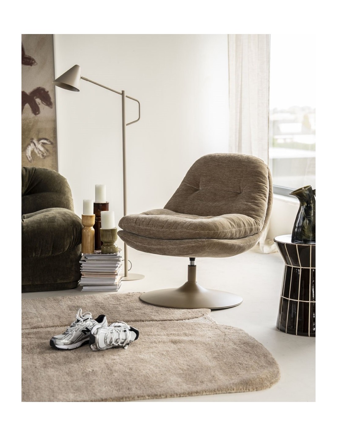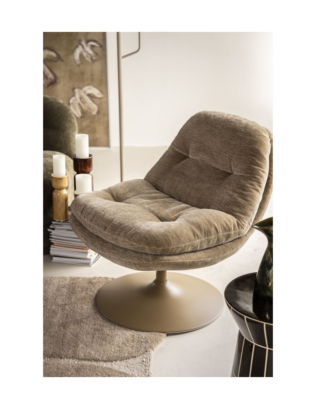 TROMBA Lænestol med drejefod i metal og polyester H84 cm - Taupe