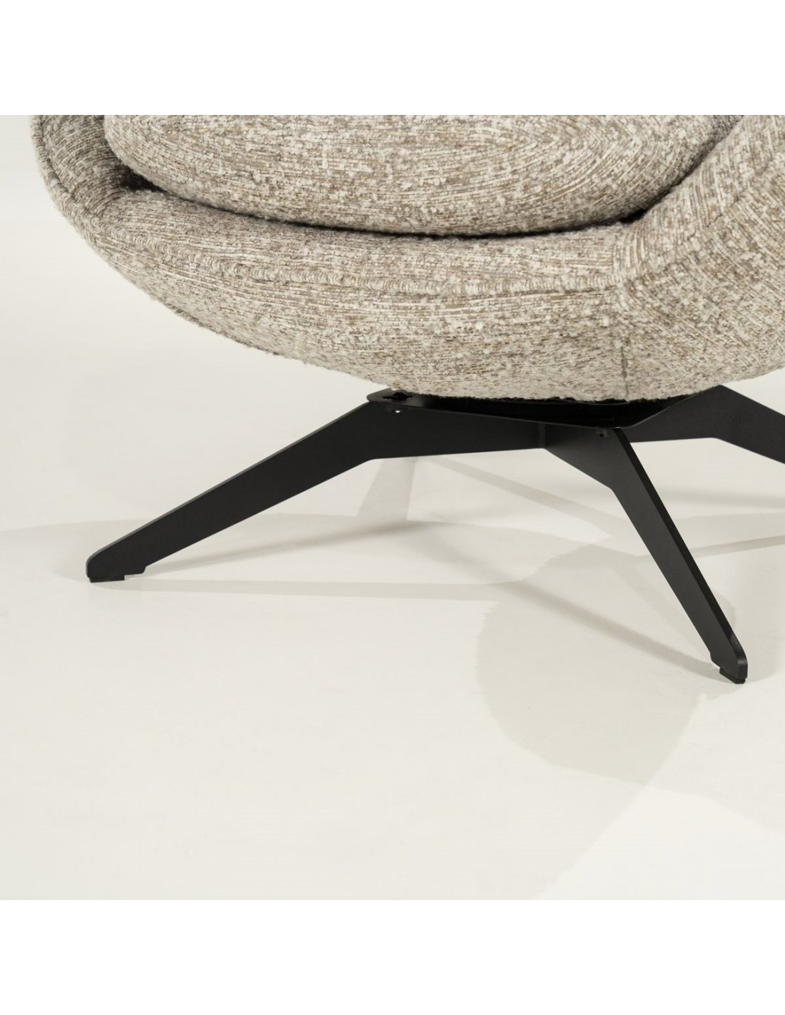 RYAN Lænestol med skammel og drejefod i bouclé polyester H86 cm - Sort/Taupe