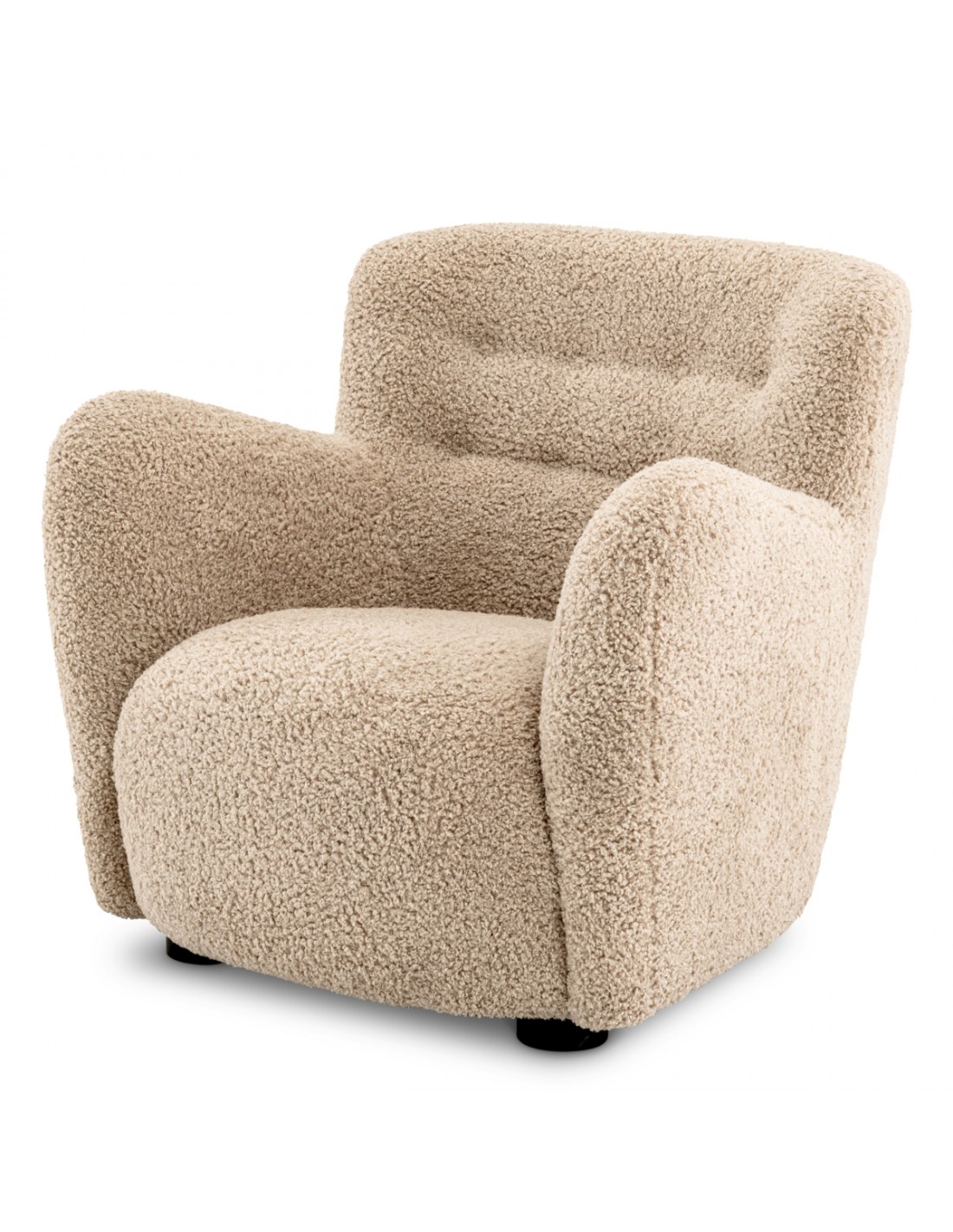 Eichholtz Bixby lænestol i træ og teddy plys polyester H80 cm - Sort/Sand