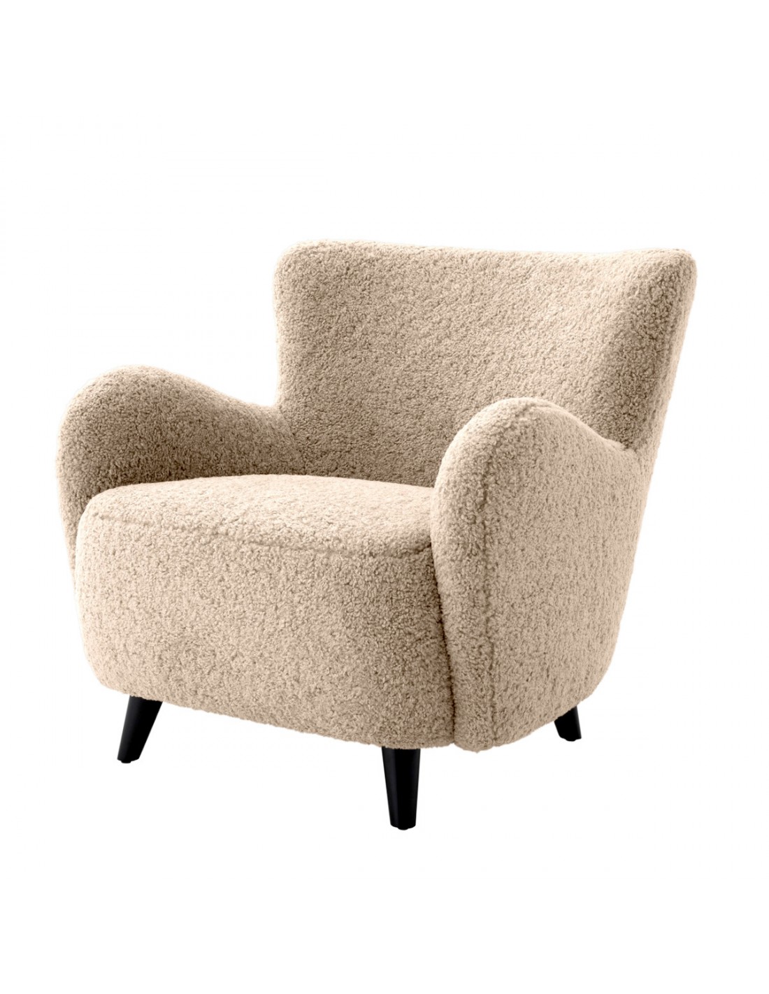 Eichholtz Svante S lænestol i træ og teddy plys polyester H80 cm - Sort/Sand