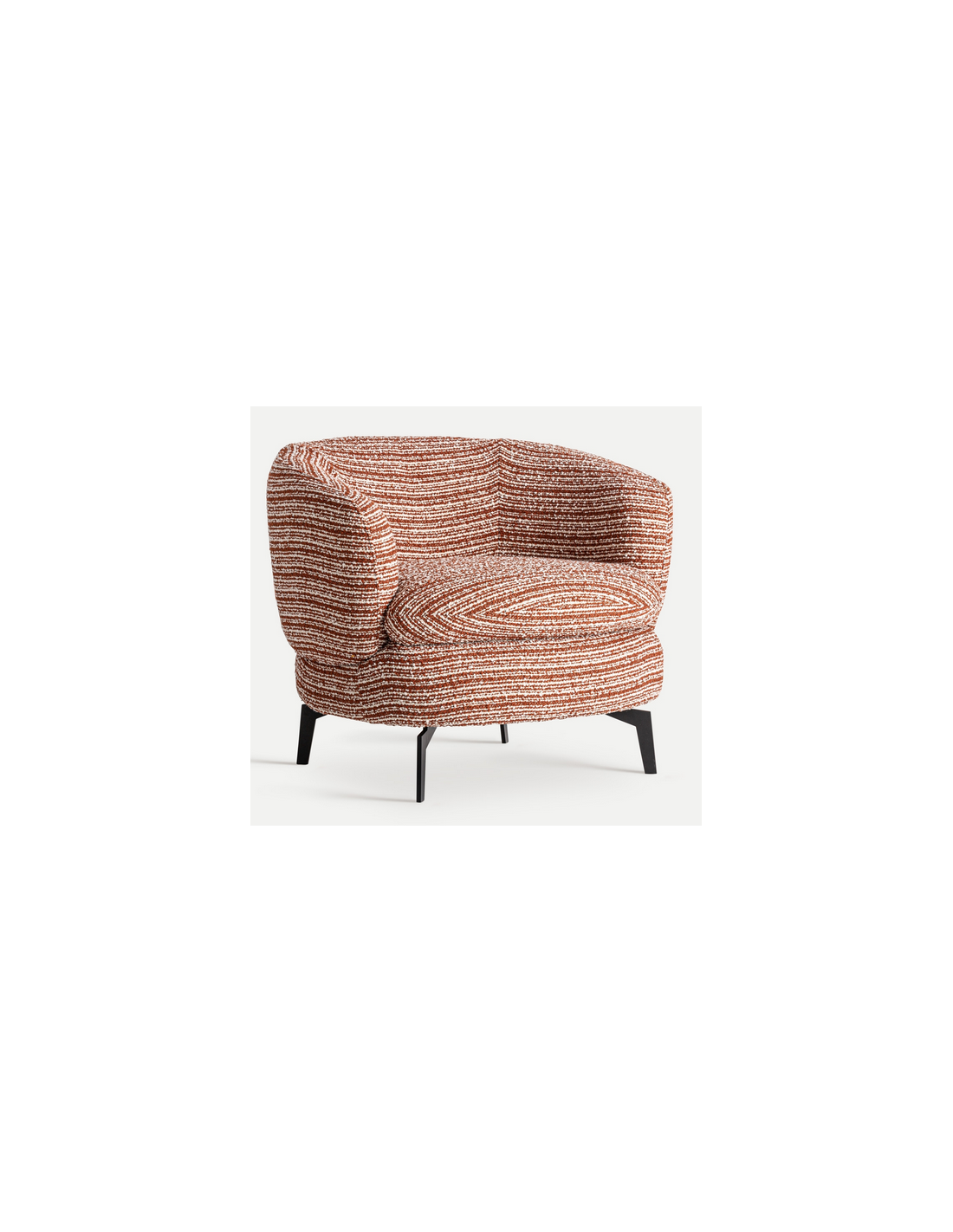 LOPI Lænestol udført i et moderne design fremstillet af sortlakeret metal og meleret terracottafarvet polyester. Stolen måler 71 cm i højden over ryggen og 79 x 71 cm i bredde og dybde. Siddehøjden er 46 cm.