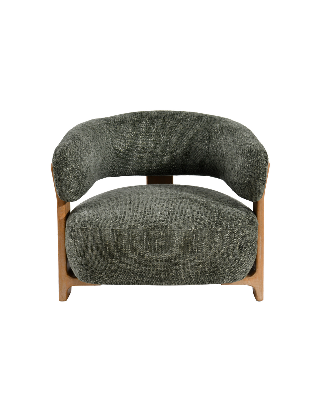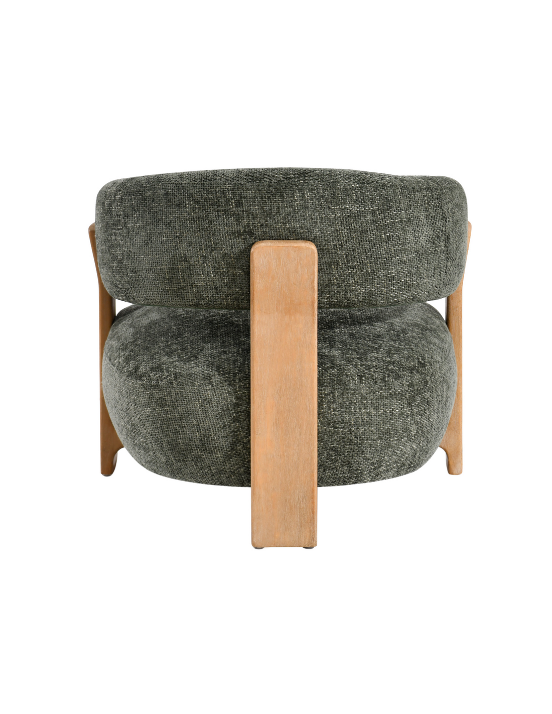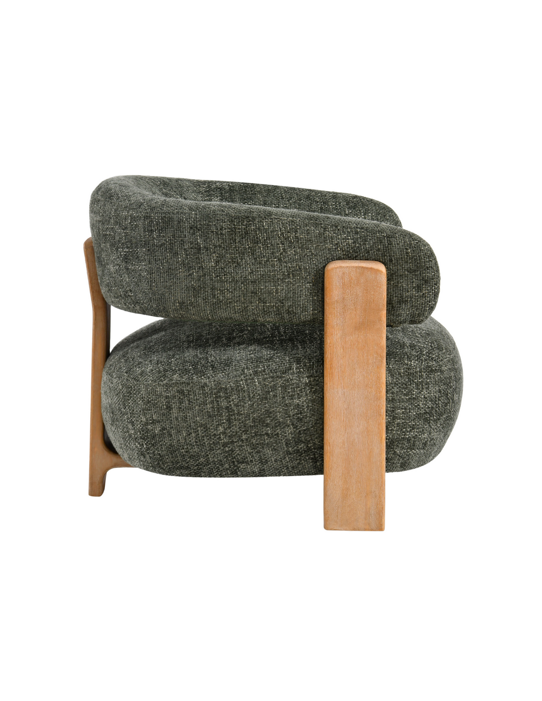 MIRE Lænestol i gummitræ og polyester H71 cm - Lys natur/Olivengrøn
