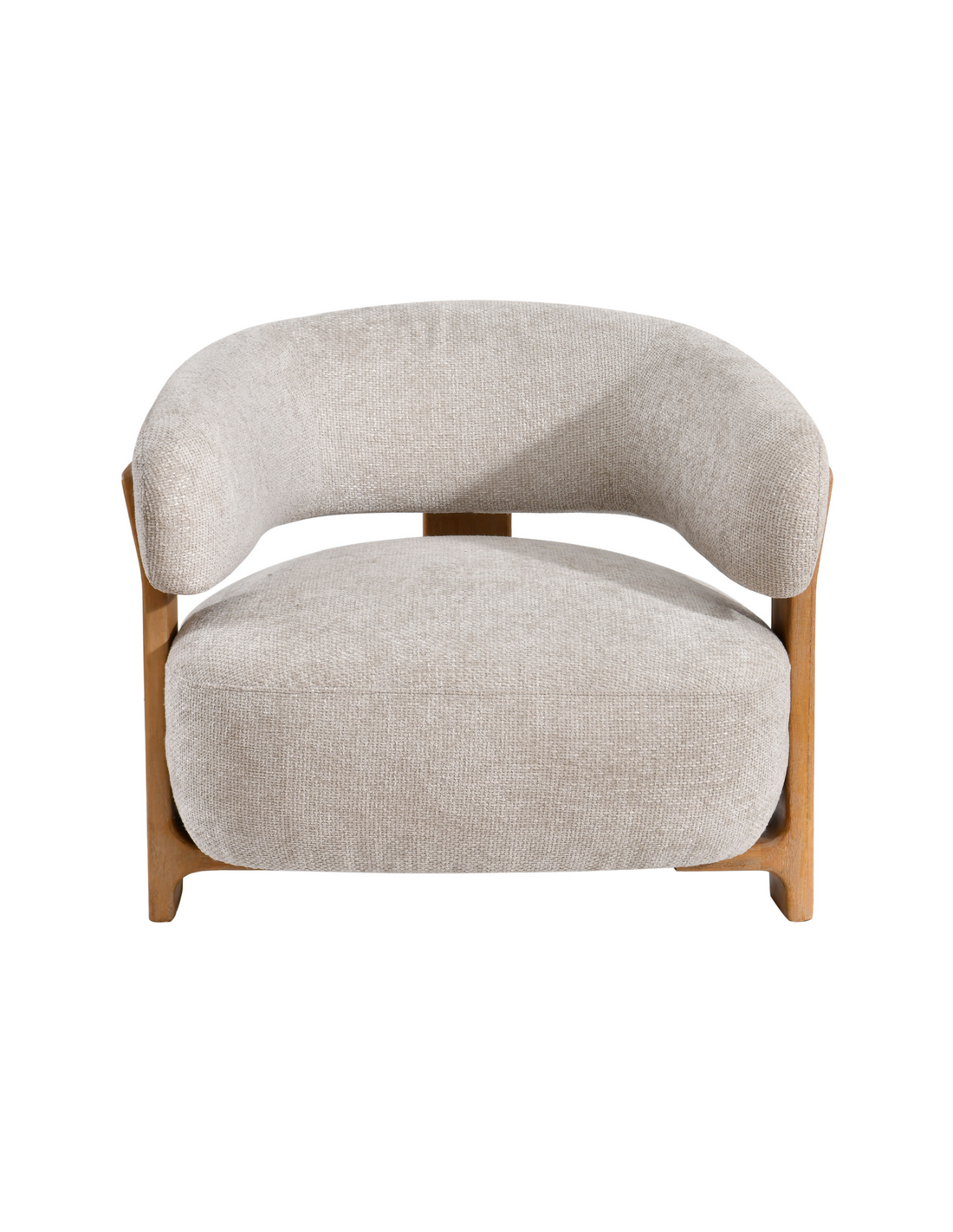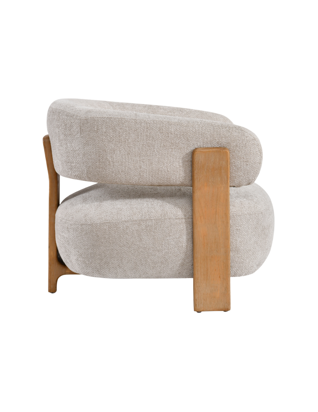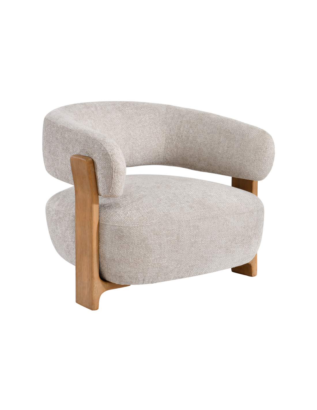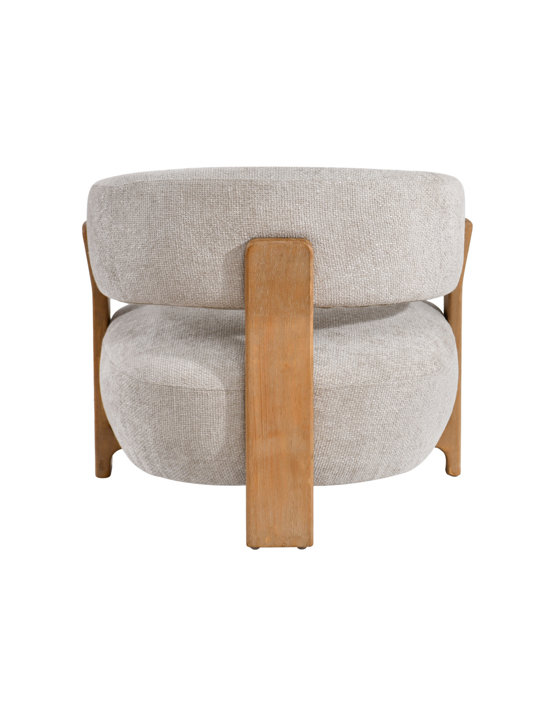 MIRE Lænestol i gummitræ og polyester H71 cm - Lys natur/Lysegrå
