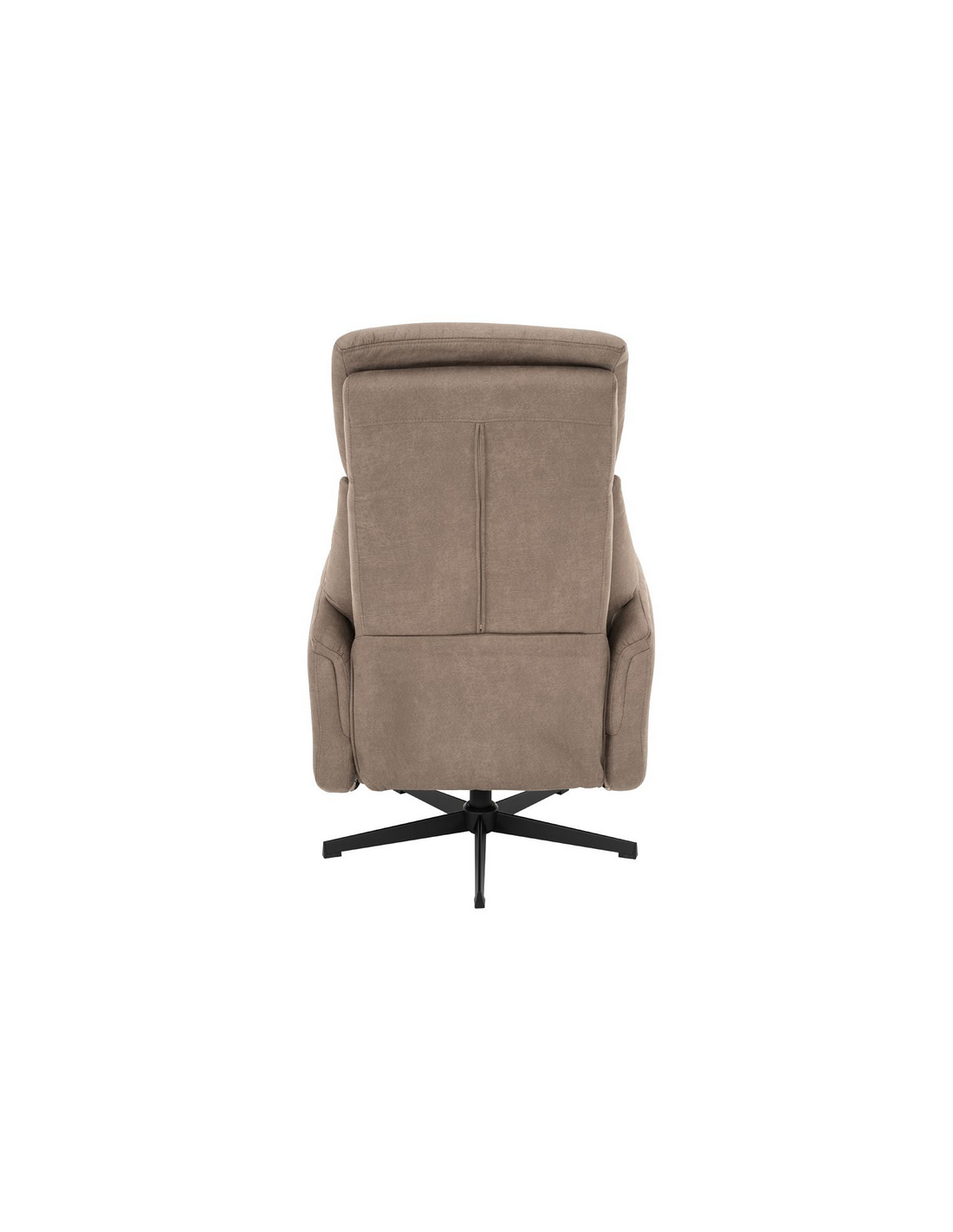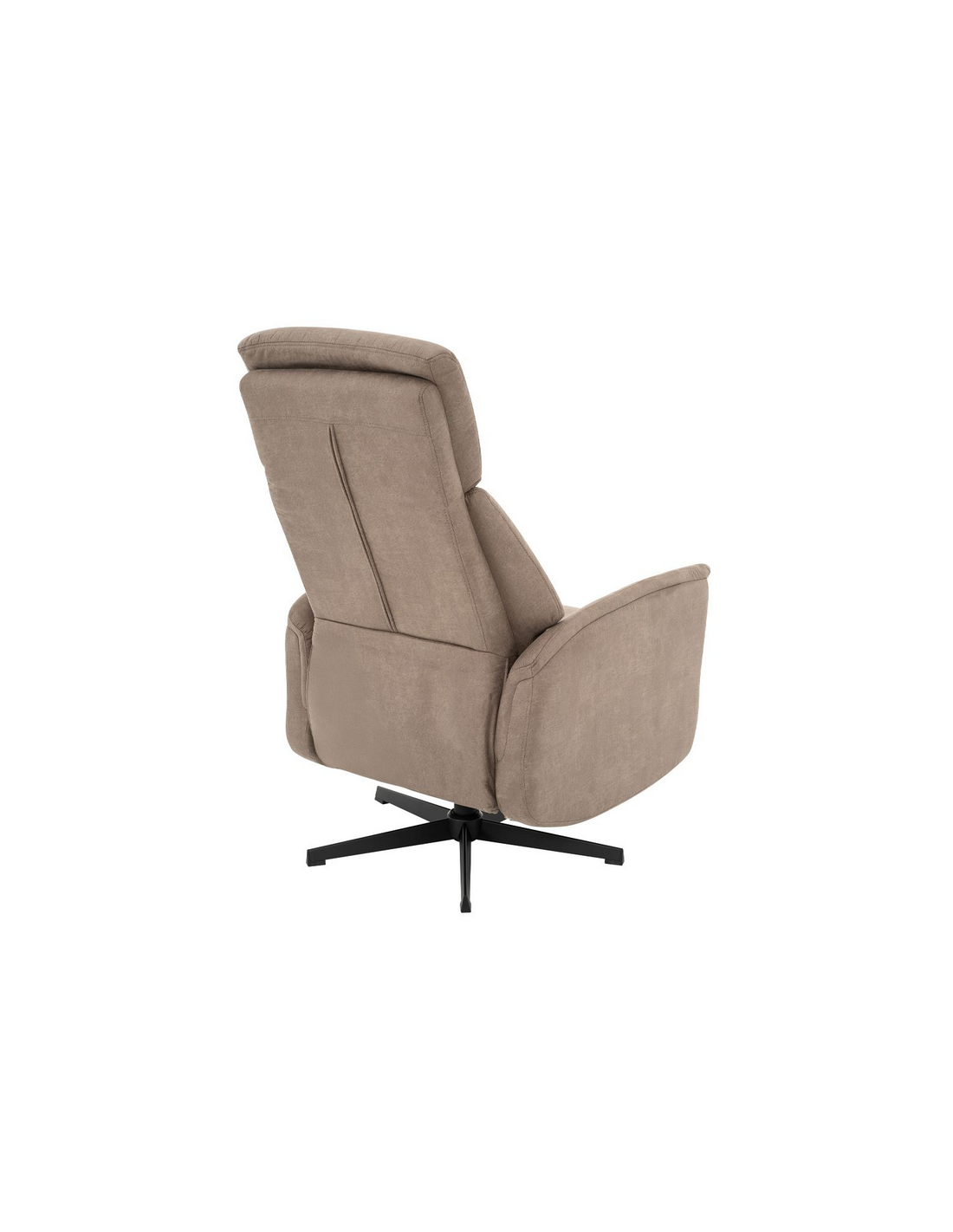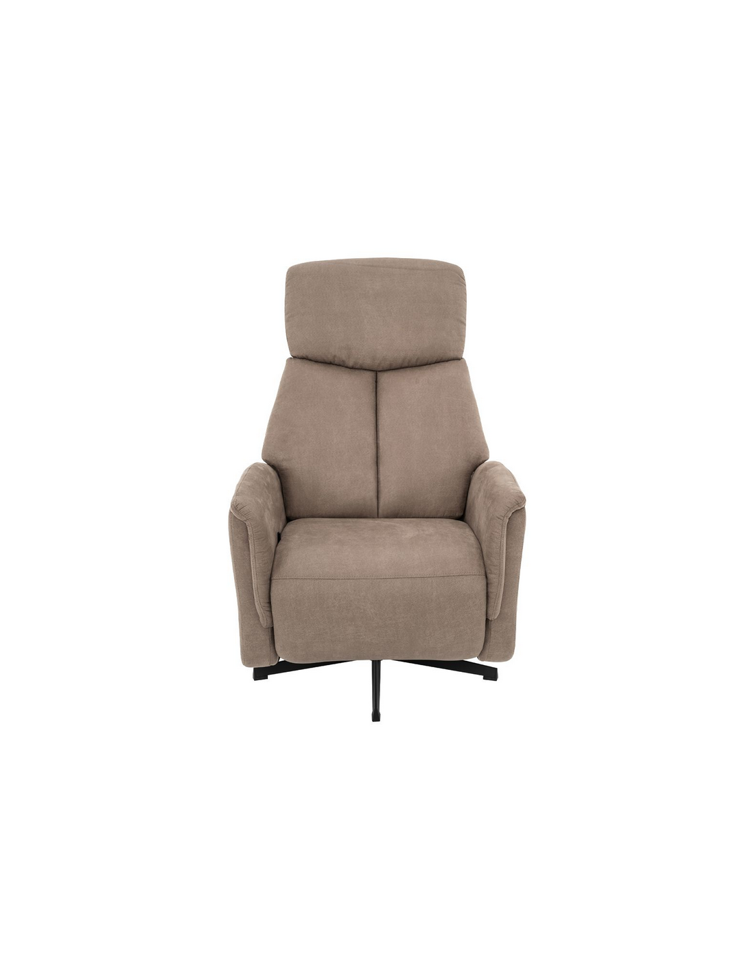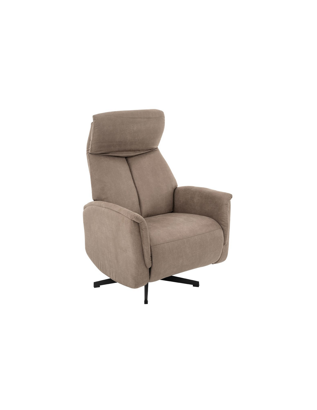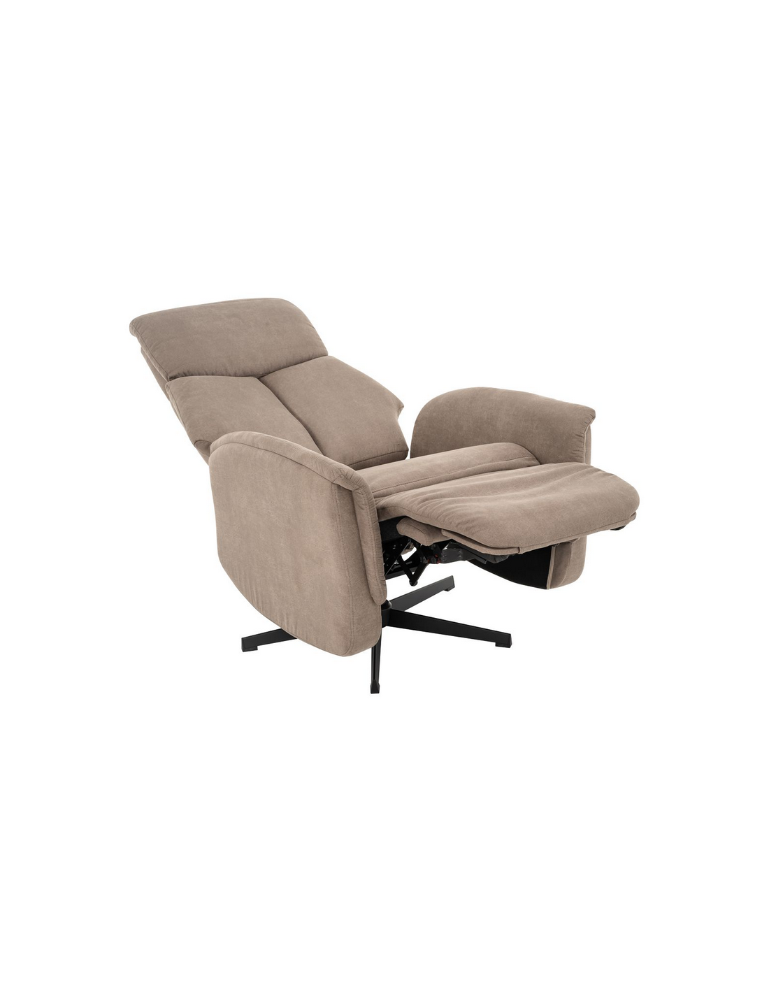 AARHUS Lænestol med elektrisk indbygget fodskammel, udført i et design fremstillet i sortlakeret metal og taupefarvet microfiber med ruskindslook. Stolen måler 114 cm i højden over ryggen og med siddehøjde på 47 cm. Stolens ryg og fodskammel reguleres ved hjælp af betjening ved sædet.