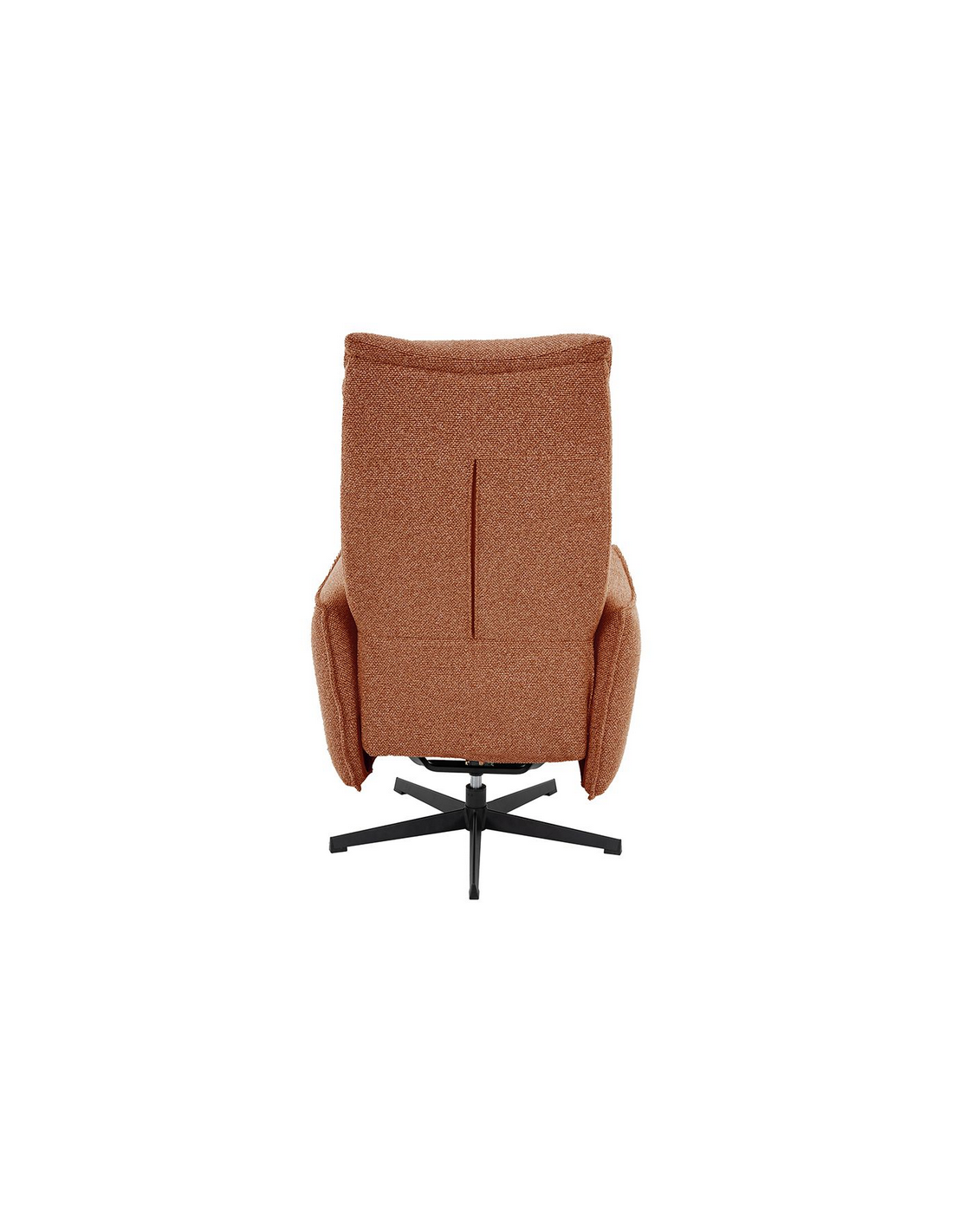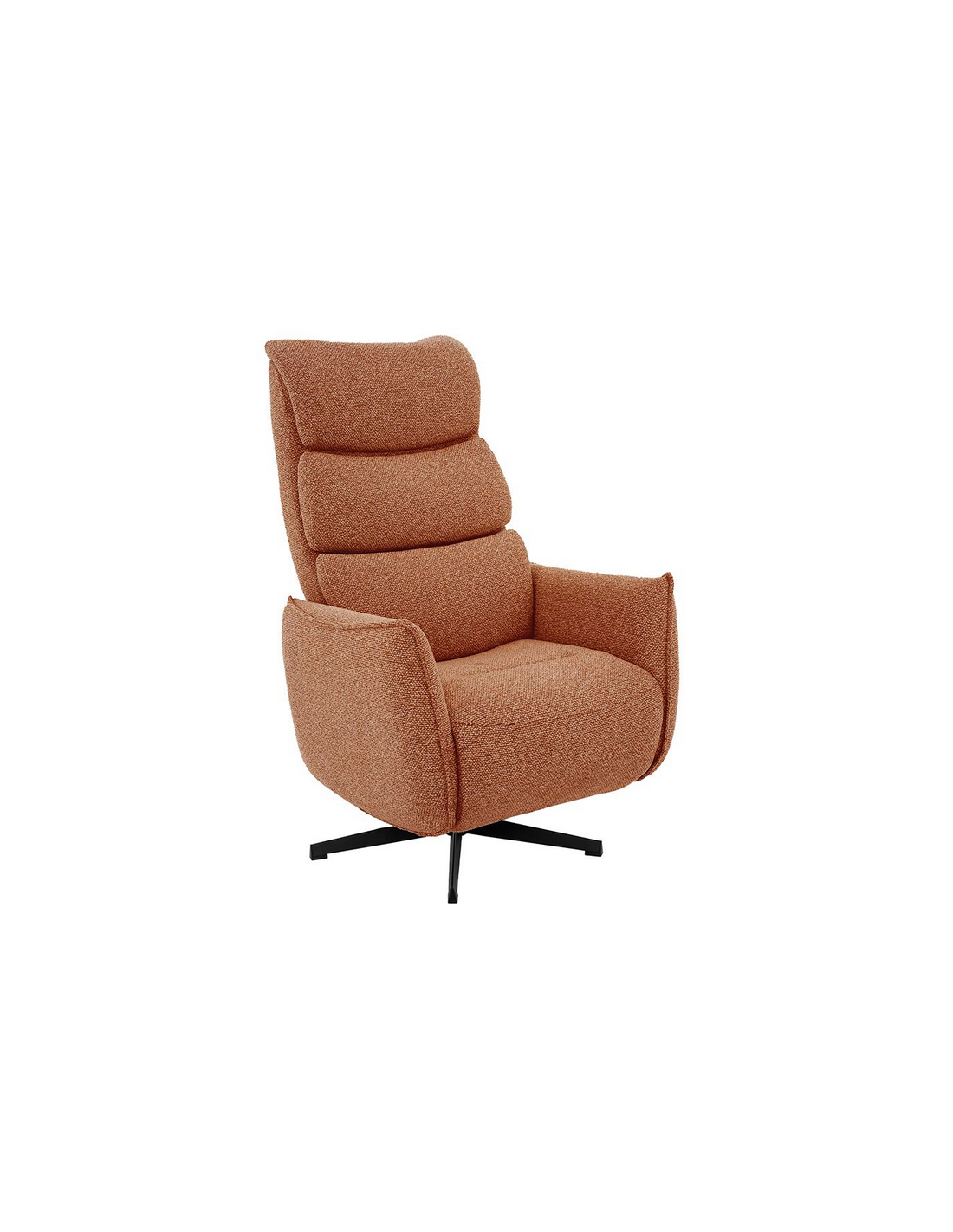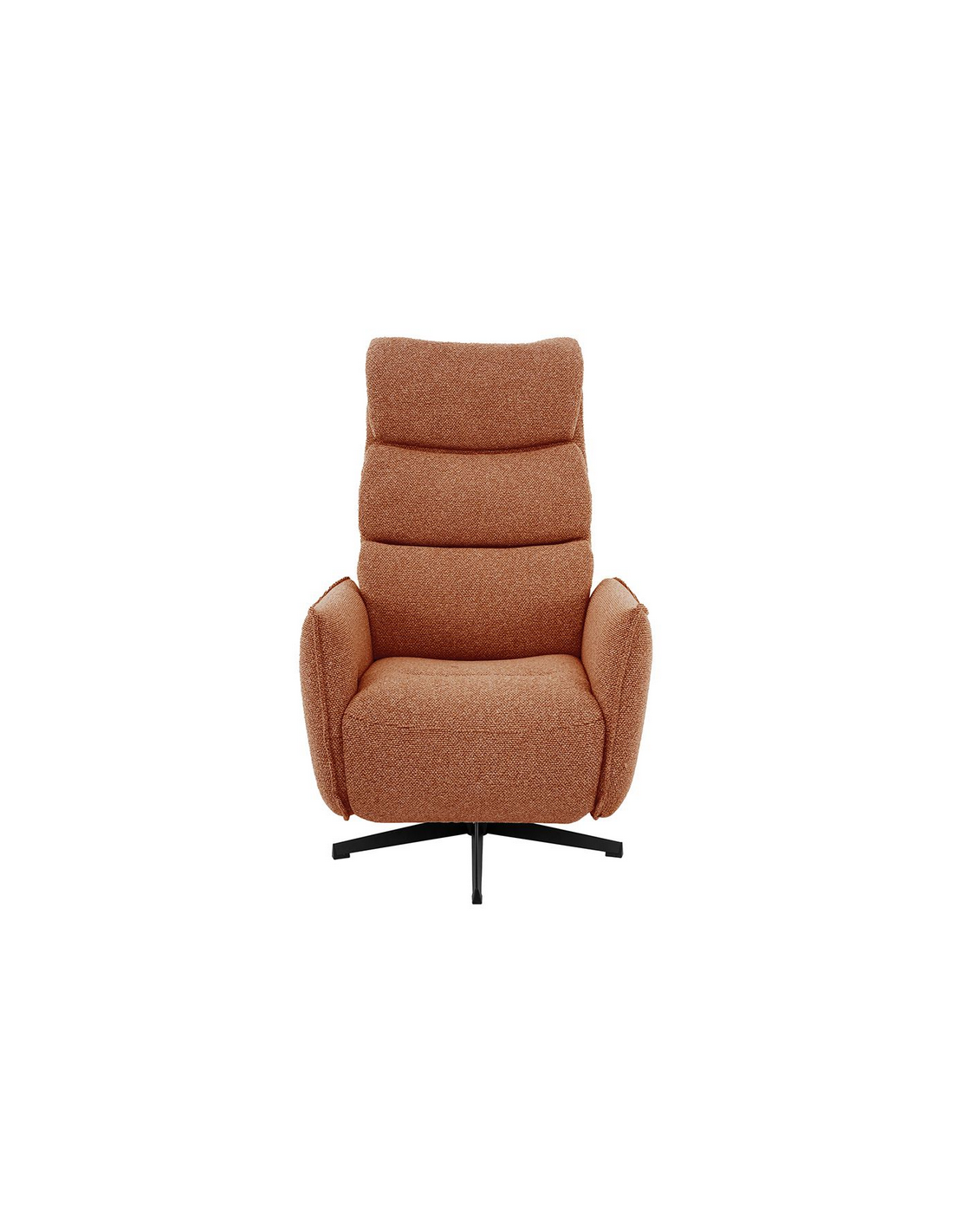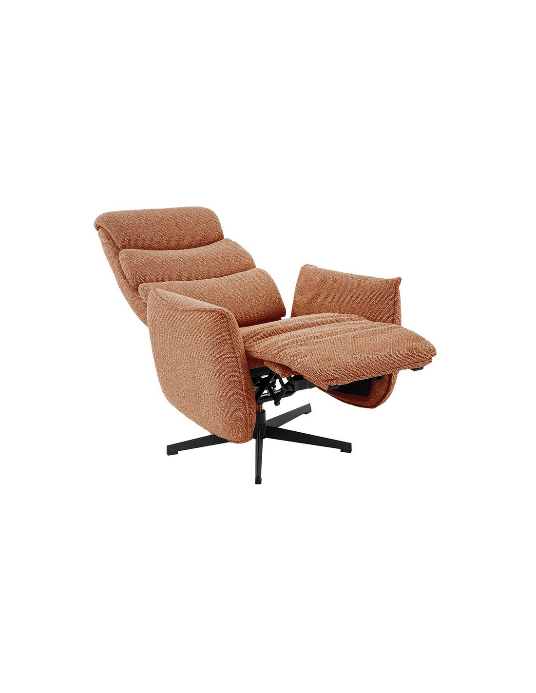 GOTEBORG Lænestol med elektrisk indbygget fodskammel, udført i et design fremstillet i sortlakeret metal og koralrød bouclé stof. Stolen måler 118 cm i højden over ryggen og med siddehøjde på 48 cm. Stolens ryg og fodskammel reguleres ved hjælp af betjening ved sædet.