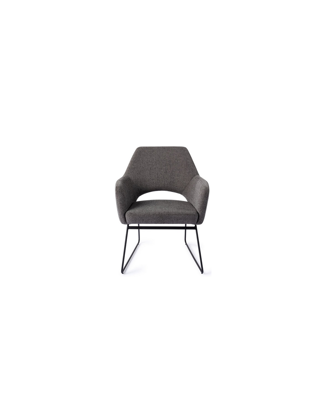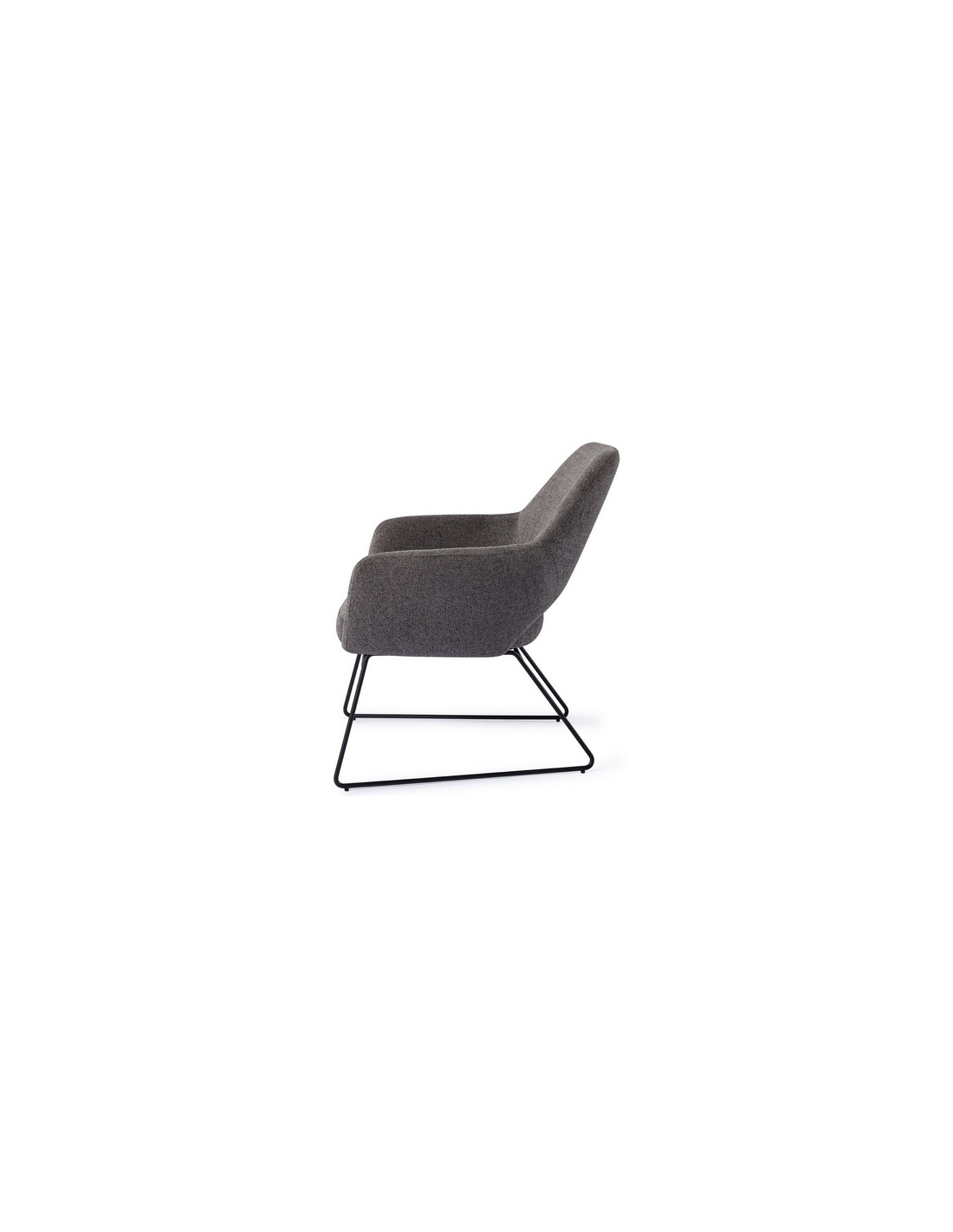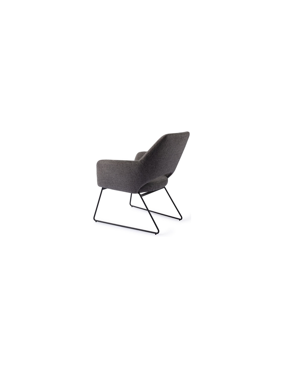 YANAI Loungestol udført i et moderne design med stel i sortlakeret stål og sæde i mørkegrå polyester. Stolen måler 84 cm i højden over ryggen og med siddehøjde på 44 cm.