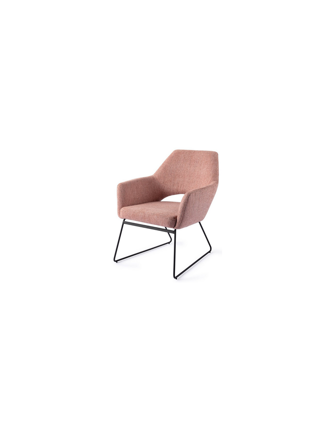 YANAI Loungestol udført i et moderne design med stel i sortlakeret stål og sæde i pink polyester. Stolen måler 84 cm i højden over ryggen og med siddehøjde på 44 cm.