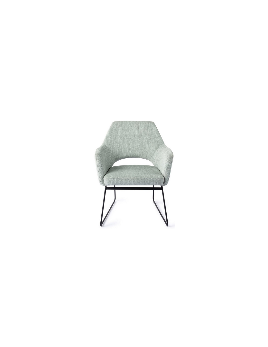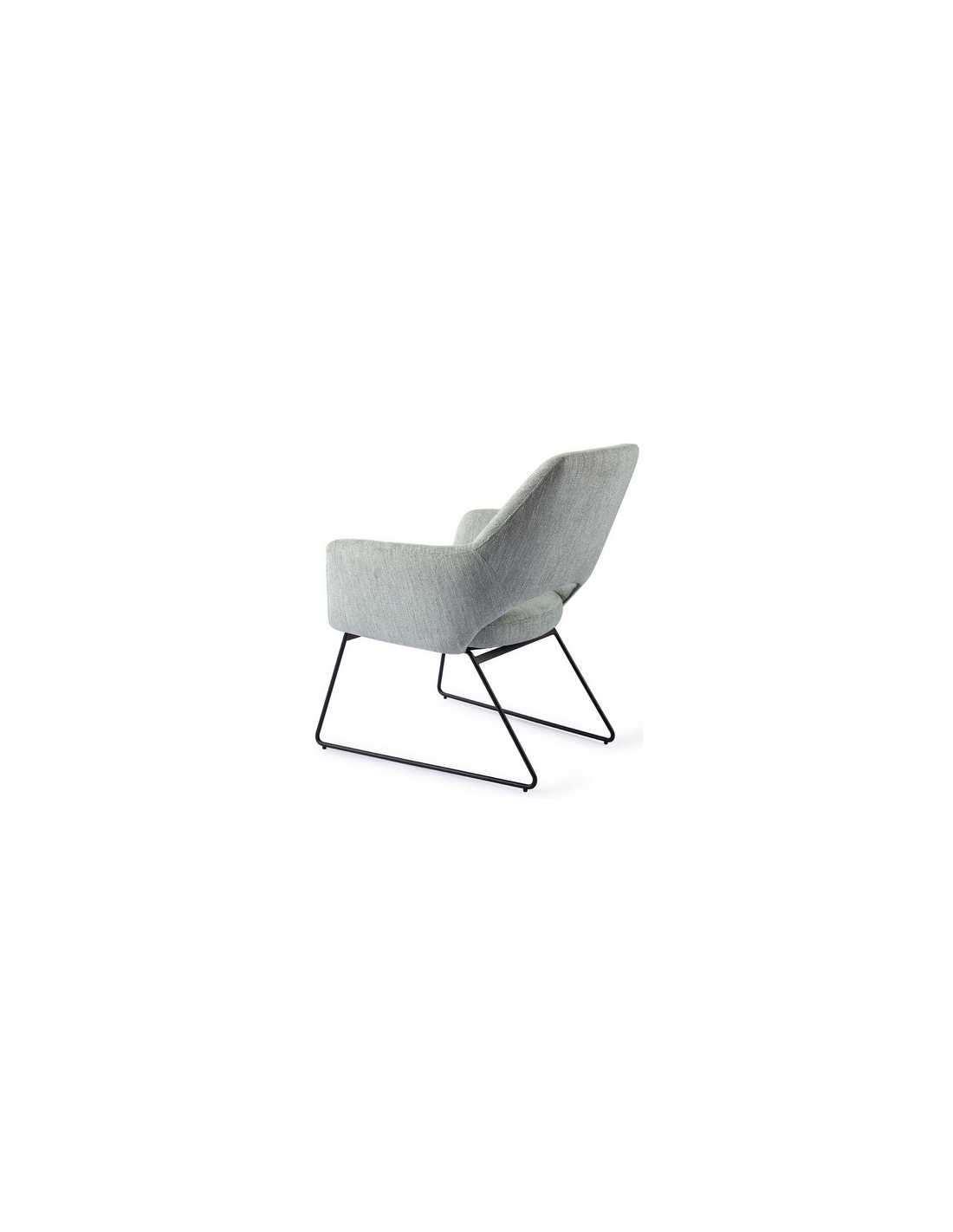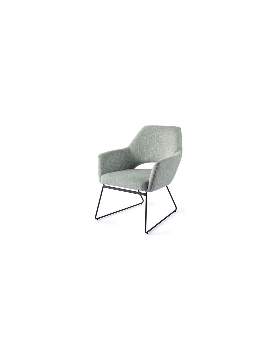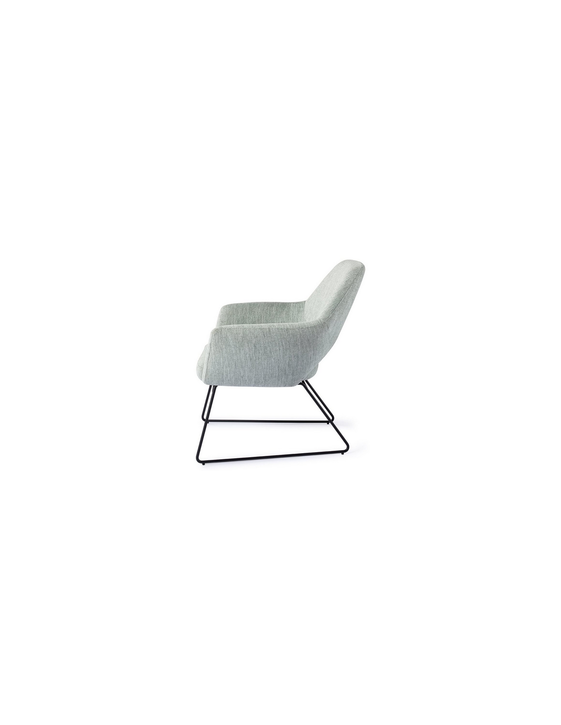 YANAI Loungestol udført i et moderne design med stel i sortlakeret stål og sæde i lysegrøn polyester. Stolen måler 84 cm i højden over ryggen og med siddehøjde på 44 cm.