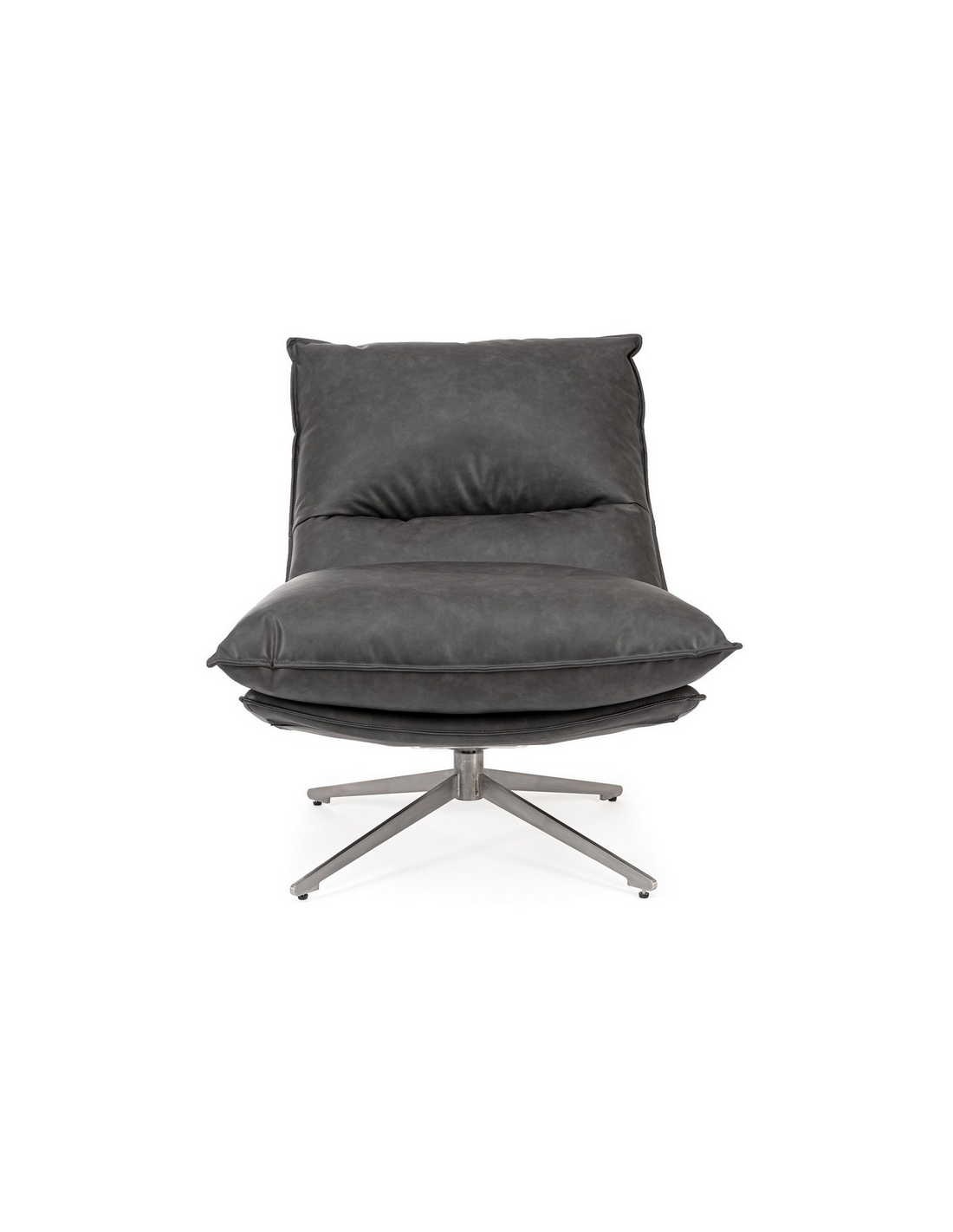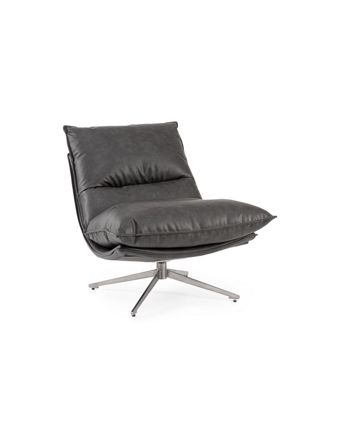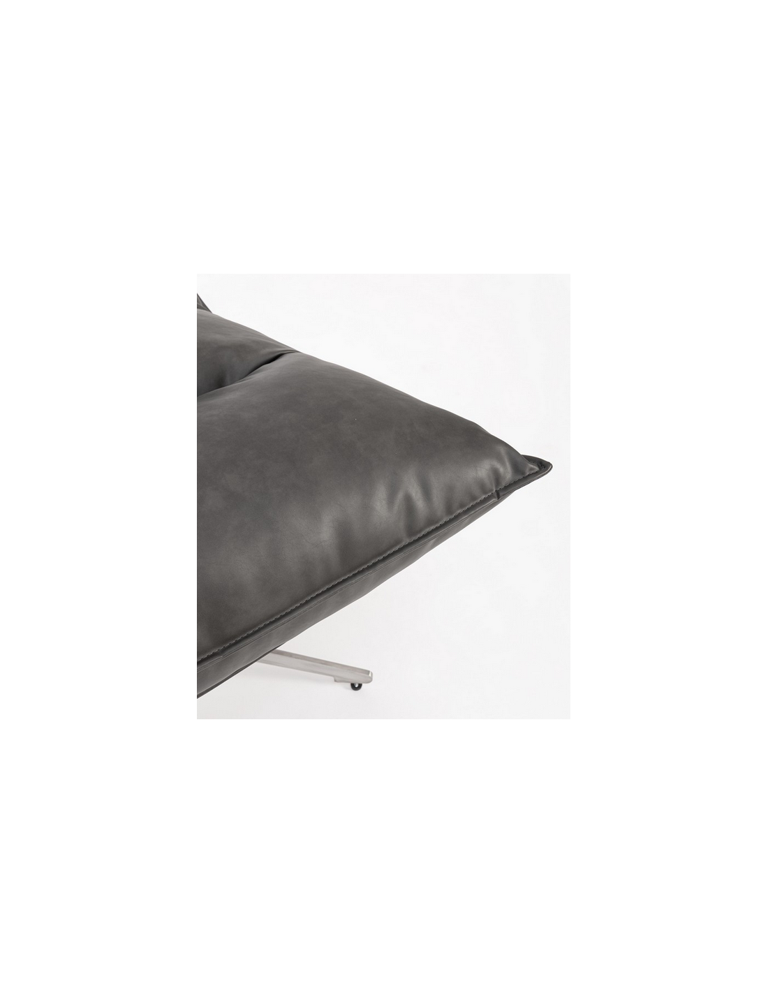 ALAN Lænestol med 360 graders drejbart stel, udført i et moderne design af stålgrå lakeret stål og mørkegrå kunstlæder. Stolen måler 81 cm i højden over ryggen og med siddehøjde på 49 cm.
