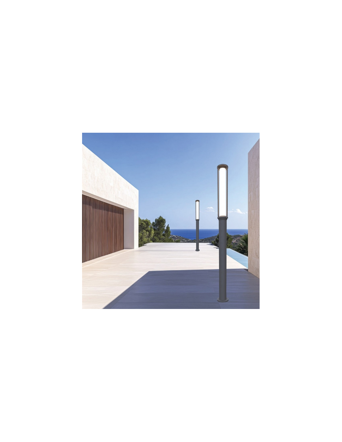 Udendørs lampemast udført i et stilrent design fremstillet i mat graphitgrå lakeret aluminium og klart og hvidt polycarbonat. Lampen måler 220 cm i højden og anvender 17W LED lyskilde (Inkl.).