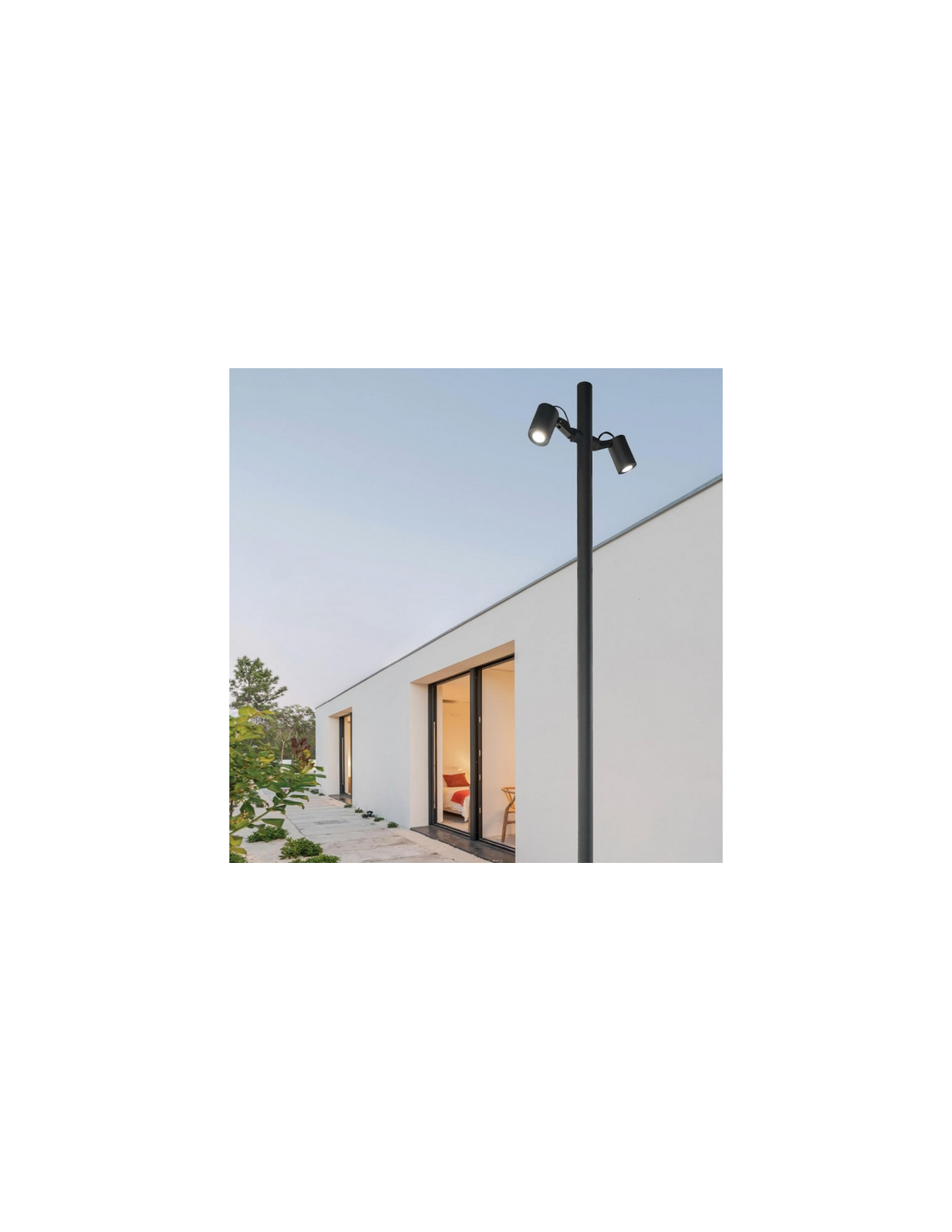 Udendørs lampemast udført i et stilrent design fremstillet i satineret sortlakeret aluminium og klart glas. Lampen måler 250 cm i højden og anvender 17W LED lyskilde (Inkl.). Lampehovederne er justérbare.