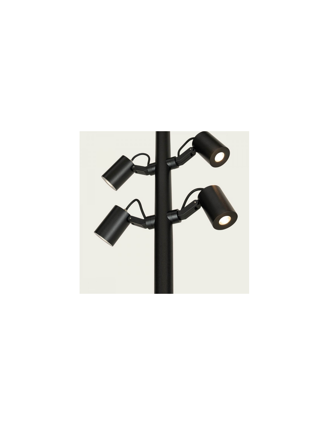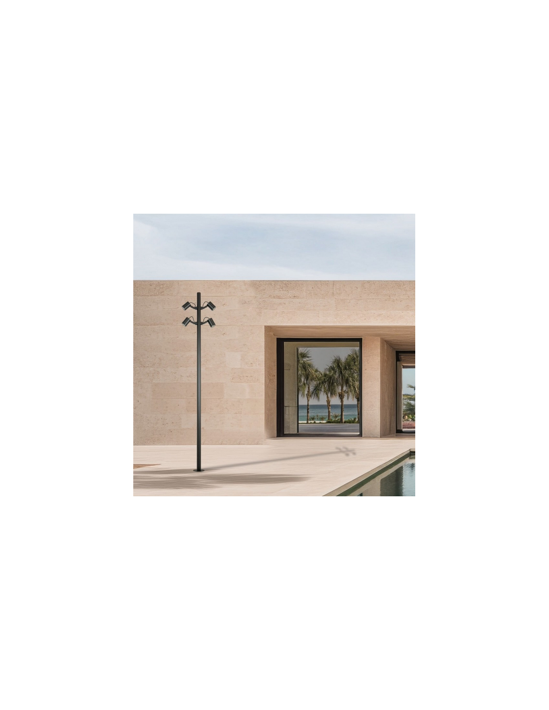 Udendørs lampemast udført i et stilrent design fremstillet i satineret sortlakeret aluminium og klart glas. Lampen måler 250 cm i højden og anvender 35W LED lyskilde (Inkl.). Lampehovederne er justérbare.