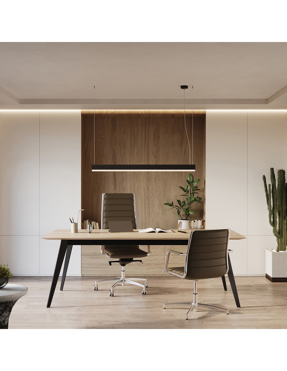 FARGE Langbordspendel udført i et moderne design, fremstillet i sortlakeret aluminium. Lampen måler 120 x 3,7 cm i bredde og dybde og anvender 38W LED lyskilde (Inkl.).