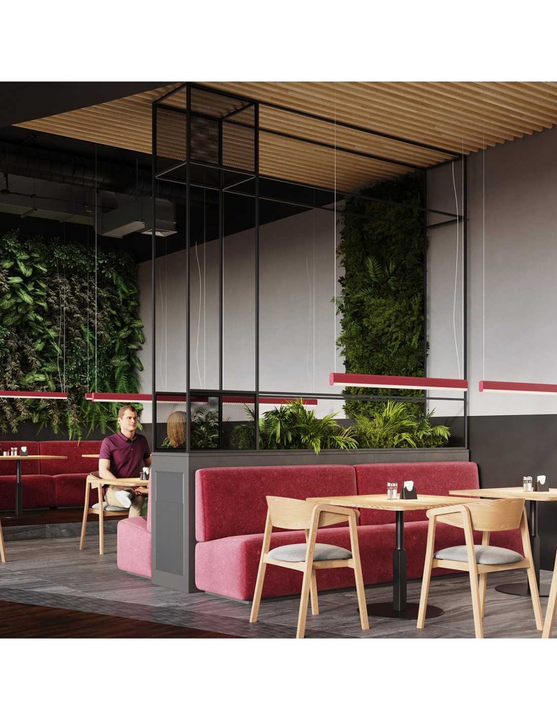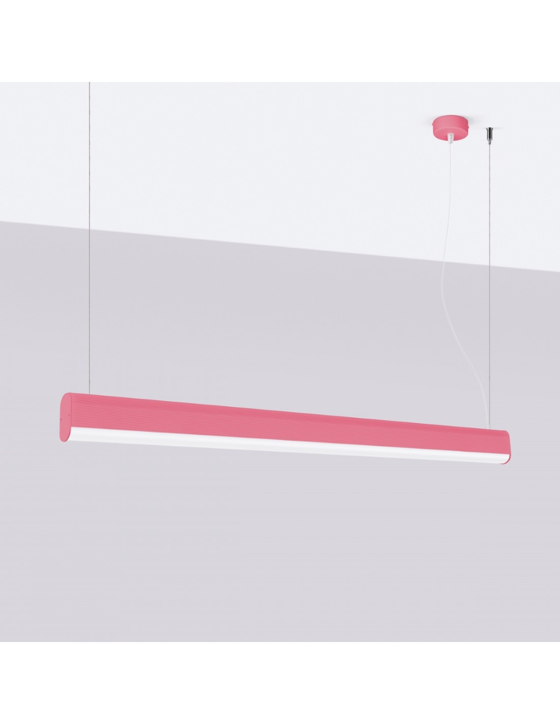 FARGE Langbordspendel udført i et moderne design, fremstillet i pink lakeret aluminium. Lampen måler 120 x 3,7 cm i bredde og dybde og anvender 38W LED lyskilde (Inkl.).