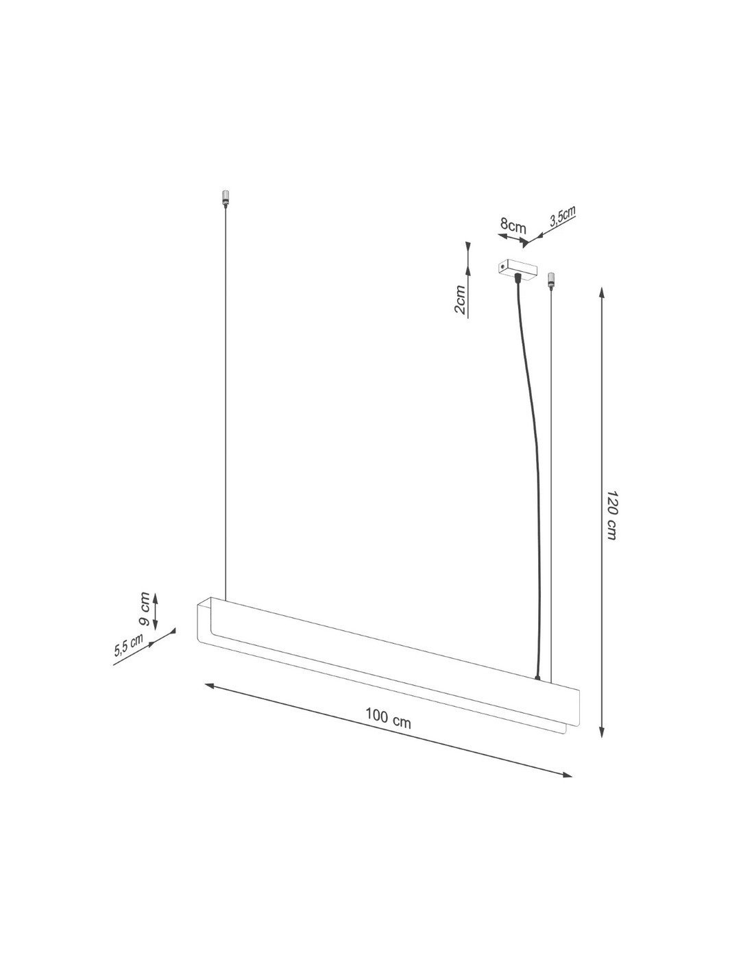 SPARK Langbordspendel udført i et moderne design, fremstillet i hvidlakeret stål. Lampen måler 100 x 5,5 cm i bredde og dybde og anvender 1 x G13 8,5W LED lyskilde (Inkl.).