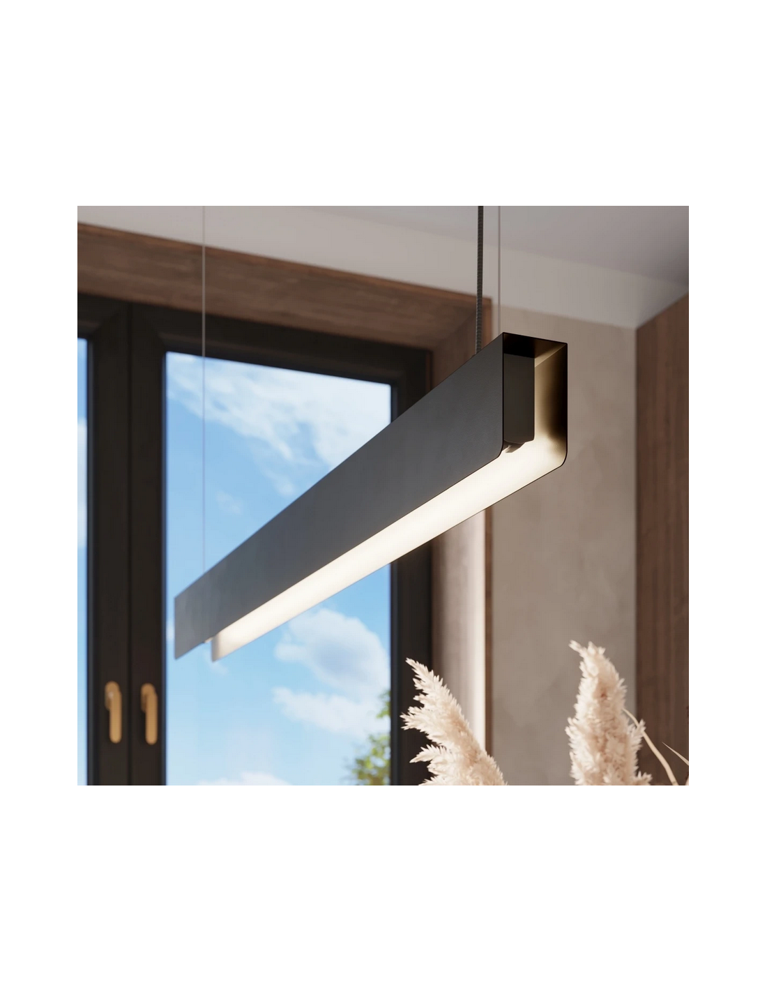 SPARK Langbordspendel udført i et moderne design, fremstillet i sortlakeret stål. Lampen måler 100 x 5,5 cm i bredde og dybde og anvender 1 x G13 8,5W LED lyskilde (Inkl.).