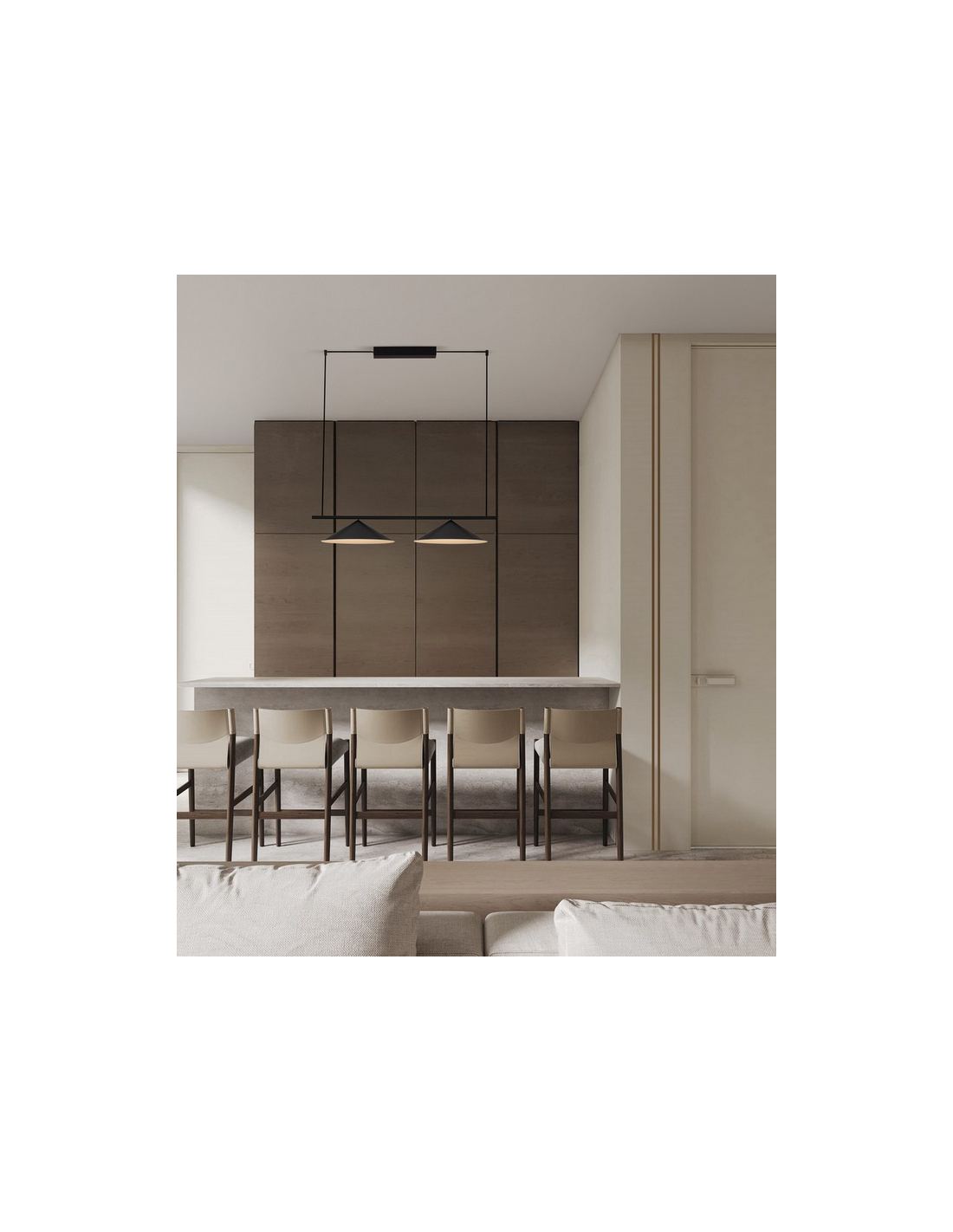 LUI Langbordspendel udført i et moderne design fremstillet i satineret sortlakeret aluminium og stål. Lampen måler 100 cm i bredden og 185 cm i højden og anvender 24W LED lyskilde (Inkl.).