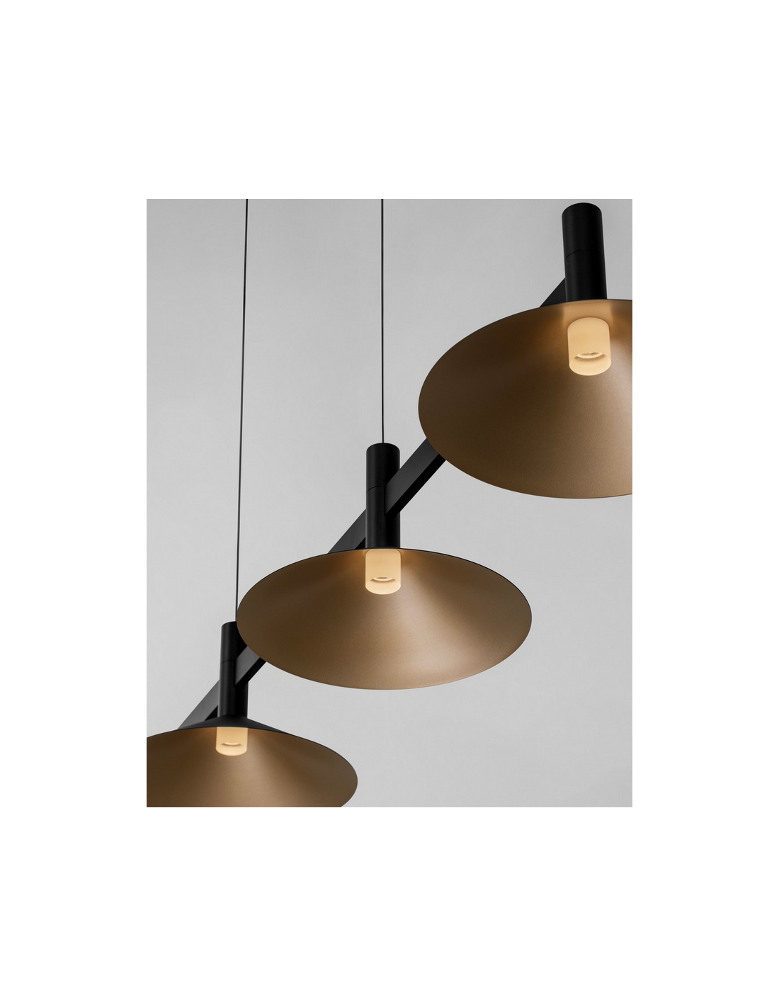 POETIC Skærm til POETIC Langbordspendel lampen, udført i et moderne design af satineret sortlakeret aluminium (inderside i satineret gylden). Skærmen måler 25 cm i diameter.