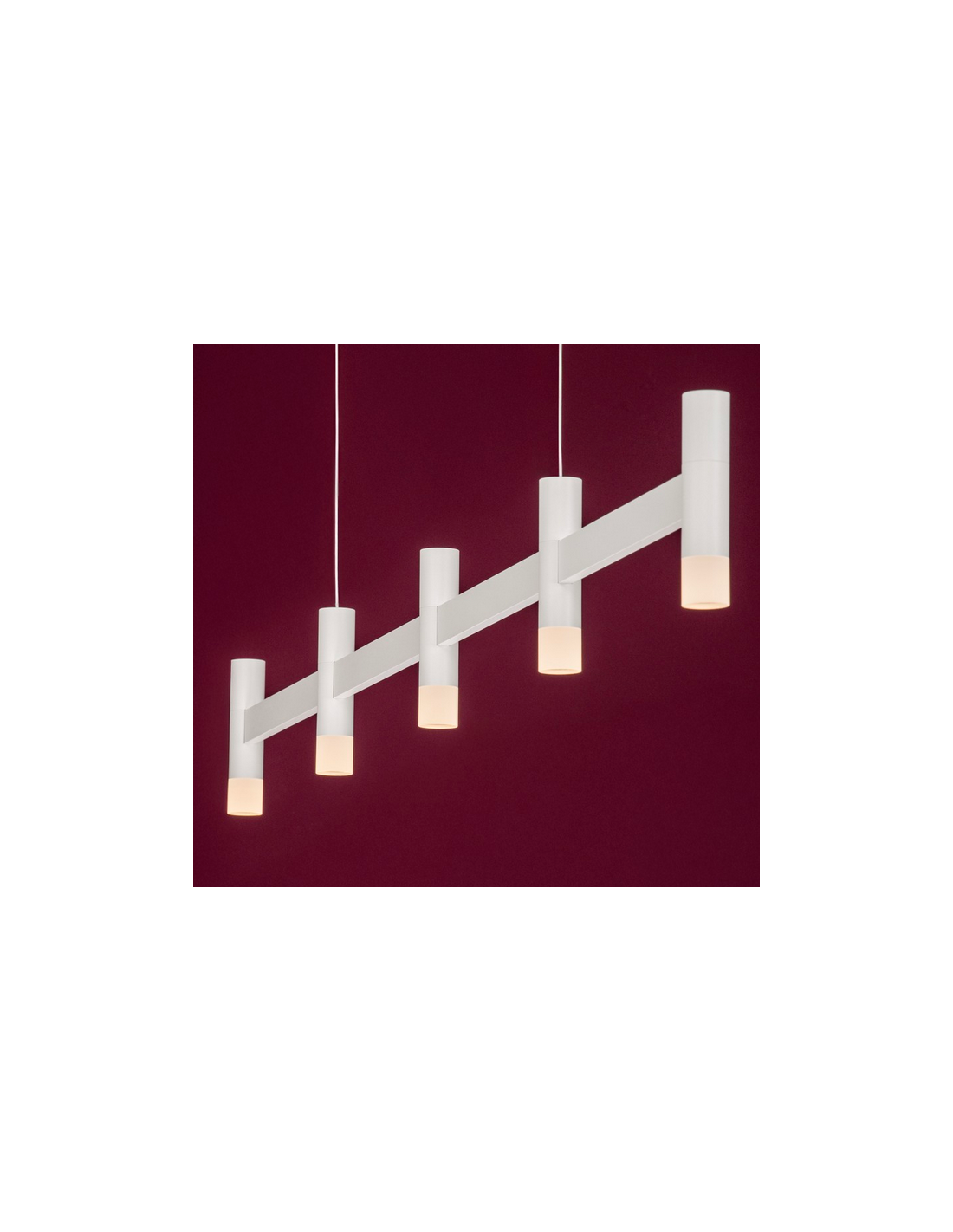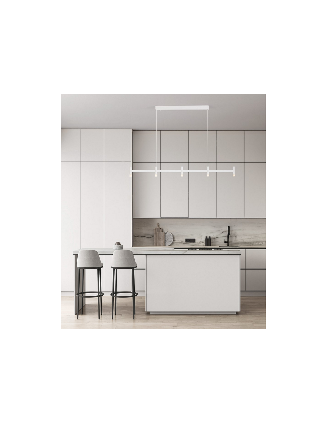 POETIC Langbordspendel udført i et moderne design fremstillet i satineret hvidlakeret aluminium og hvid akryl. Lampen måler 147 cm i bredden og 185 cm i højden og anvender 21W LED lyskilde (Inkl.).