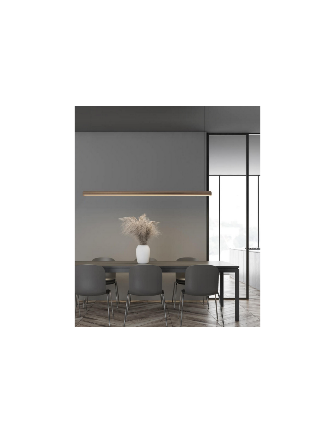 Langbordspendel fremstillet i et nordisk slimline design af mat bronzelakeret aluminium, med skærm i hvid polycarbonat. Langbordspendlen måler 141 cm i bredden og har en dybde på 5,3 cm. Lampen kommer med 200 cm kabel, der kan justeres efter behov/ønske. Lampen anvender 45W indbygget LED lyskilde der leverer en ren moderne belysning, der løfter både funktionaliteten og æstetikken i ethvert indendørs rum.