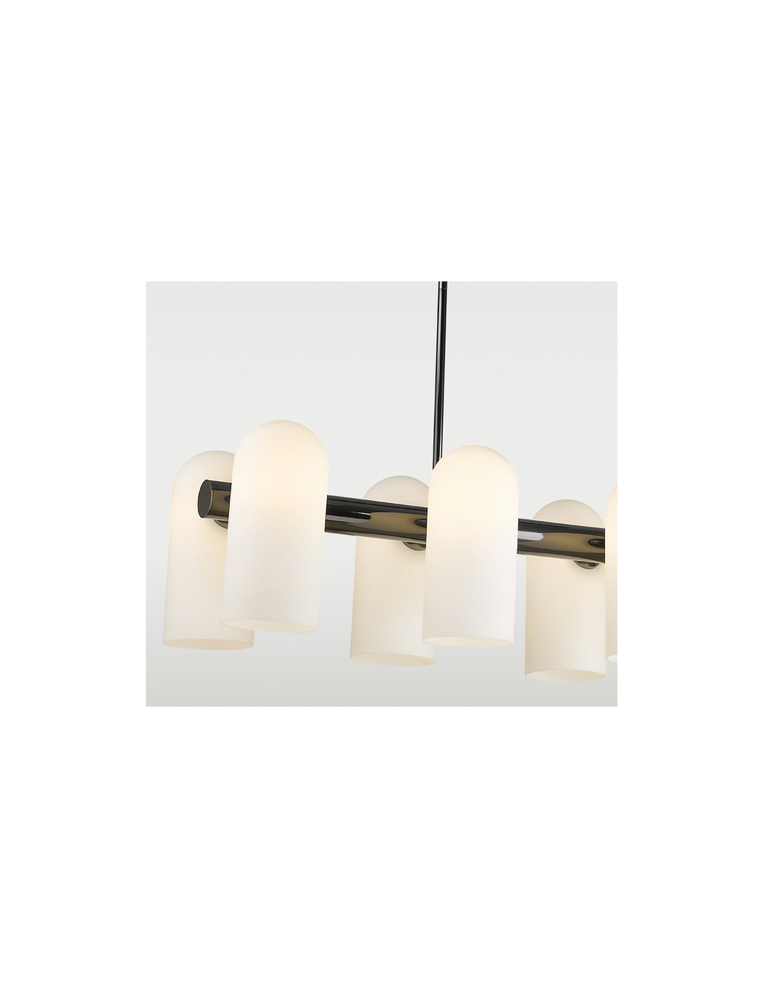 SEOUL Langbordspendel udført i et design af blank forkromet sort metal og med skærme i hvid opalglas. Lampen måler 25,6 - 139 cm i højden og 122 x 37 cm i bredde og dybde og anvender 10 x E27 lyskilder (Ekskl.).