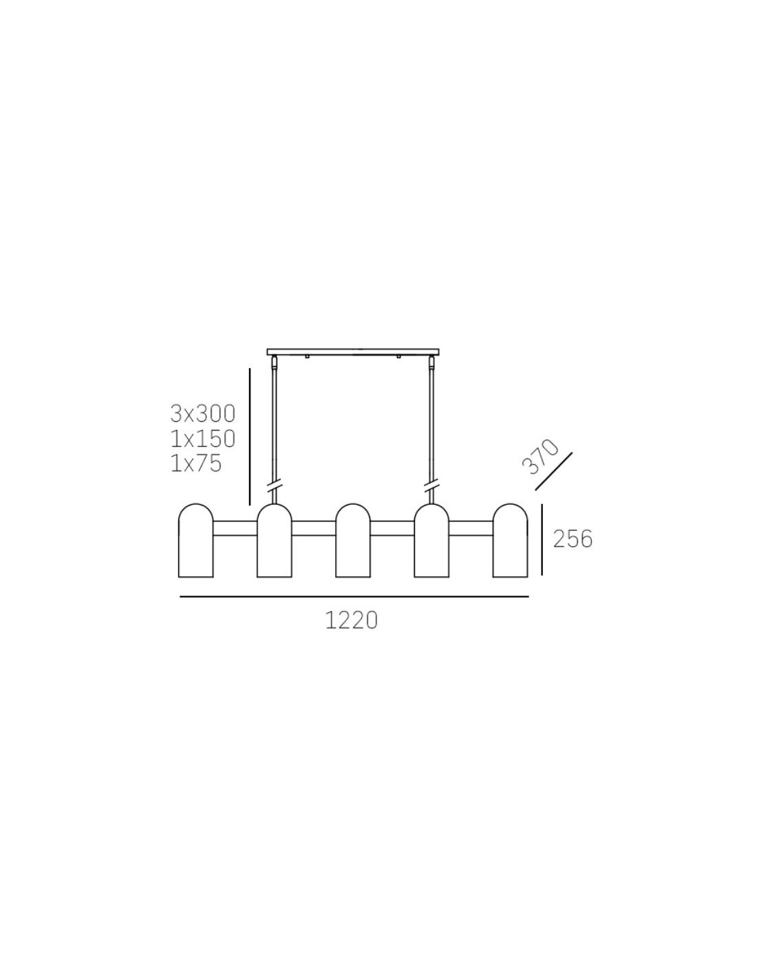 SEOUL Langbordspendel i metal og glas 122 x 37 cm 10 x E27 - Sortkrom/Hvid