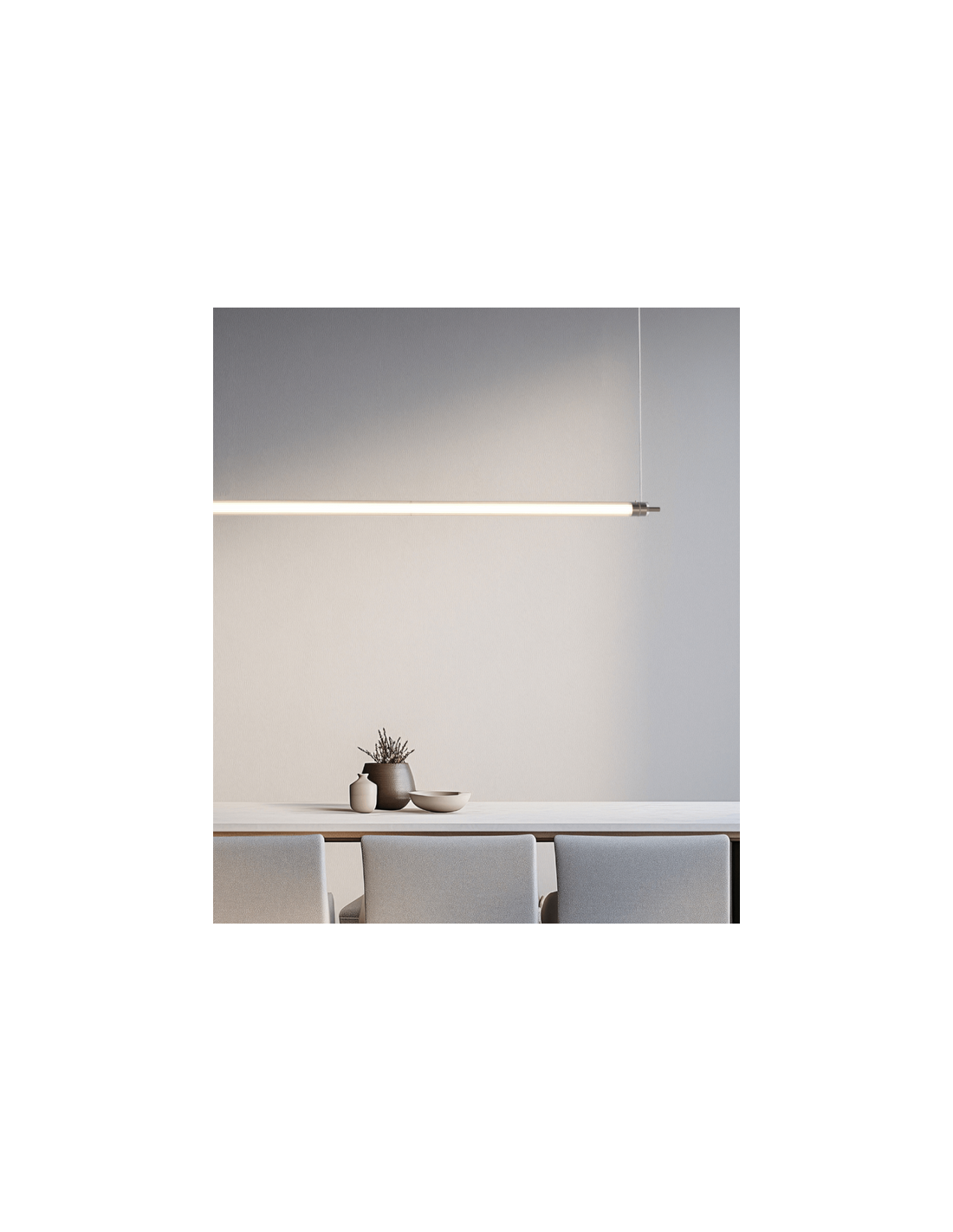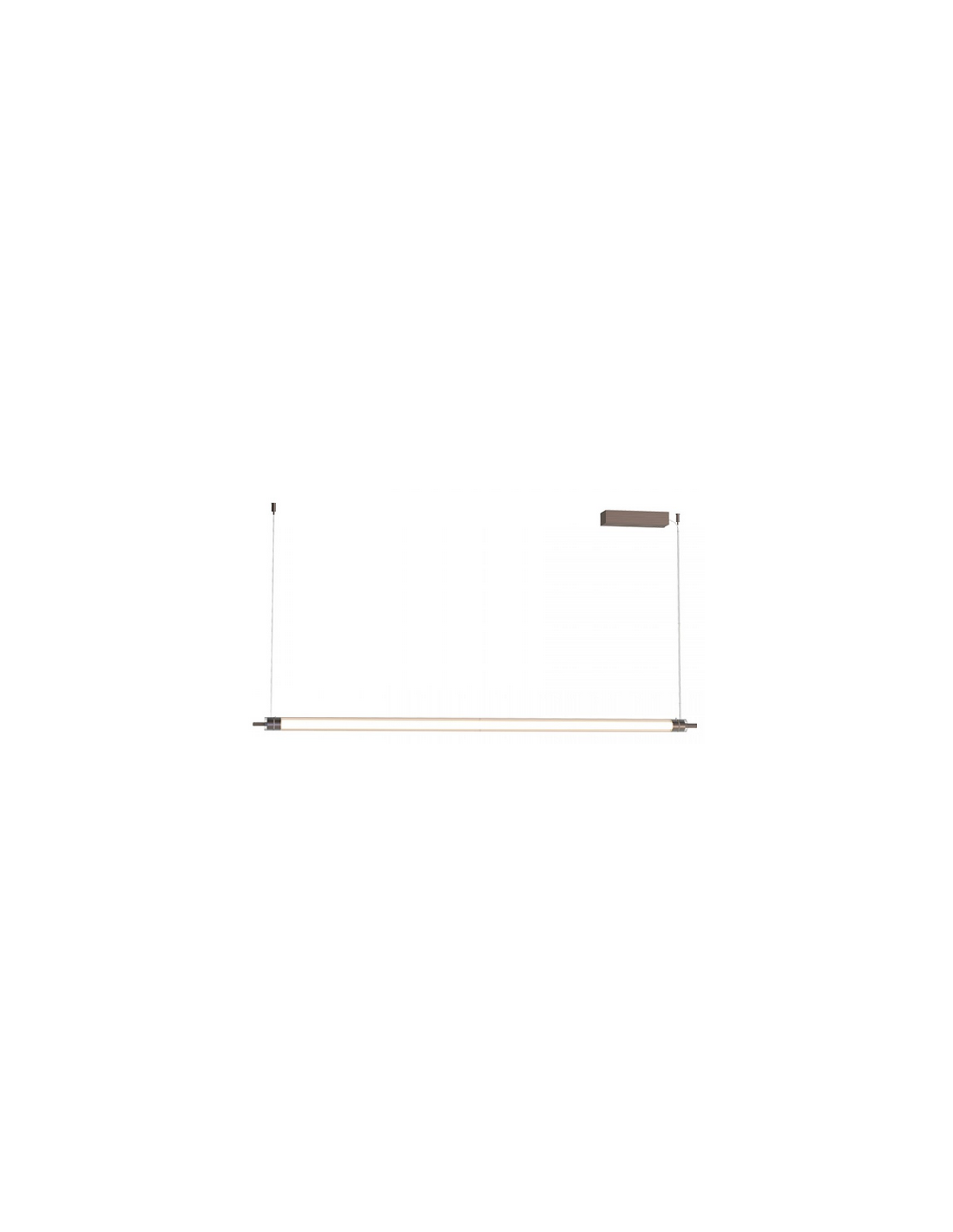 Langbordspendel fremstillet i et nordisk slimline design af børstet kaffebrun metal med skærm i hvid akryl og klart glas. Langbordspendlen måler 124,6 cm i bredden og har en dybde på 4 cm. Lampen kommer med 200 cm kabel, der kan justeres efter behov/ønske. Lampen anvender 33W indbygget LED lyskilde der leverer en ren moderne belysning, der løfter både funktionaliteten og æstetikken i ethvert indendørs rum.