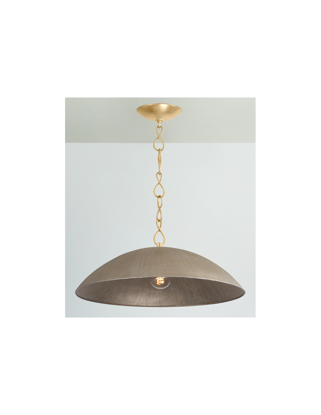 EVE Loftlampe udført i et moderne design fremstillet i vintage bladguldfarvet stål og antik sølv tekstur aluminium. Loftlampen måler 39,5 - 167,6 cm i højden og 61 cm i diameter og anvender 1 x E27 lyskilde (Ekskl.).