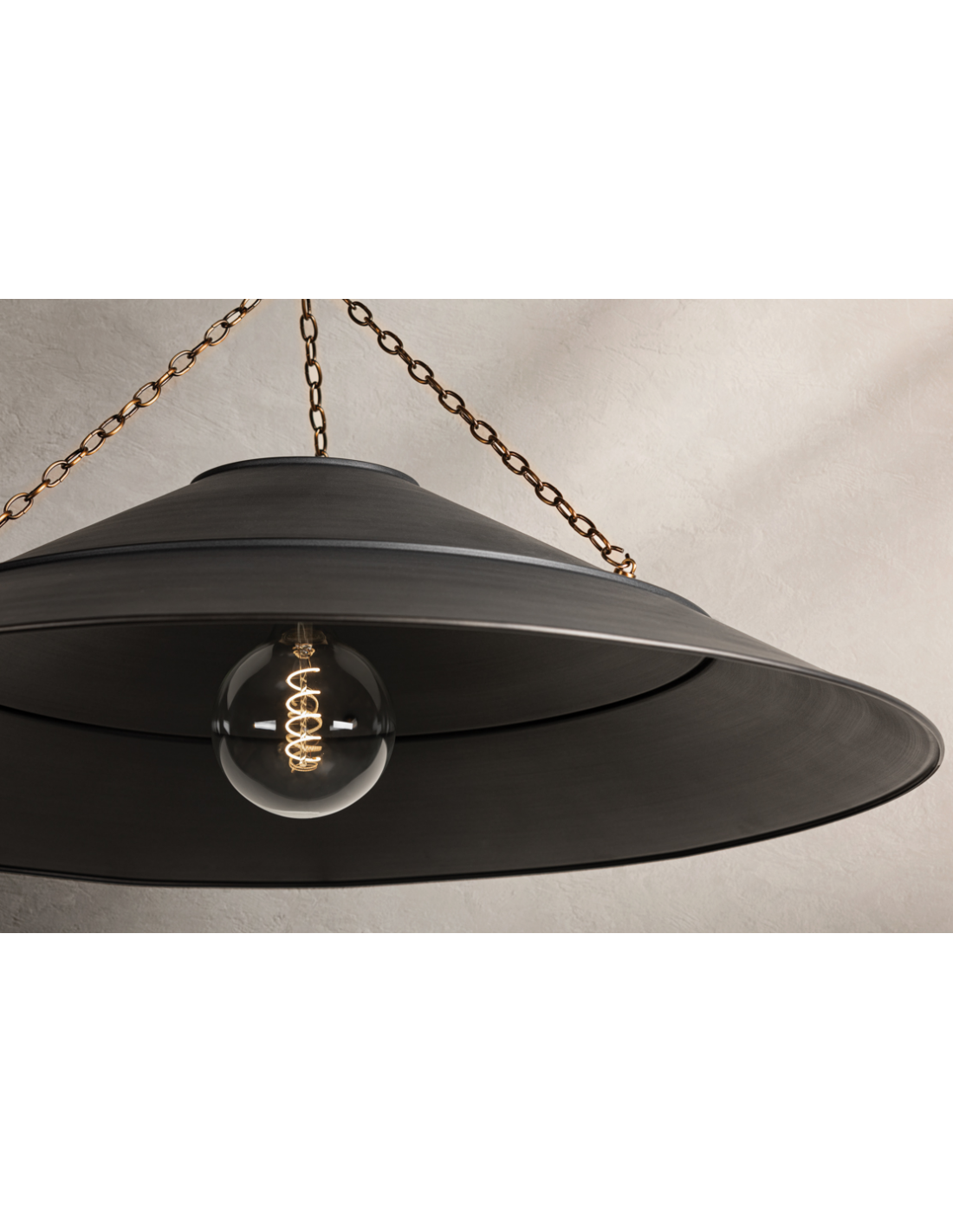 ARCANE Loftlampe udført i et moderne design fremstillet i patineret messinglakeret stål og antik grafitgrålakeret stål. Loftlampen måler 50,8 - 227,4 cm i højden og 58,42 cm i diameter og anvender 1 x E27 lyskilde (Ekskl.).