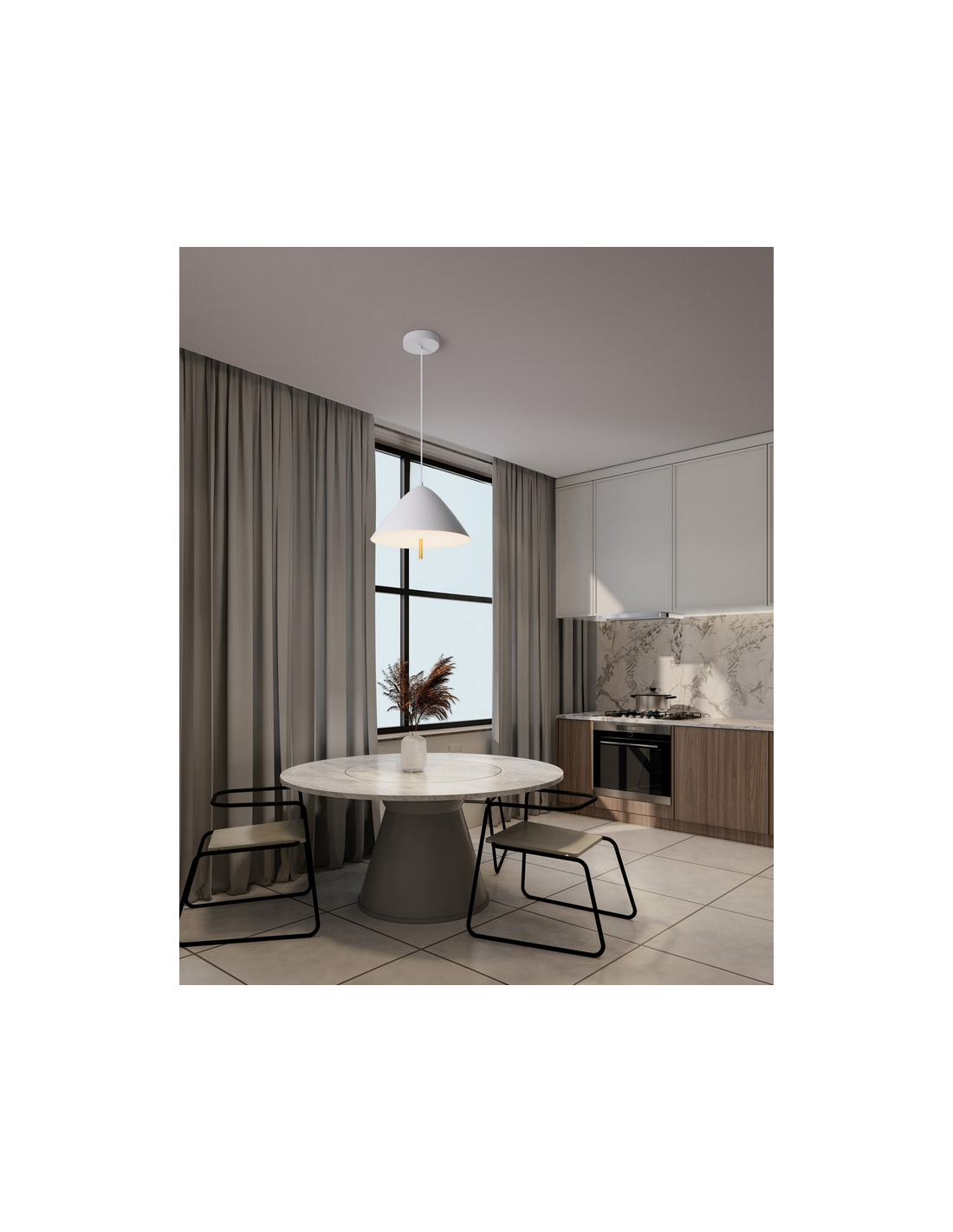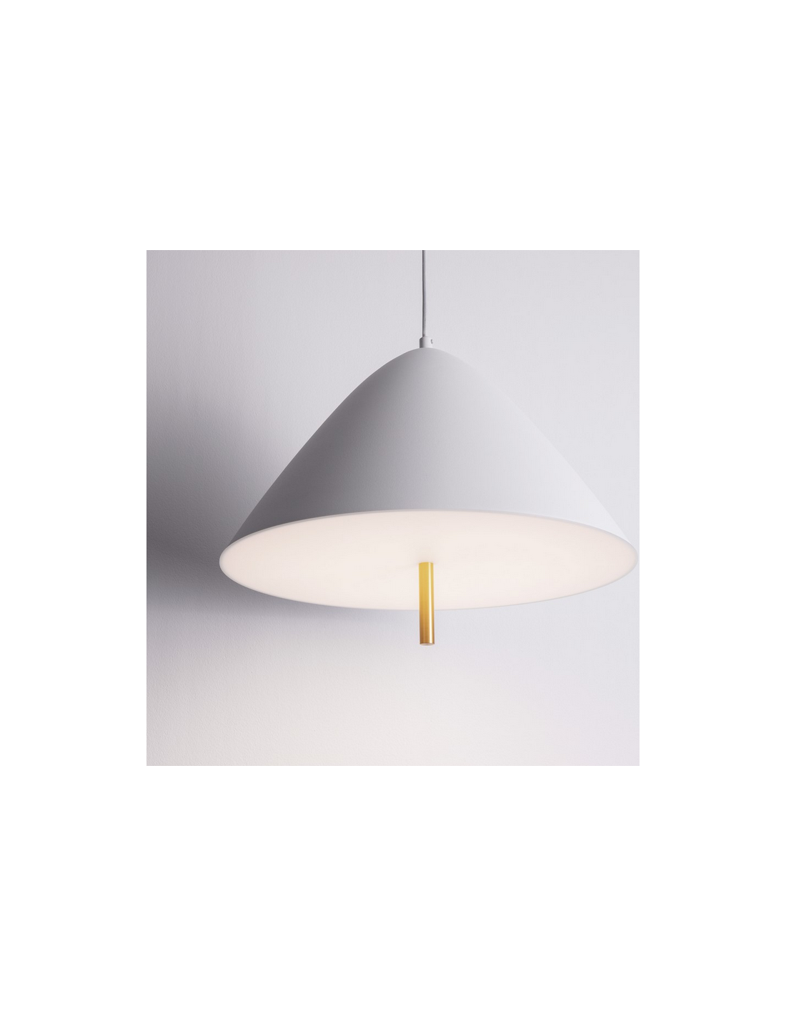 OROS Loftlampe udført i et moderne design fremstillet i satineret hvidlakeret metal og matteret hvid akryl med detalje i messinglakeret metal. Lampen måler op til 150 cm i højden og 40 cm i diameter og anvender 1 x 17W LED lyskilde (Inkl.).