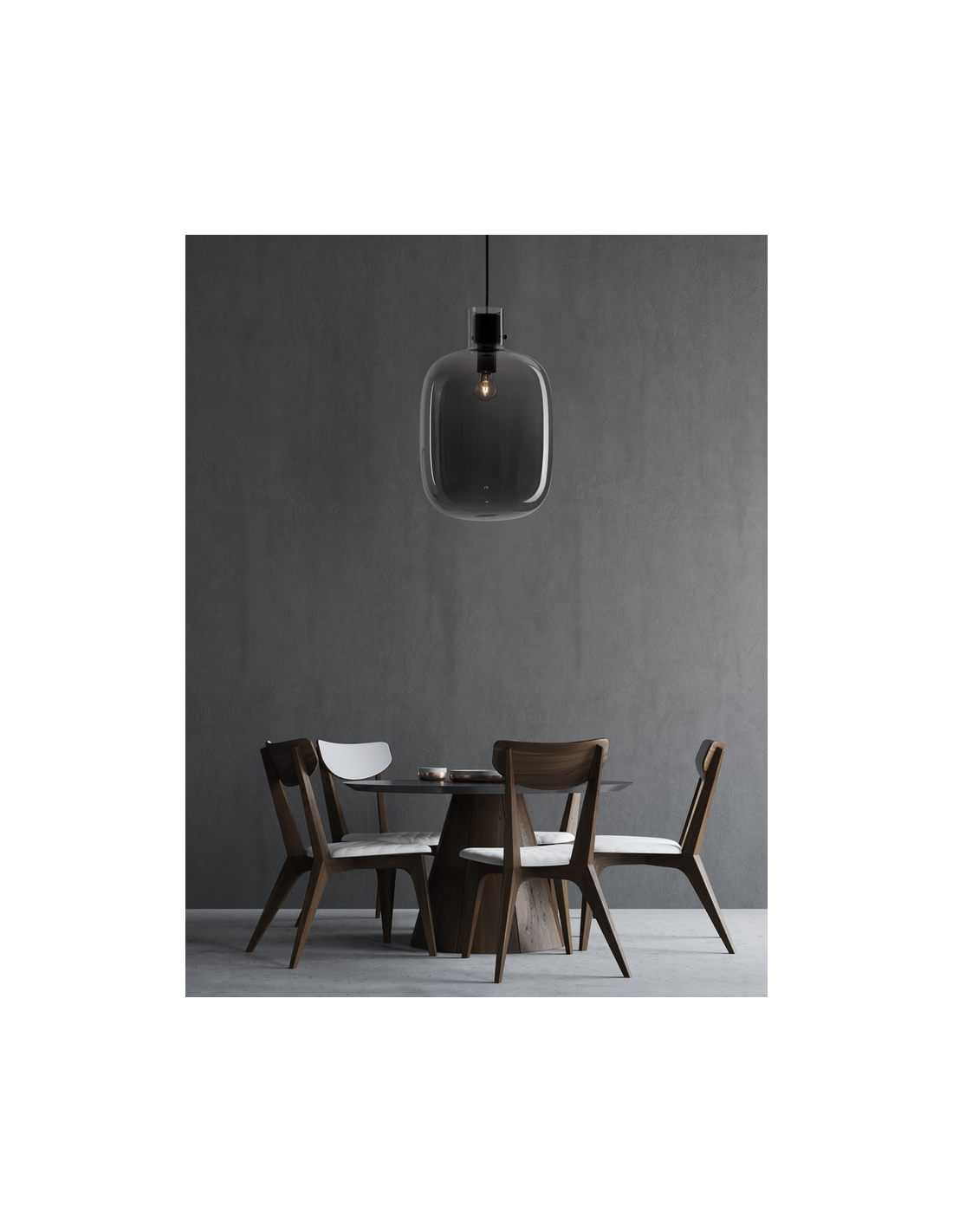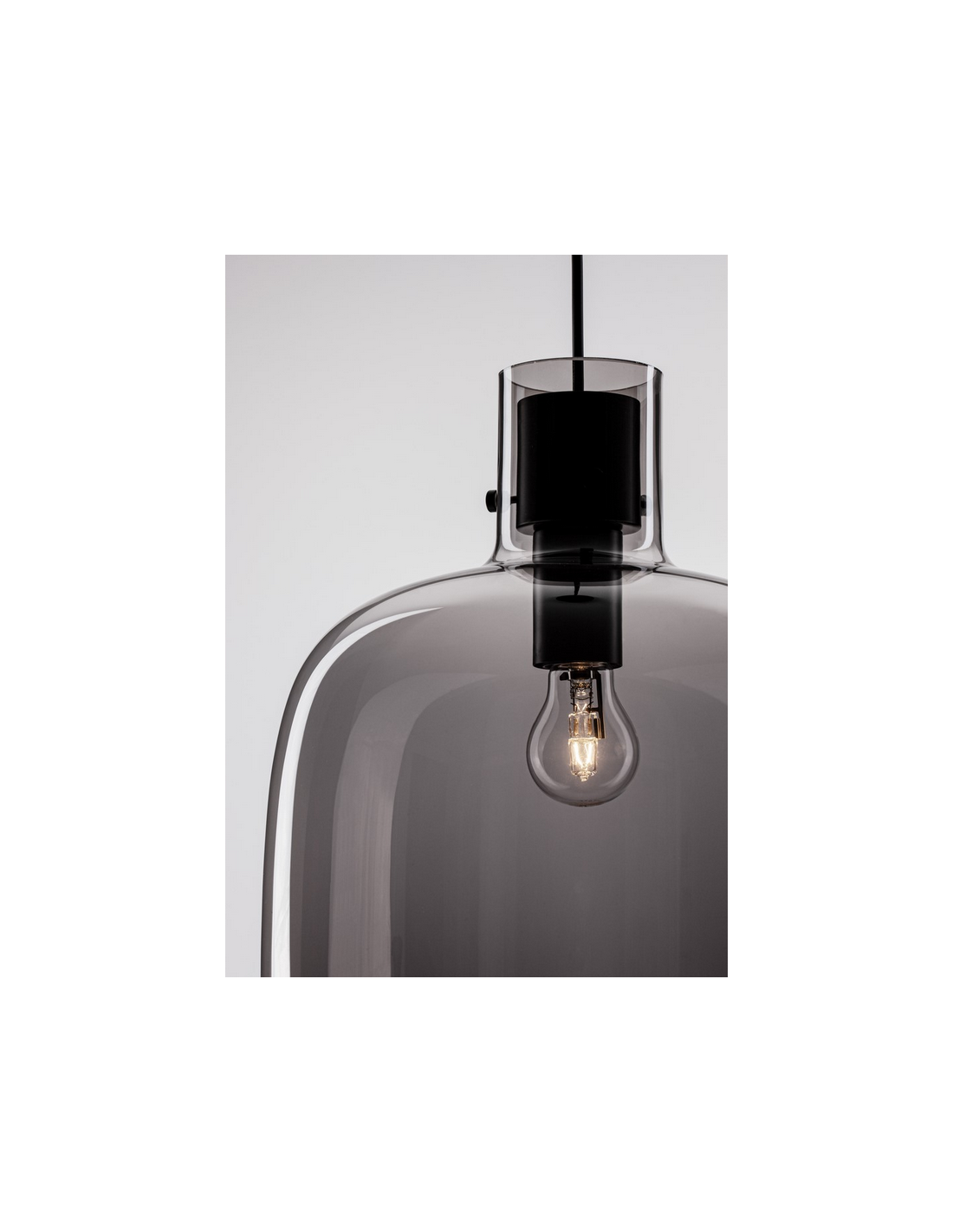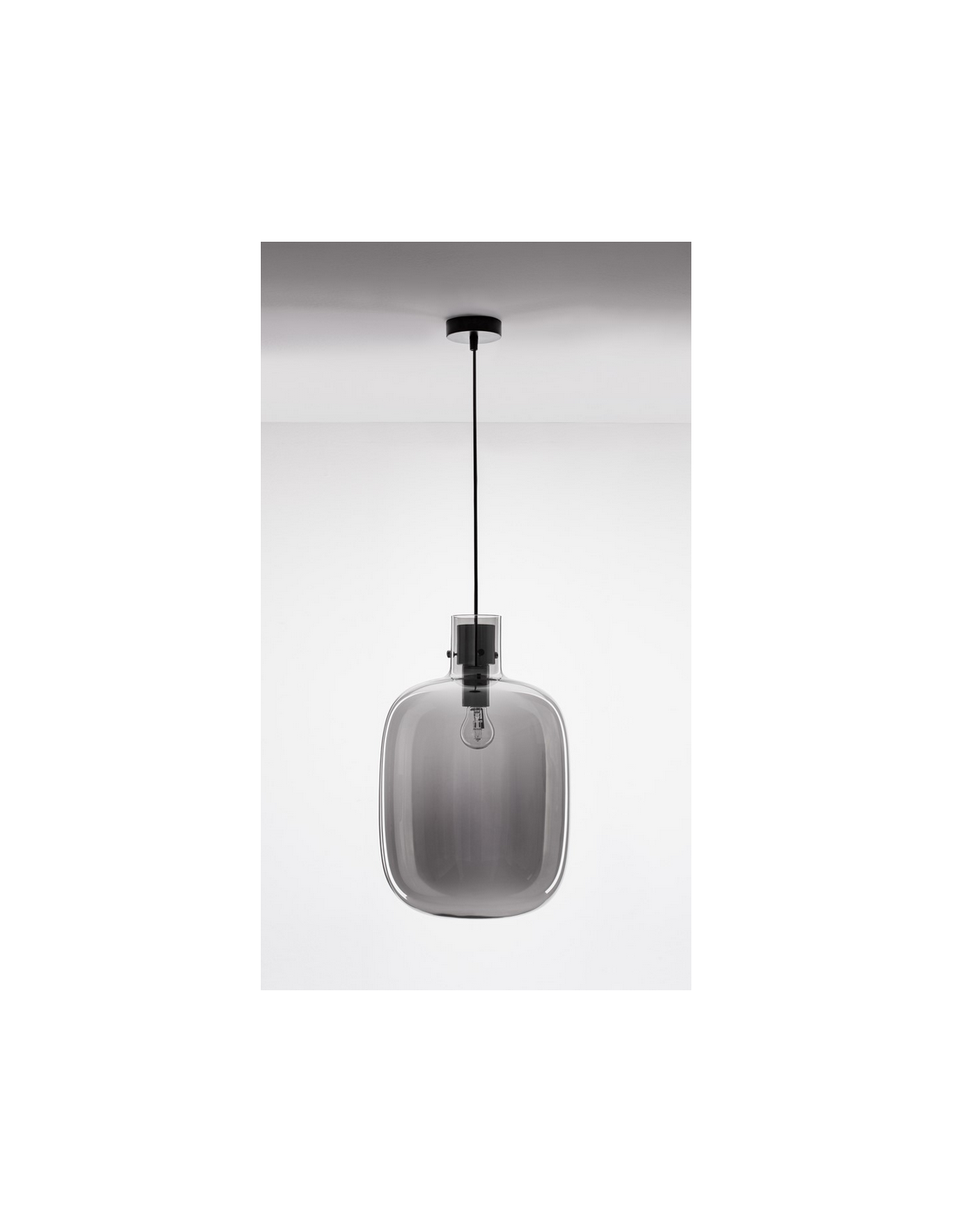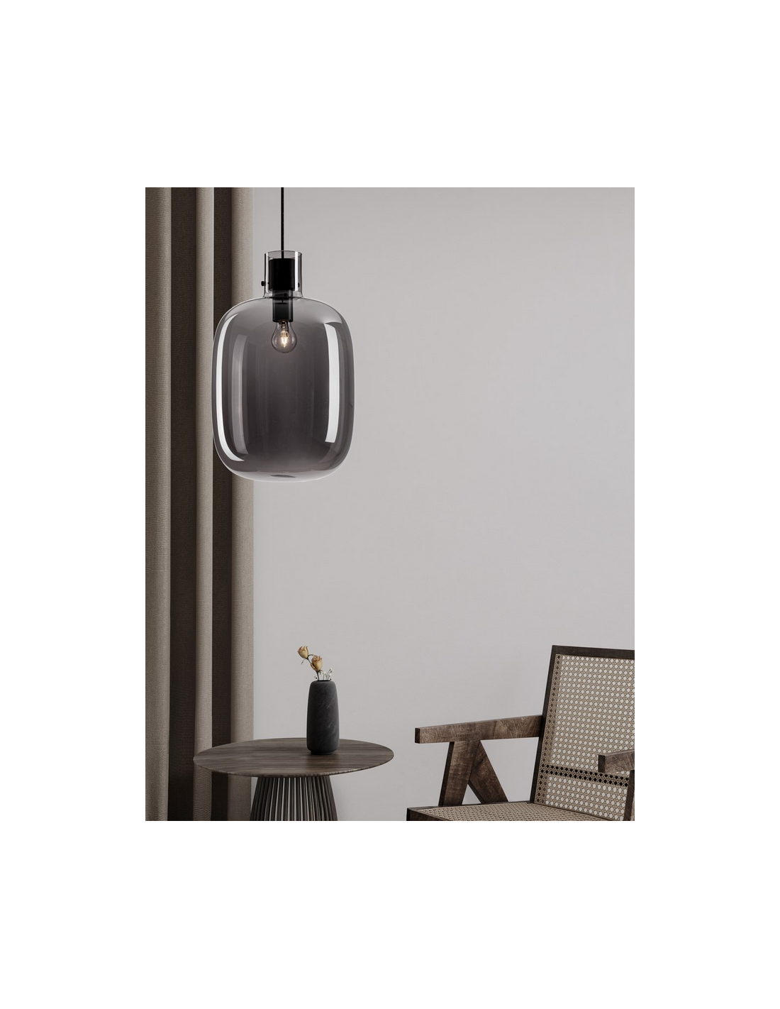 CINZIA Loftlampe udført i et moderne design fremstillet i sortlakeret metal og røget glas. Lampen måler 198 cm i højden og anvender 1 x E27 lyskilde (Ekskl.).
