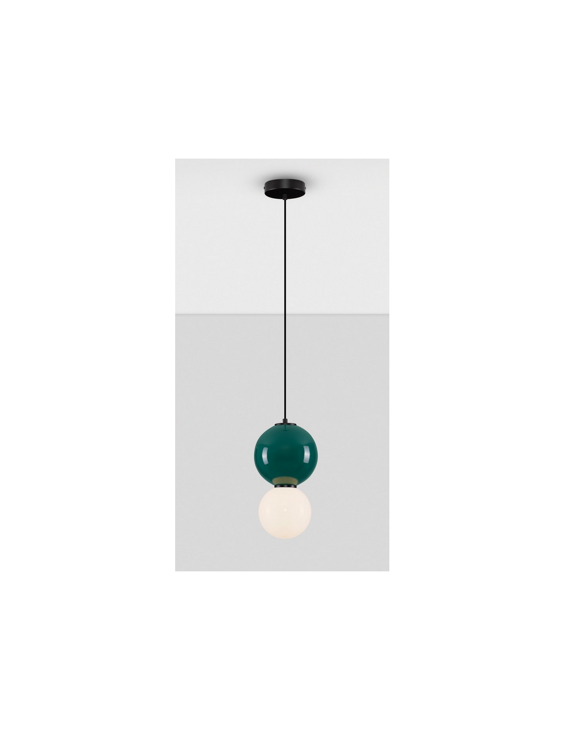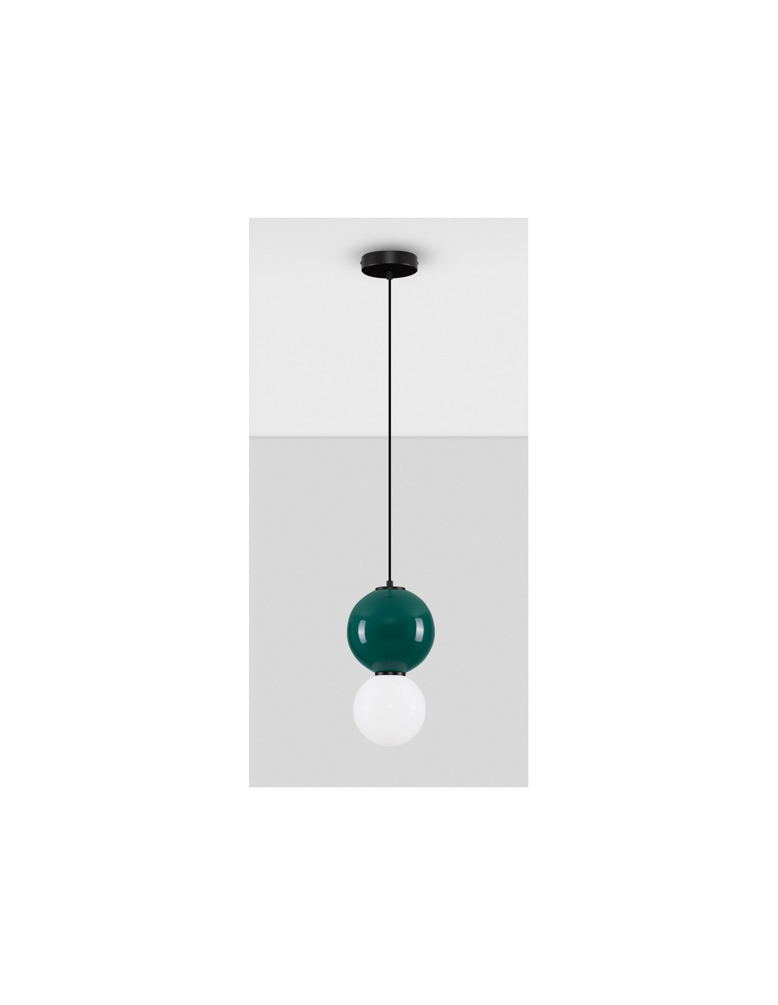 NOESIS Loftlampe udført i et retropræget design fremstillet i grønmalet porcelæn og hvid opalglas. Lampen måler 49 - 239 cm i højden og anvender 1 x 6W LED lyskilde (Inkl.).
