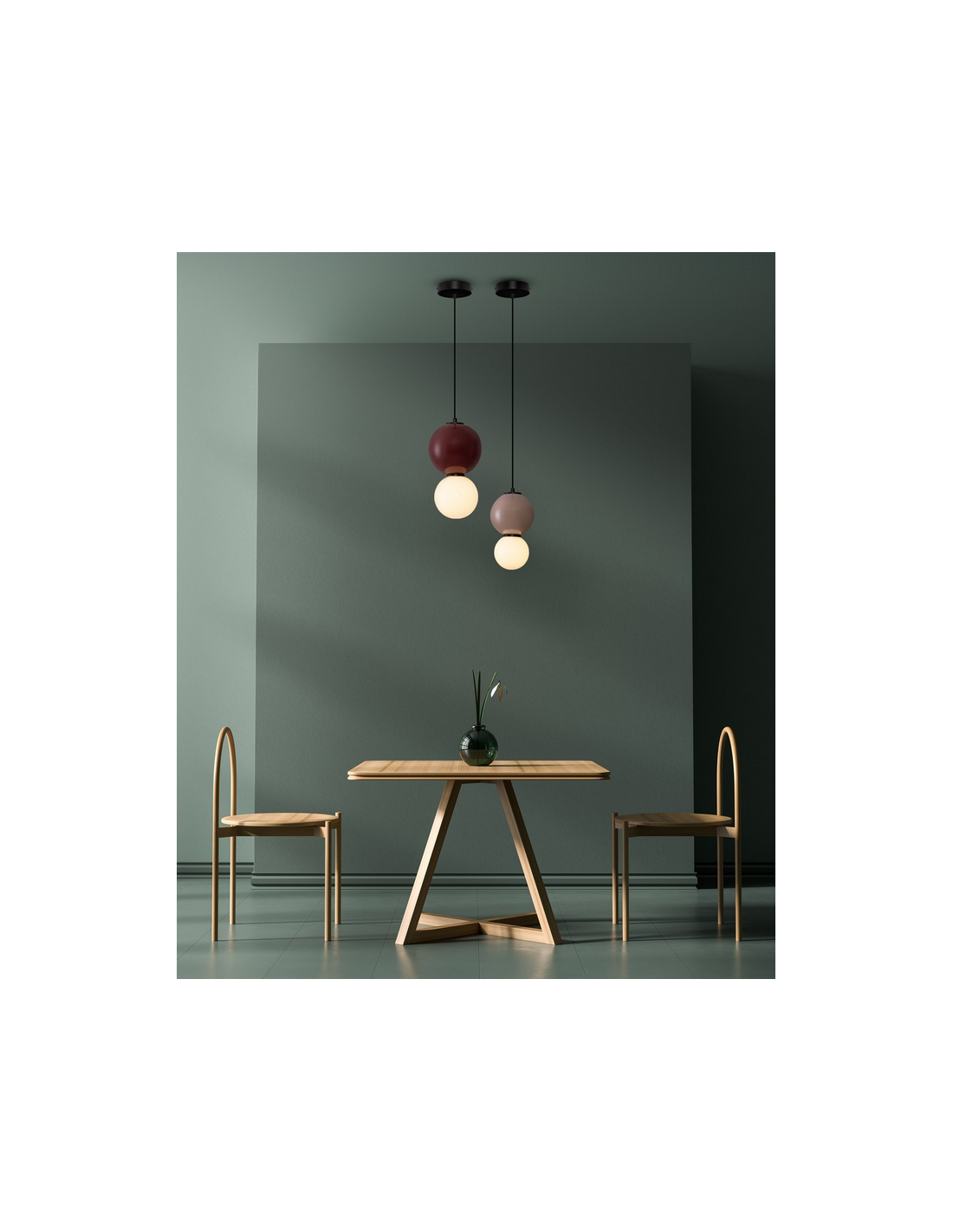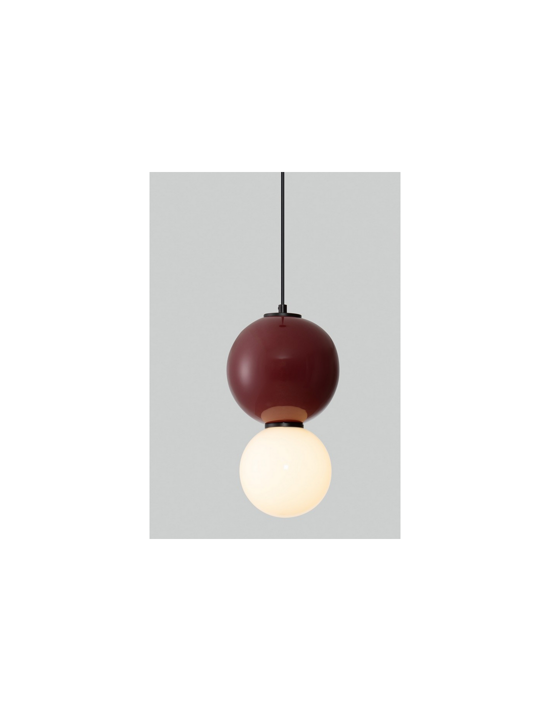 NOESIS Loftlampe udført i et retropræget design fremstillet i bordeaux farvet porcelæn og hvid opalglas. Lampen måler 49 - 239 cm i højden og anvender 1 x 6W LED lyskilde (Inkl.).