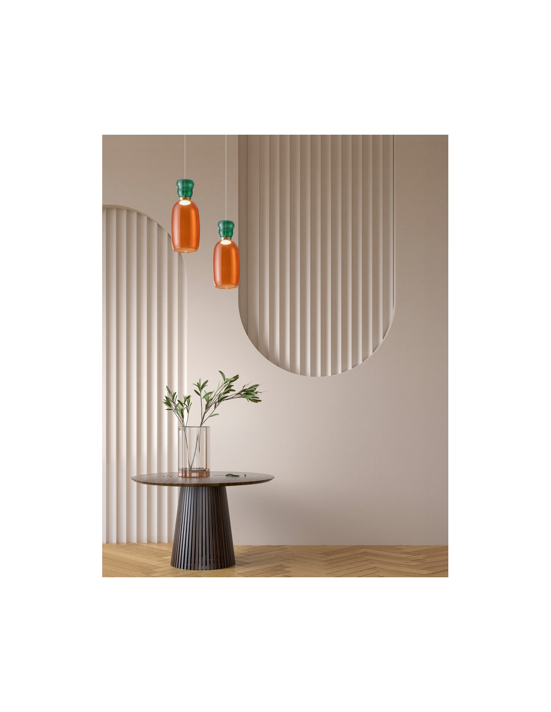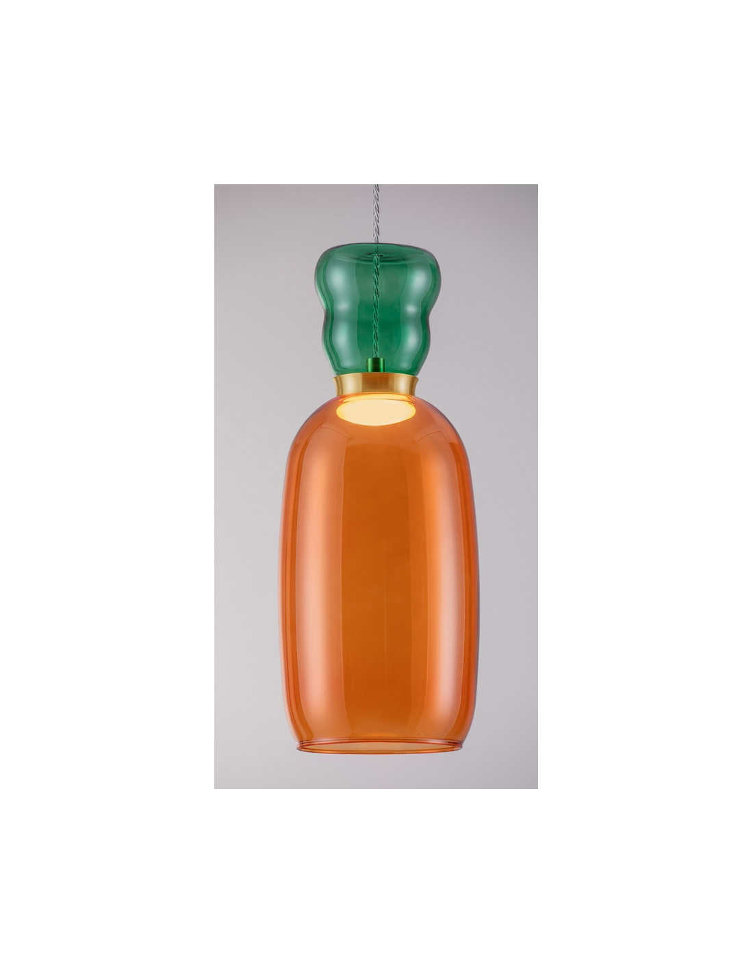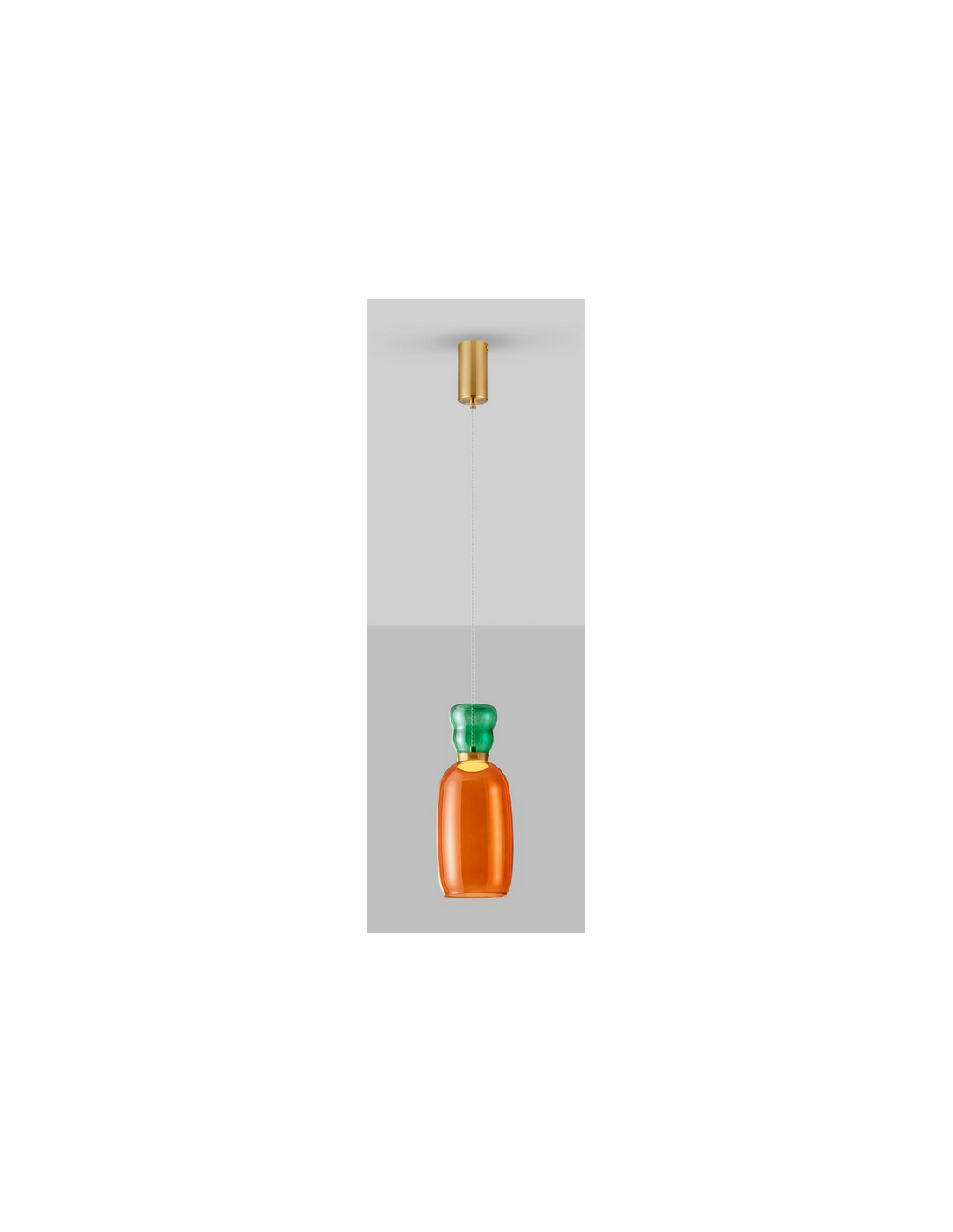 PLUME Loftlampe i glas Ø15 cm 5W LED - Satineret messing/Orange/Grøn