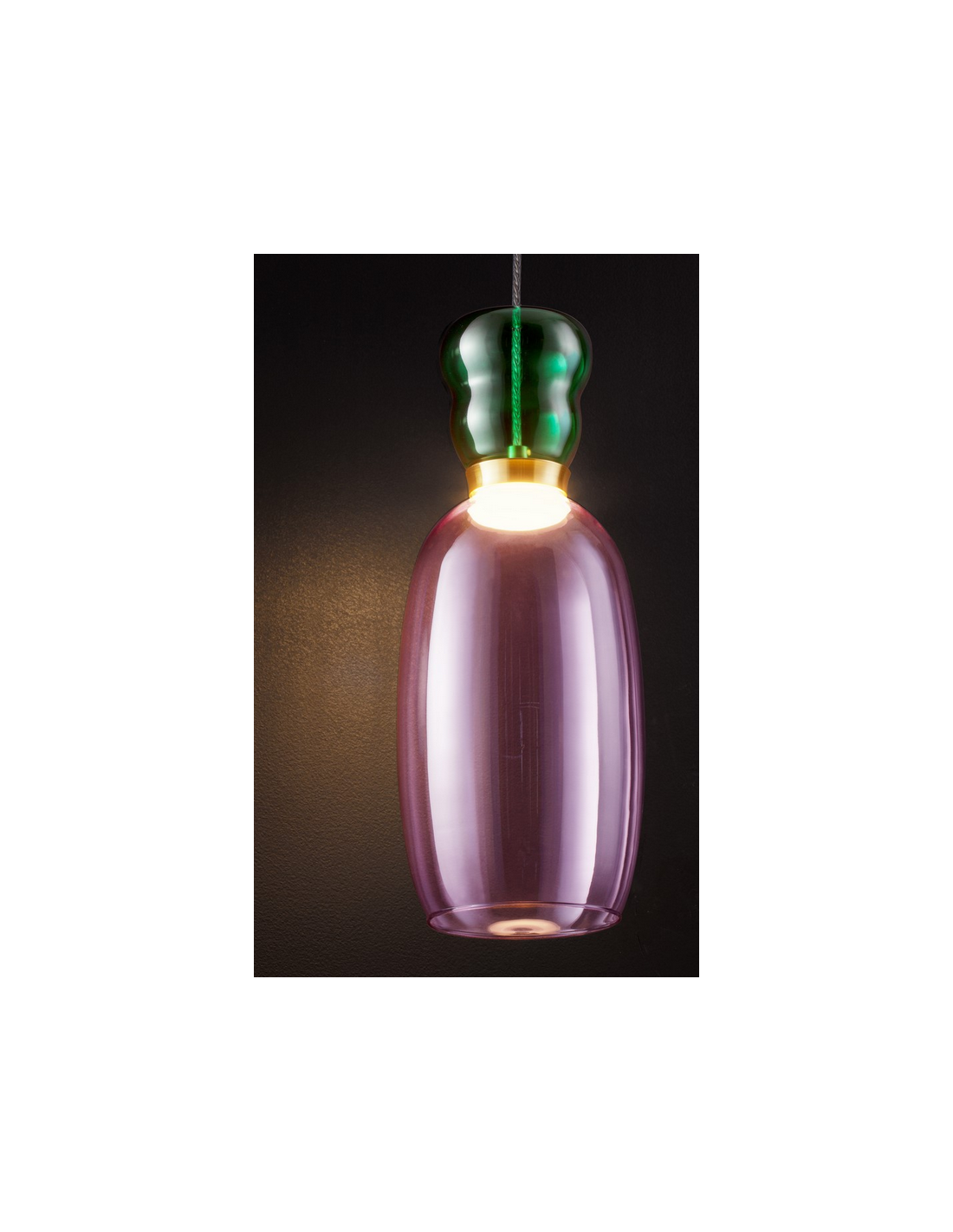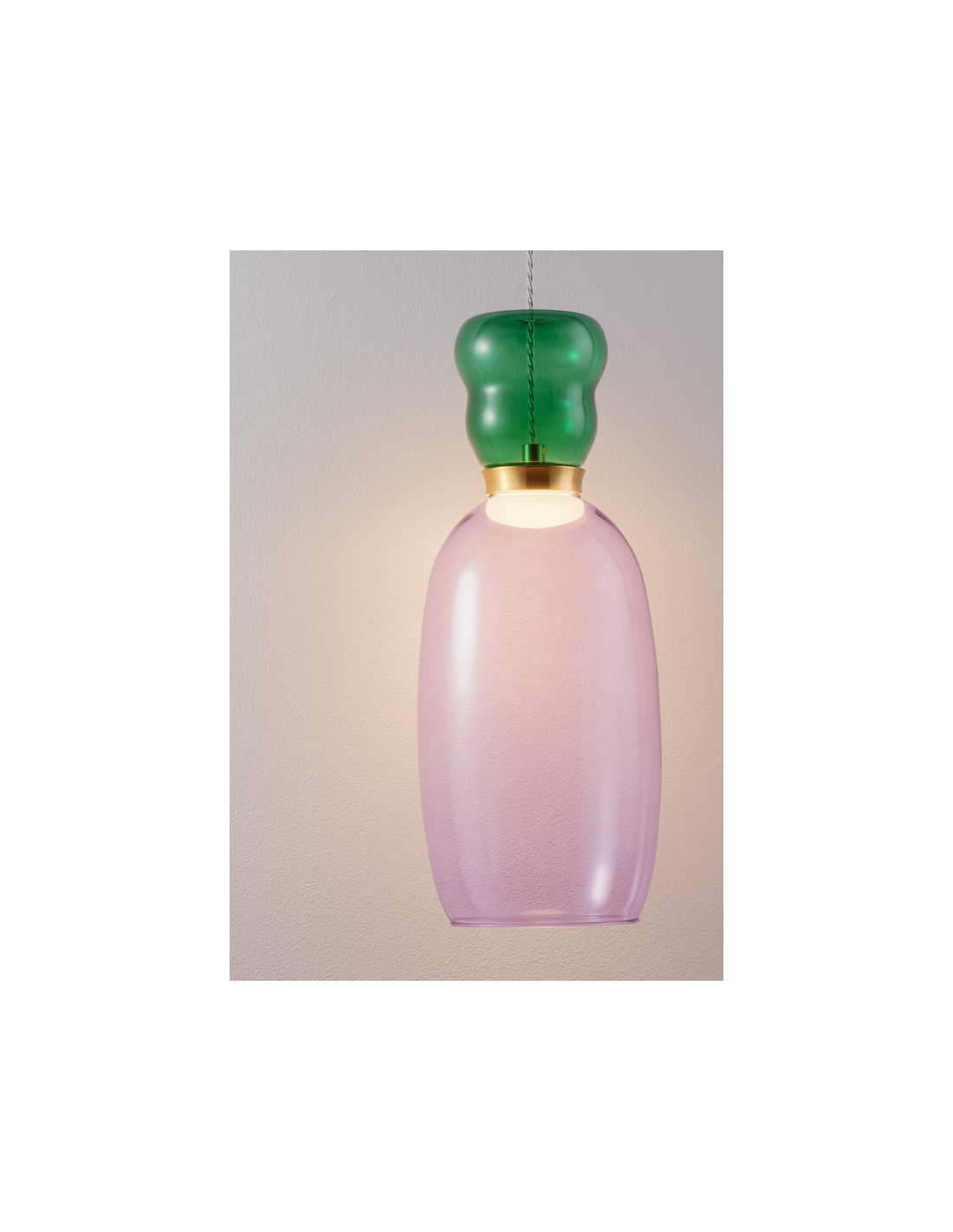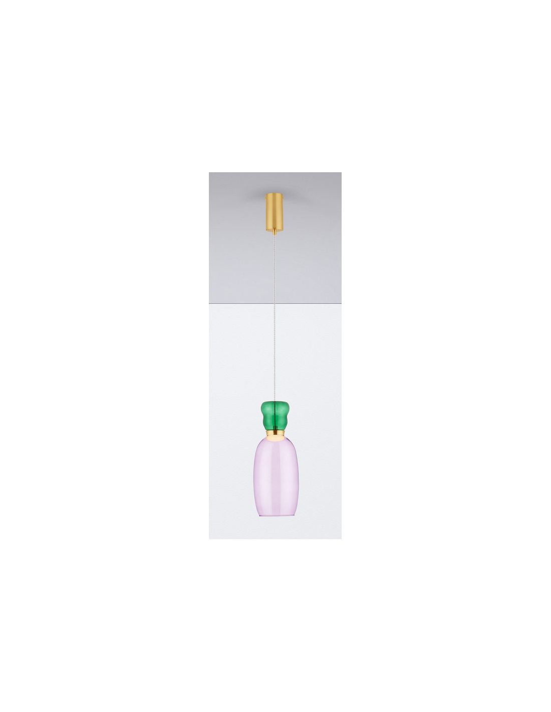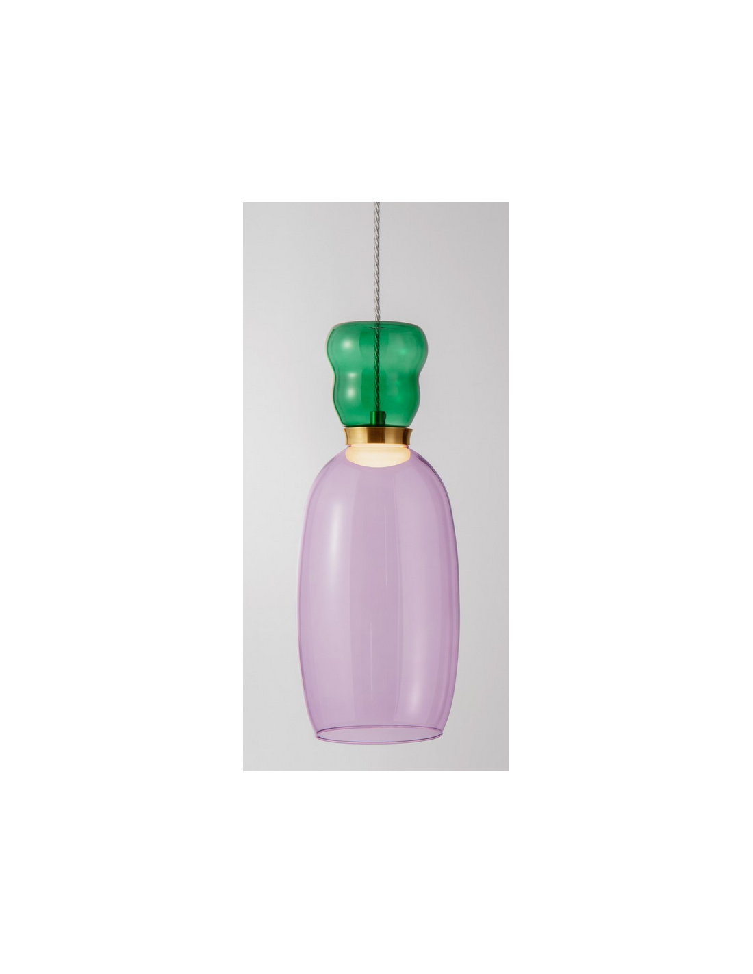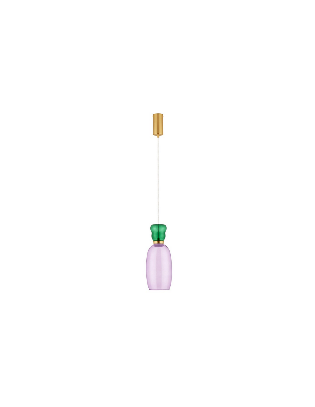 PLUME Loftlampe i glas Ø15 cm 5W LED - Satineret messing/Lilla/Grøn