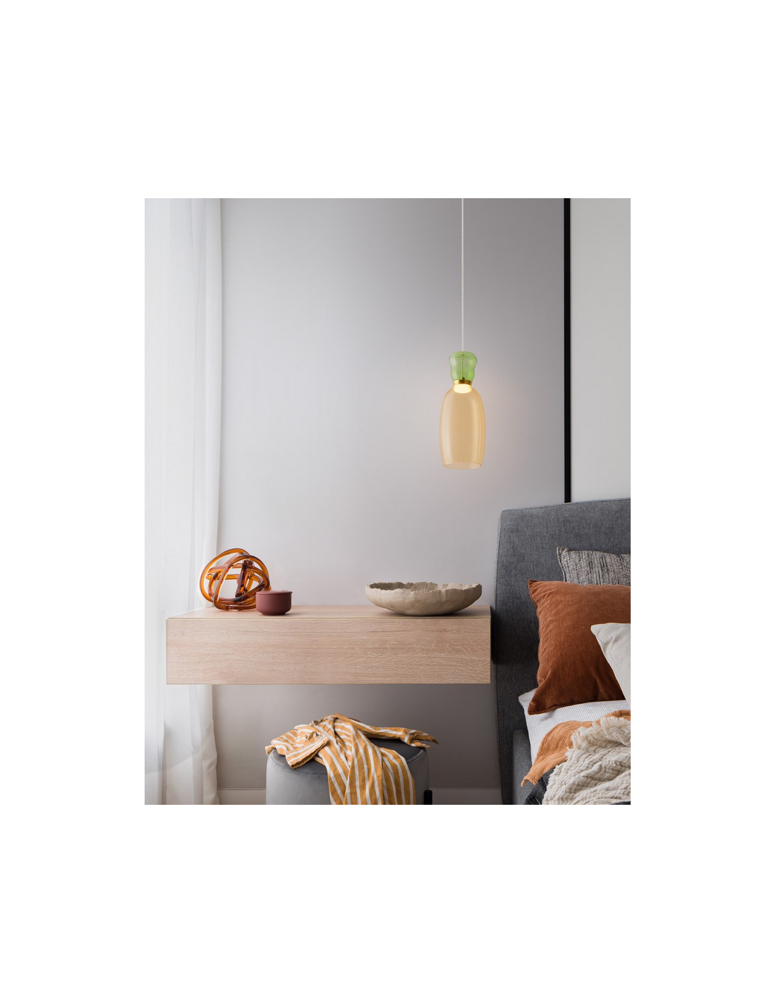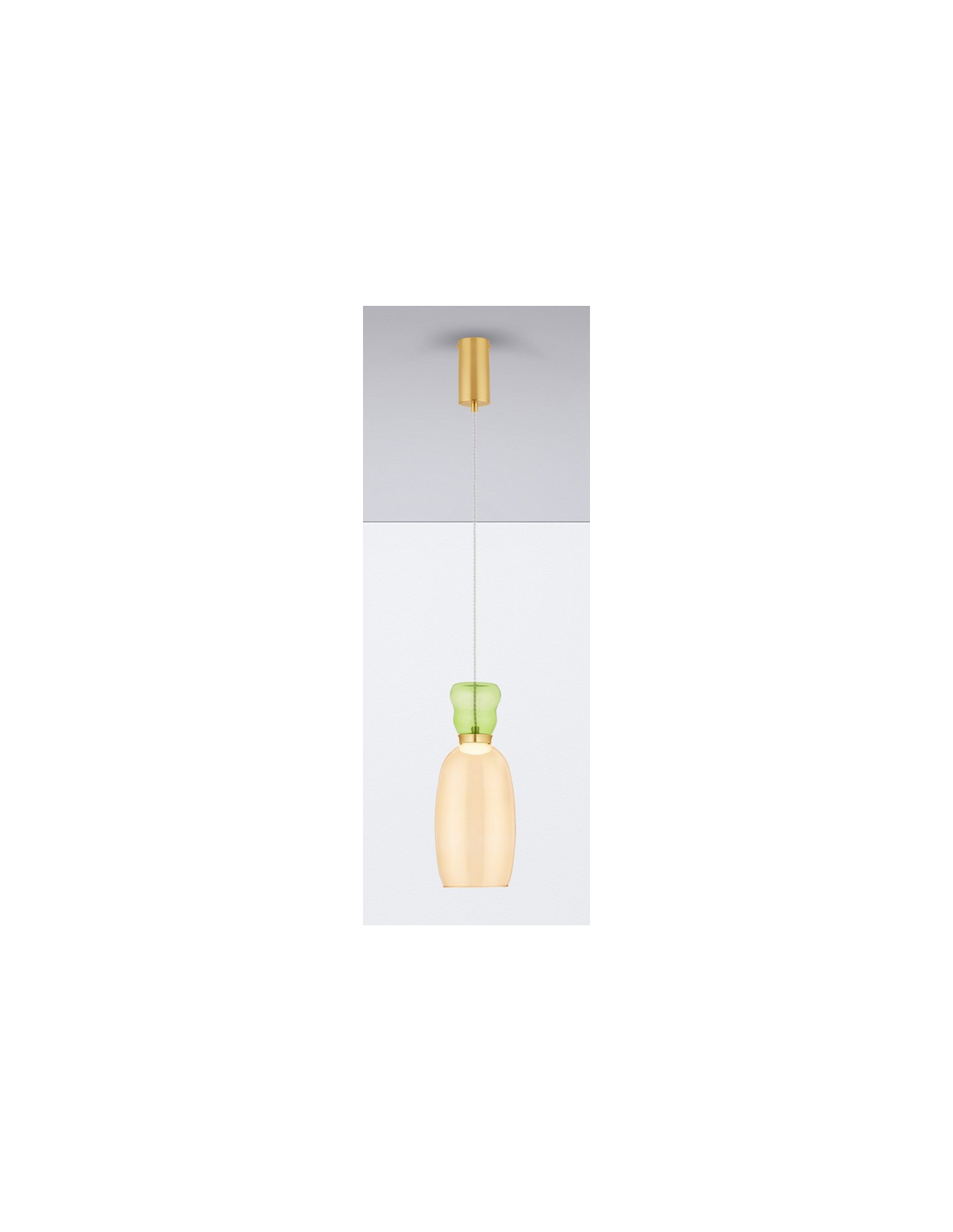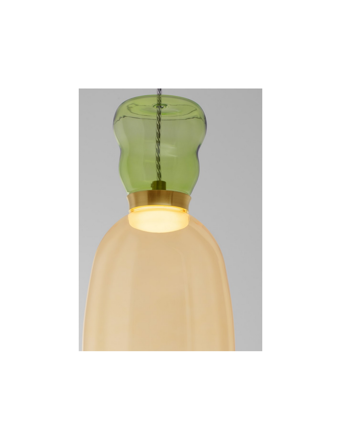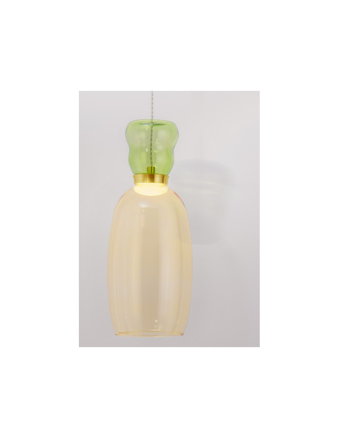 PLUME Loftlampe i glas Ø15 cm 5W LED - Satineret messing/Gul/Lysegrøn